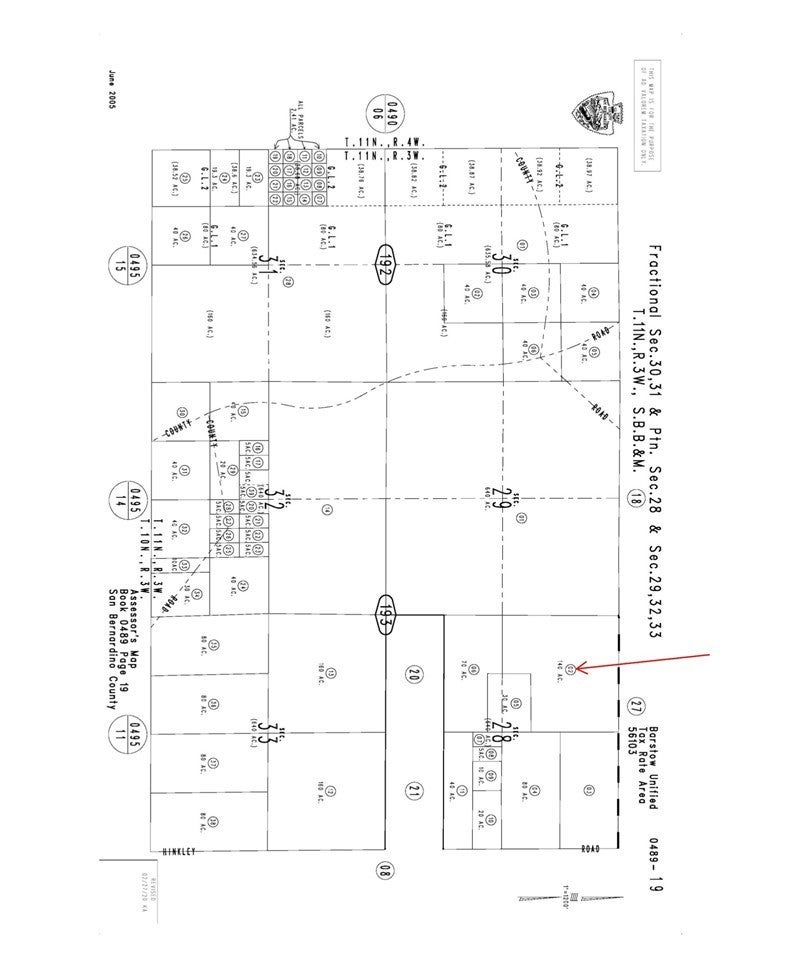 Great opportunity to own approximately 140 acres of vacant land in Hinkley, CA, located in San Bernardino County’s High Desert. This large parcel offers wide-open desert views and plenty of space for residential, recreational, or long-term investment potential (buyer to verify permitted uses with the county). The property features approximately 6,098,400 sq ft of land and is situated in a peaceful rural setting while still within driving distance of Barstow and the I-15 corridor. Large acreage parcels like this are ideal for land banking, off-grid living, or future development possibilities. APN: 0489-193-02-0000 | Lot Size: 140 Acres | GPS: 35.0226, -117.20225. Buyer to verify zoning, utilities, and access with San Bernardino County.