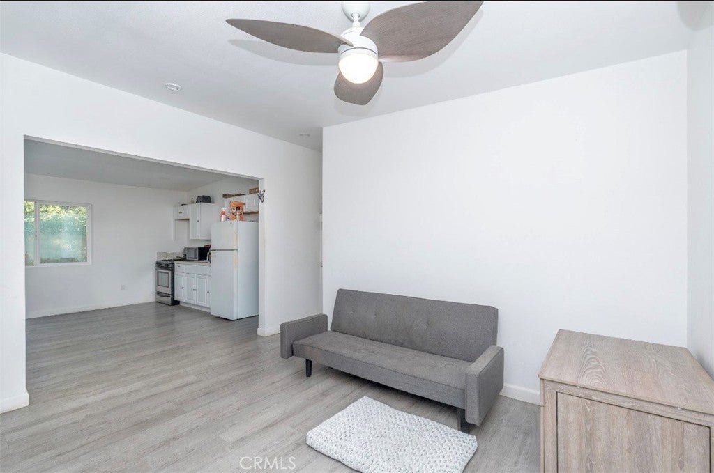 This remodeled 3-bedroom, 1-bathroom home stands as one of the most affordable opportunities in San Bernardino, perfectly situated on an expansive lot with ample RV parking. The interior has been completely refreshed with stylish new flooring that flows seamlessly into a modernized kitchen featuring elegant quartz countertops. Comfort is prioritized with the addition of a brand-new mini-split system for efficient climate control throughout the nearly 900-square-foot layout. The bathroom has also been upgraded with tasteful new tile work, providing a clean and contemporary feel. This gated property offers the perfect blend of modern upgrades and functional outdoor space for those seeking a move-in-ready starter home.