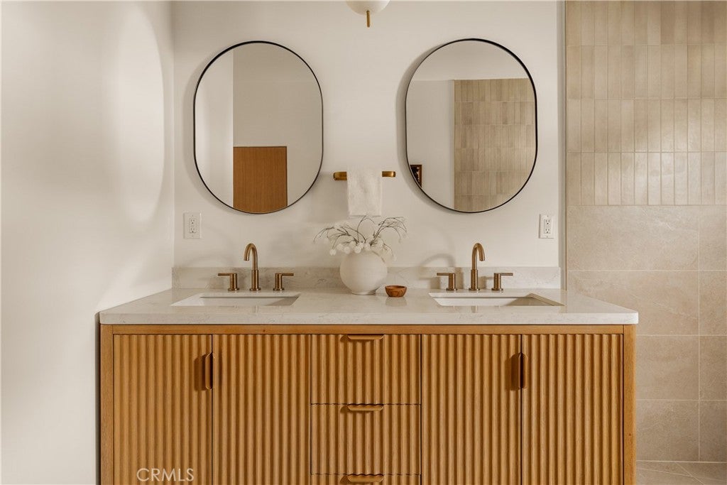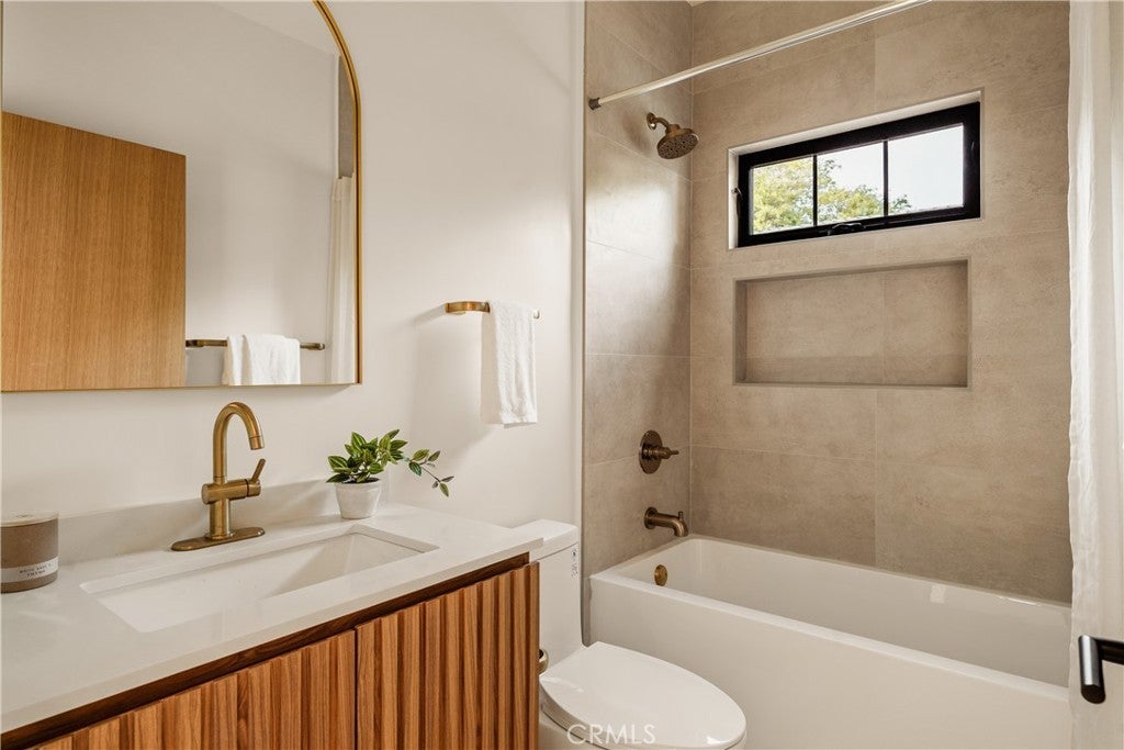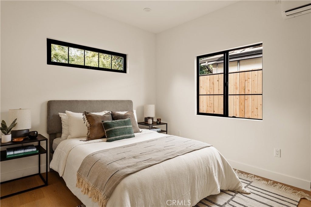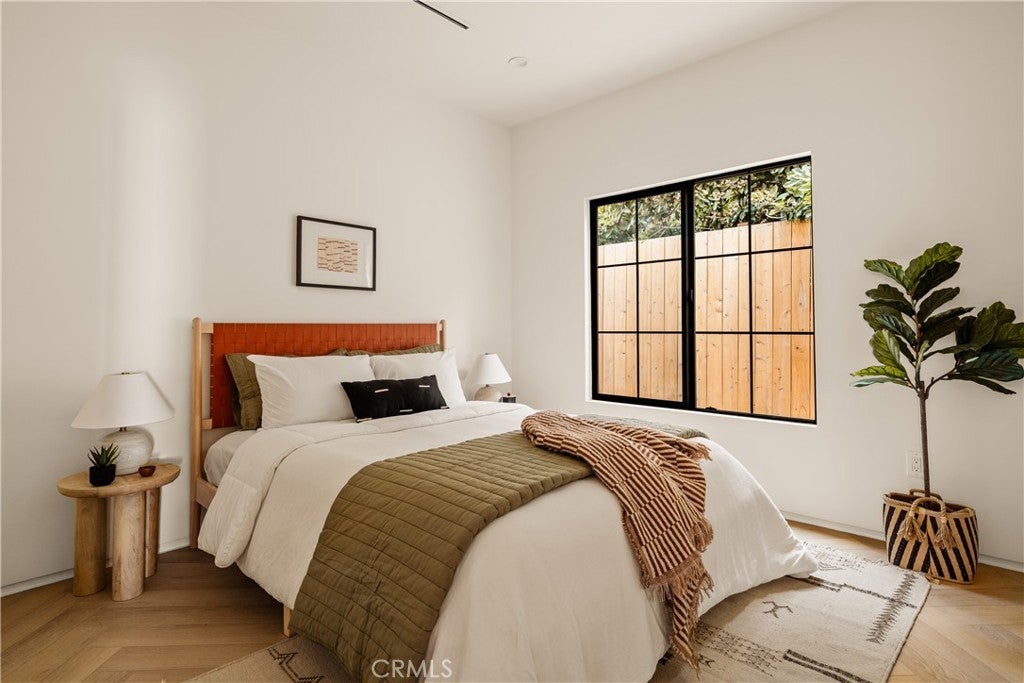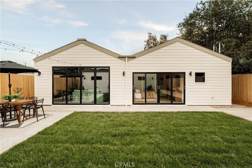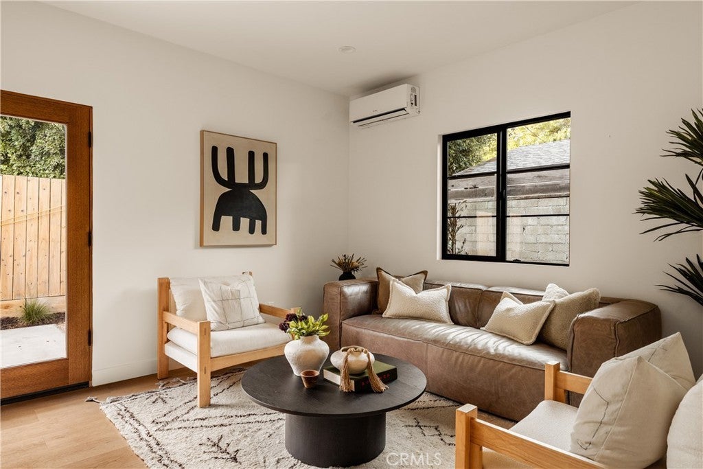 This brand-new construction stunner in a coveted pocket of Van Nuys bordering the prestigious Midvale Estates offers a quintessential blend of contemporary, understated luxury with indoor and outdoor California living at its core. Step inside and exquisite details in the formal entry signal immediately that you've arrived at someplace special — herringbone flooring, natural wood accents, built-in storage and seating, all illuminated by soft natural light from the sky above that creates the warmest of welcomes. A grand archway pulls you into the heart of the home: an expansive living space with soaring vaulted ceilings and a case study in open floor plan design. Bi-fold patio doors in the living room tuck away from sight, revealing a fully landscaped oasis and an entertainer's dream where al fresco dining, lounging and play beckon. The chef's kitchen is optimized for cooking, hosting and entertaining, outfitted with professional-grade appliances, natural oak cabinets, marble countertops, a large kitchen island and wet bar. Retreat to the primary bedroom, a quiet sanctuary featuring a spa-style ensuite bathroom with a full-size soaking tub, large walk-in closet and pocket doors that open directly to the backyard amenities. Two more generously sized bedrooms and a versatile den/office that can also double as a 4th bedroom, round out the main 4 bed / 2.5 baths / 1,931 sf residence. At the rear of the property sits a 2 bed / 2 bath / 749 sf ADU with its own address, private entrance and separate electrical meter, smartly designed for additional living/flex space or to be easily fenced off for privacy and rental income. Energy-efficient new construction with all-new systems and paid-off solar panels mean lower operating costs and peace of mind for years to come. With its prime location, meticulous style and craftsmanship, and sophisticated details seldom found at this price point — white oak doors, trimless doors and baseboards, and LED accent lighting — this spectacular home sets a new standard for elevated California living.