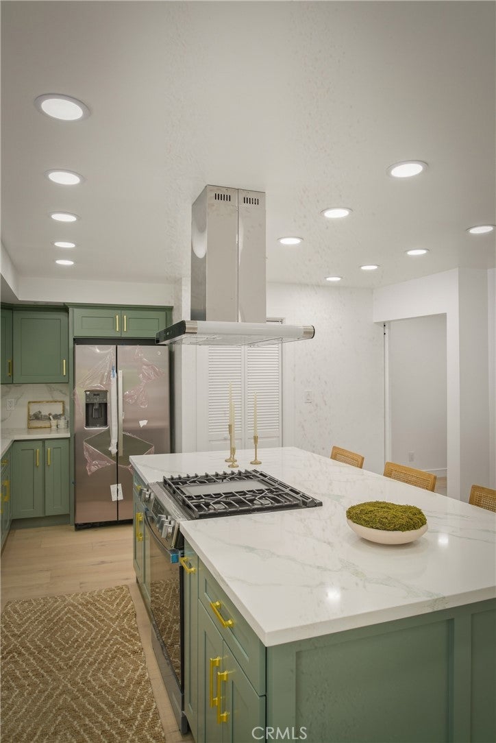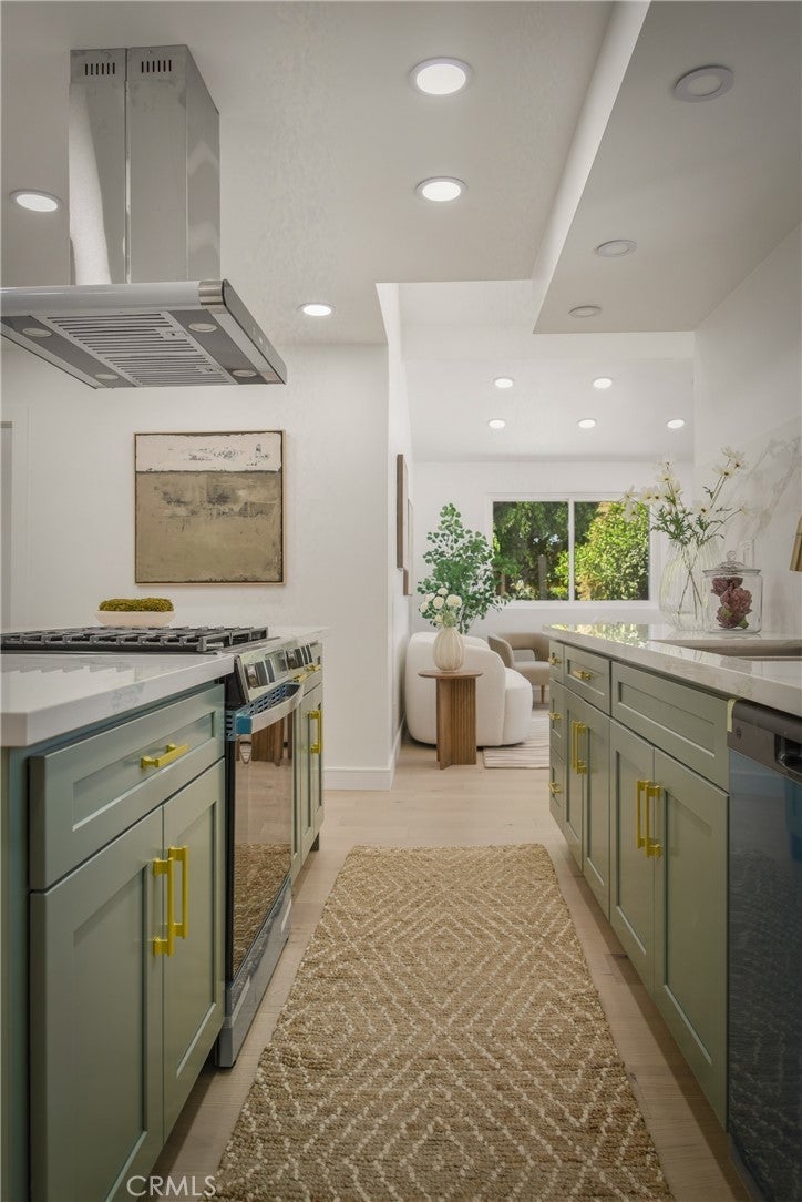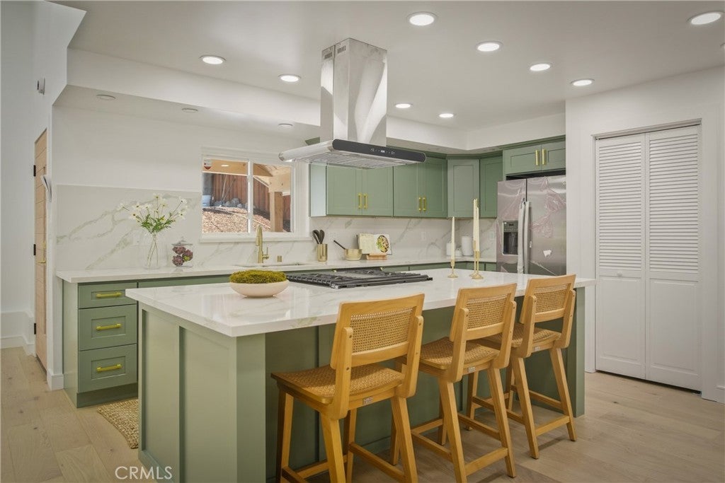 Welcome to 6150 Strickland Ave, a private Highland Park retreat where thoughtful modern design meets the vibrant soul of NELA. Perched in the hills with standout curb appeal, this fully remodeled residence pairs elevated finishes with the creative, effortless lifestyle that makes Highland Park one of Los Angeles’ most desirable neighborhoods. Step inside to soaring ceilings and a bright, open floor plan filled with natural light. At the center of the home, the chef’s kitchen features sleek cabinetry, updated countertops, premium appliances, and a spacious island designed for both daily living and easy entertaining. The open connection between the living, dining, and outdoor spaces creates a home that lives beautifully. Offering two bedrooms plus a flexible office or bonus room that can easily serve as a third bedroom, guest quarters, or studio, the layout is as functional as it is stylish. Two remodeled bathrooms complete the interior with polished, comfortable design. Outside, the home delivers exceptional versatility and charm. The front yard is an entertainer’s dream with custom concrete work, a built-in BBQ area, and a long gated driveway with parking for up to four cars. Out back, an expansive deck invites you to enjoy sunset views, cool breezes, and the relaxed indoor-outdoor living that defines the best of Los Angeles. A basement adds convenient extra storage. Located just minutes from York Blvd’s popular cafes, restaurants, boutiques, and nightlife, 6150 Strickland Ave is more than a beautifully remodeled home. It is a rare Highland Park lifestyle property.