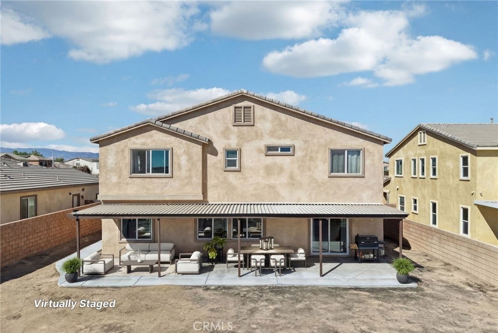 $10,000 grant available! Spacious 4-bedroom, 3-bathroom home with an optional 5th bedroom (currently used as a home office). This property features an open-concept floor plan, perfect for entertaining and family gatherings. Enjoy the convenience of one bedroom and a full bathroom on the main level—ideal for guests or multi-generational living. The home also offers a dedicated indoor laundry room and a covered patio, creating a comfortable space for outdoor relaxation. Equipped with solar for potential energy savings, this home is designed for both efficiency and comfort. A backyard shed provides additional storage, making it perfect for a growing household in need of extra space.