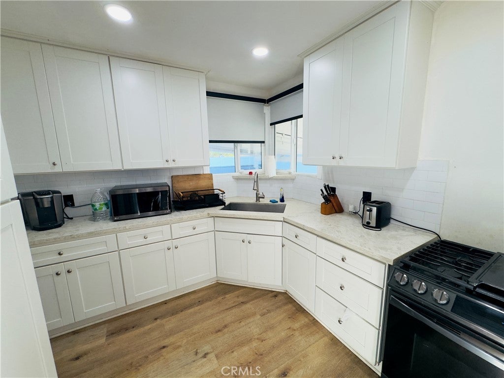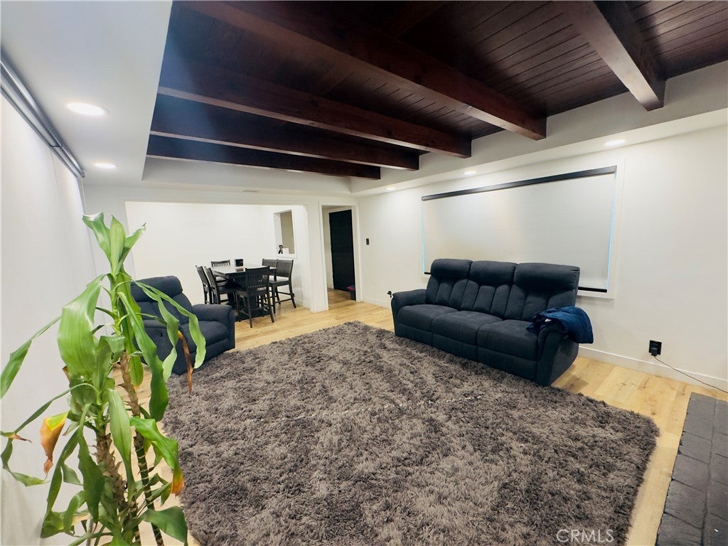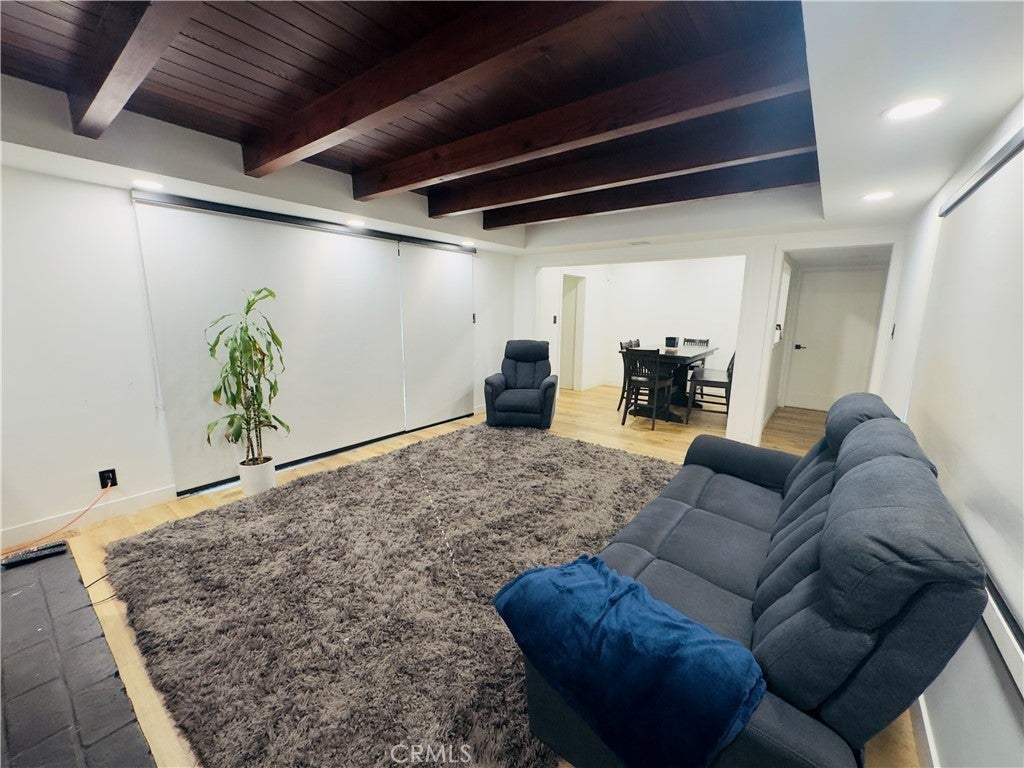 A great opportunity to own a turnkey home in a desirable Pico Rivera neighborhood! This move-in ready property blends modern upgrades with warm, inviting design. Step into a spacious living room featuring stunning exposed wood beam ceilings, a sleek black brick fireplace, and an open layout filled with natural light. The home showcases newer flooring throughout, recessed lighting, and a clean, contemporary feel. The kitchen offers updated cabinetry, granite countertops, and a functional layout perfect for everyday living and entertaining. The upgraded bathroom features a modern vanity, custom tile shower, and stylish finishes. Additional highlights include a laundry area, updated fixtures, and a layout that maximizes comfort and usability. The private backyard offers space to relax, entertain, or create your ideal outdoor setup. Conveniently located near schools, shopping, dining, and easy freeway access.