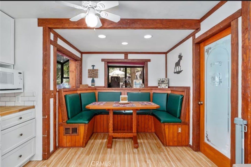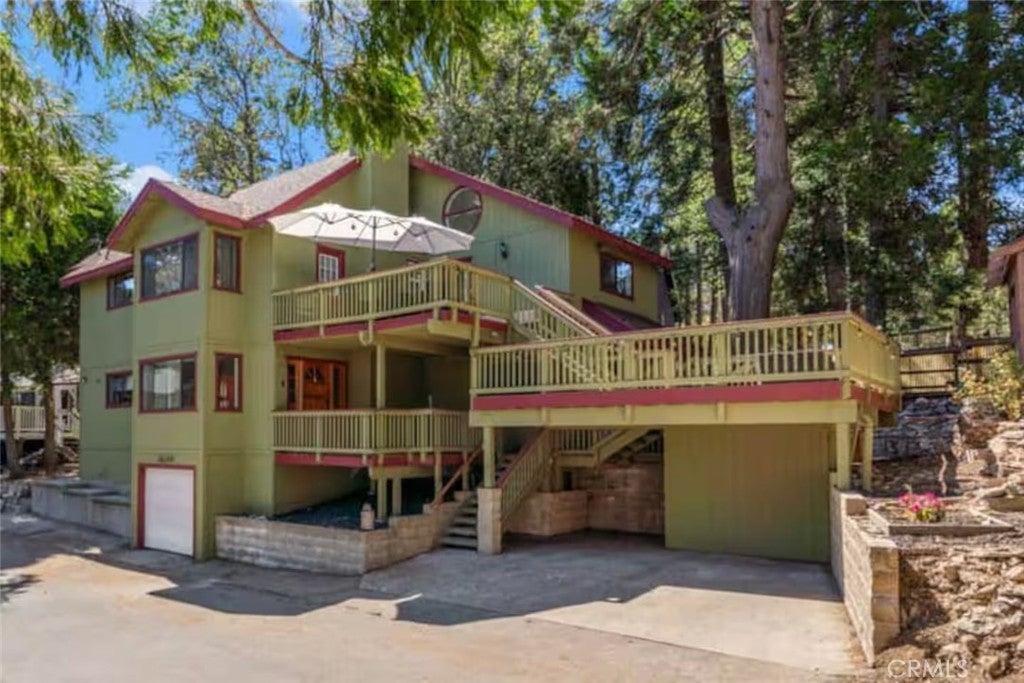 Welcome to 26249 Alpine Ln, Twin Peaks, CA 92391 — a unique 4-bedroom, 3-bathroom mountain home that blends rustic charm with modern comfort, perfect for full-time living, a second home, or even a vacation home. Step inside and you’ll immediately notice the warm wood accents, open living spaces, and natural light throughout. The home features a cozy cabin-style design with custom wood finishes, a spacious dining area, and multiple living spaces ideal for entertaining or relaxing after a long day. The kitchen flows seamlessly into both dining areas, including a built-in breakfast nook that adds character and functionality. Large windows and sliding doors bring in natural light and connect you to the peaceful outdoor surroundings. Upstairs, the bedrooms offer privacy and comfort, including a spacious primary suite with room to unwind. The home also includes multiple bathrooms and an in-unit laundry area, making it practical for larger households or guests. Step outside to enjoy multiple decks and outdoor spaces, perfect for gatherings, BBQs, or simply enjoying the fresh mountain air. Surrounded by trees and nature, this property offers a true escape while still being within driving distance to the city.
