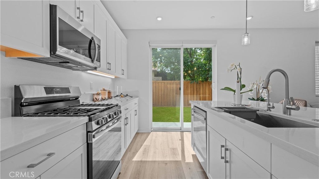 Welcome to this stunning contemporary residence nestled in the heart of Sylmar, offering the perfect blend of modern design, comfort, and functionality. Built in 2023, this beautifully crafted home features 4 spacious bedrooms, 3 full bathrooms, and an expansive 2,630 square feet of thoughtfully designed living space—ideal for both everyday living and stylish entertaining. From the moment you step inside, you are greeted by a bright and airy OPEN-CONCEPT floor plan with HIGH CEILINGS that seamlessly connects the living, dining, and kitchen areas. Large windows flood the home with natural light, enhancing the clean lines and modern finishes throughout. The main living area provides ample space for gatherings, while maintaining a warm and inviting atmosphere perfect for relaxing with family. The gourmet kitchen is the centerpiece of the home, designed with both form and function in mind. It boasts sleek countertops, abundant cabinetry, and a large center island that doubles as a breakfast bar—perfect for casual dining or hosting guests. High-end appliances and contemporary fixtures complete the space, making it a dream for any home chef. Upstairs, you’ll find generously sized bedrooms, including a luxurious primary suite that serves as a private retreat. The primary bedroom offers plenty of space, complemented by a spa-like ensuite bathroom featuring dual vanities, a walk-in shower, and modern finishes. The additional bedrooms are versatile and ideal for family members, guests, or even a home office setup. The property also includes a well-sized backyard, offering endless possibilities for outdoor living—whether you envision a serene garden, a play area, or an entertainment space for gatherings and weekend barbecues. Additional highlights include a dedicated laundry area, ample storage, and an attached garage. Being a newer build, the home provides peace of mind with modern systems and minimal maintenance needs. This home offers convenient access to local parks, shopping, dining, and major freeways, making commuting and daily errands effortless; this is more than just a home—it's a modern sanctuary designed for today’s lifestyle. Whether you're looking for space, style, or a turnkey opportunity, this exceptional property delivers it all.