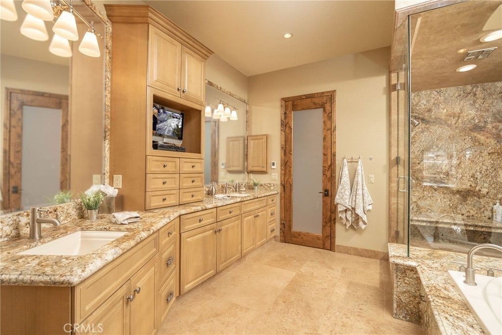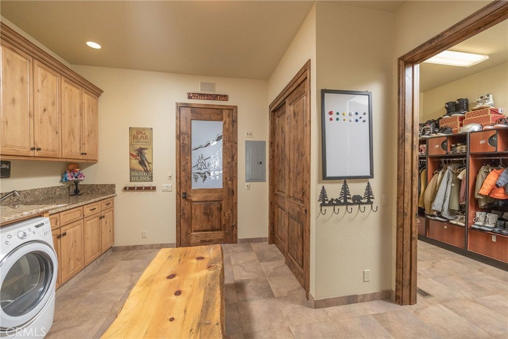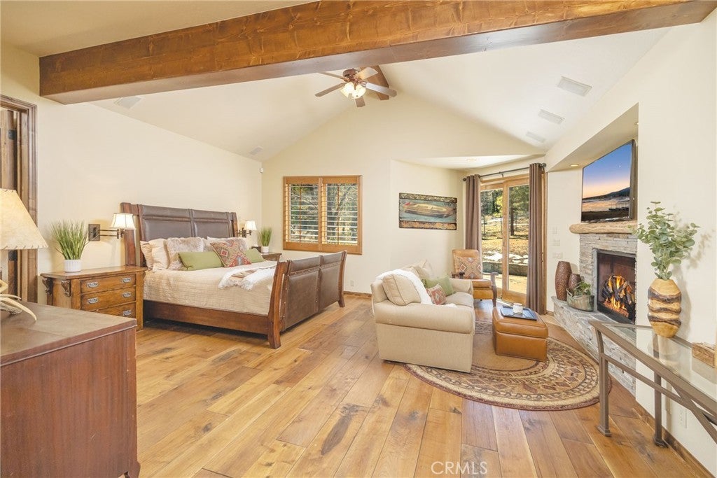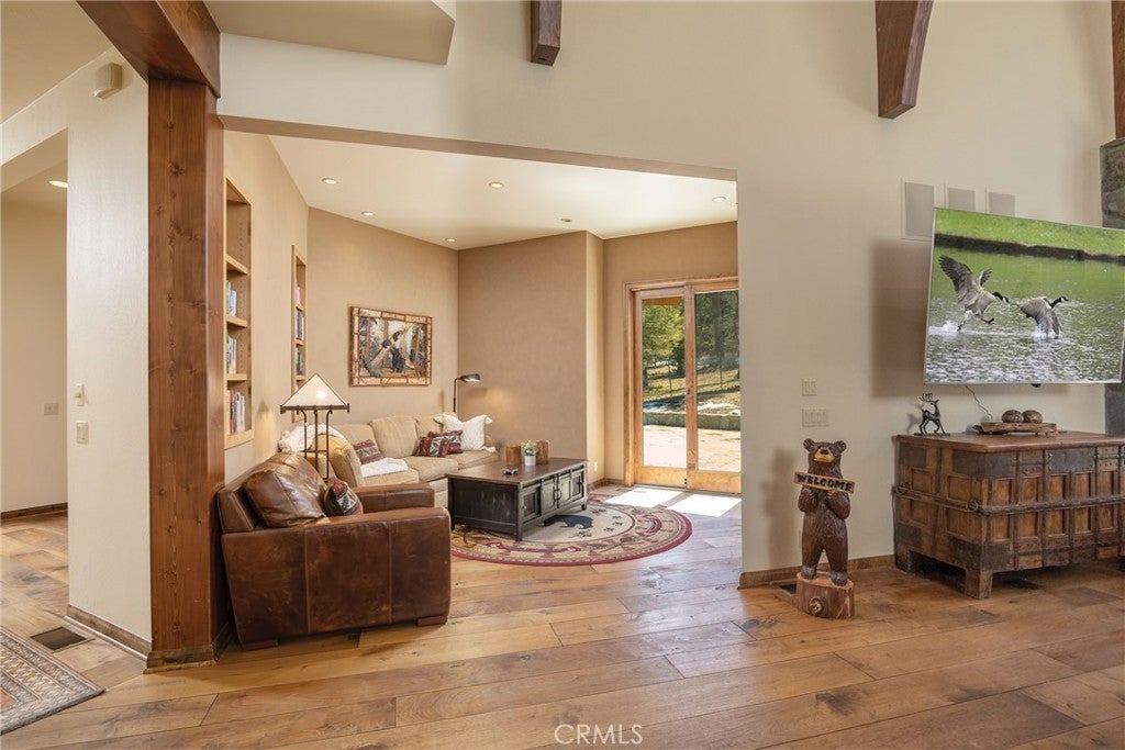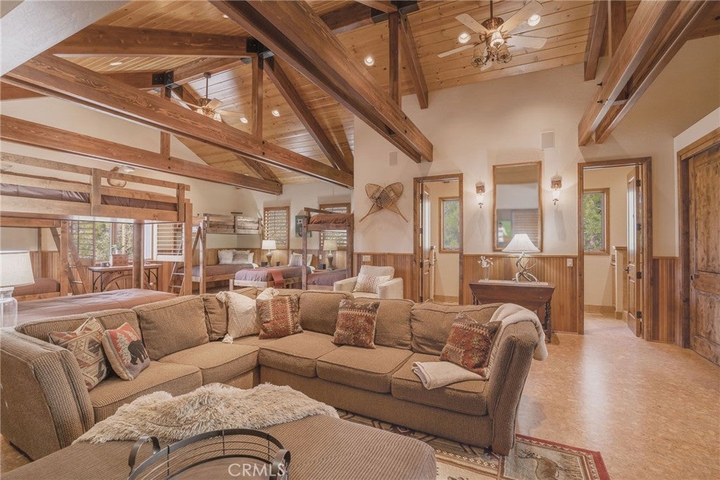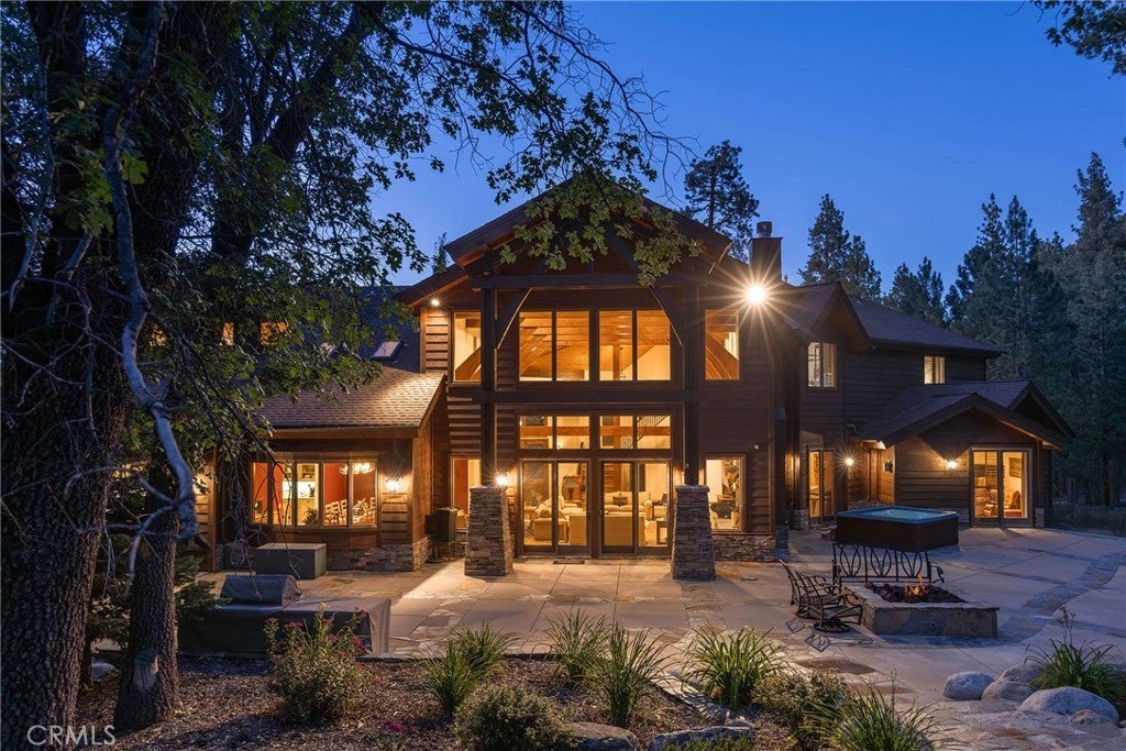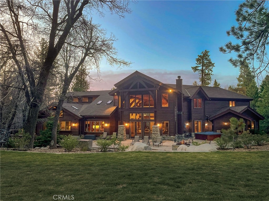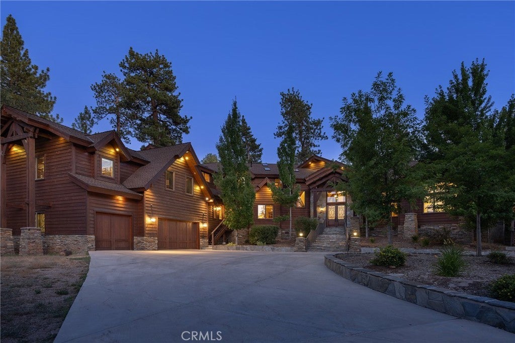EXTRAORDINARY...STUNNING...SPECTACULAR are just words and pale in comparison to experiencing this homes magical setting, abundant features, beautiful architectural elements and the AMAZING LOCATION just 3 minutes away from Snow Summit's winter & summer activities! As you enter you are instantly transported by the stunning wall of windows inviting the beauty of the outdoors...in! Peace and serenity are found in this homes many magical spaces AND SO IS the FUN! There is an amazing 10 bed bunk room that includes 2 ensuite bathrooms. There is a separate game room with pool table, TV, massive game closet, wood-burning fireplace and an expansive wet bar! The fun continues with frisbee golf, a horse shoe pit, putting and corn hole grass area, separate kids playhouse with rooftop deck and a built-4-kids Zipline! Boasting 2.74 acres that back to the national forest and an oversized 3 -car garage with adjacent storage room. Delivering outdoor living at its best with an outdoor spa, built-in BBQ, gas Lava fire pit and a massive concrete patio & composite deck perfect for dining and gathering. The exquisite kitchen has arguably the largest granite island you will ever see, providing fantastic space for food prep, casual dining & entertaining. This is a cooks kitchen with dual-fuel Wolf range, Subzero refrigerator and freezer, Viking warming oven, hot water pot filler and 2 Bosch dishwashers. The primary bedroom suite has a sitting area in front of a lovely fireplace, large closet and a luxury bathroom with jetted spa tub and huge steam shower. There is laundry on each level and the main floor laundry includes a fantastic locker room that is simply brilliant! Craftsmanship & quality are on display with hardwood plank flooring, custom wrought iron details, Anderson windows and sliding doors, custom lighting, central vacuum throughout, tankless water heaters, 4 forced-air heaters and CAT 9 wiring in the bedrooms. The Great Rm, Game Rm and Primary Suite have surround sound speakers and each bedroom has individual speakers to enjoy a personal listening experience. This property has a private well that provides water for the home and landscaping without a water Bill! This home provides so many options and would make a wonderful full-time home, special vacation retreat with good income producing potential, if desired.