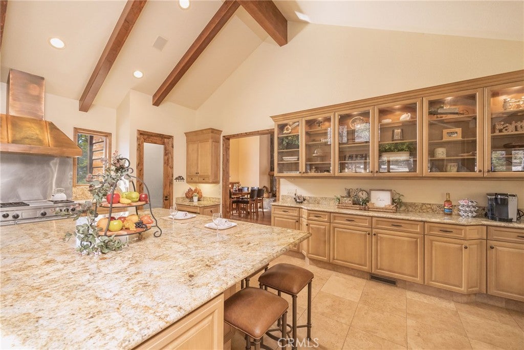 Beamed Ceilings, Bedroom on Main Level, Breakfast Bar, Built-in Features, Ceiling Fan(s), Central Vacuum, Entrance Foyer, Granite Counters, High Ceilings, Main Level Primary, Multiple Staircases, Open Floorplan, Pantry, Primary Suite, Recessed Lighting, Separate/Formal Dining Room, Smart Home, Two Story Ceilings, Walk-In Pantry, Wine Cellar, Wired for Sound