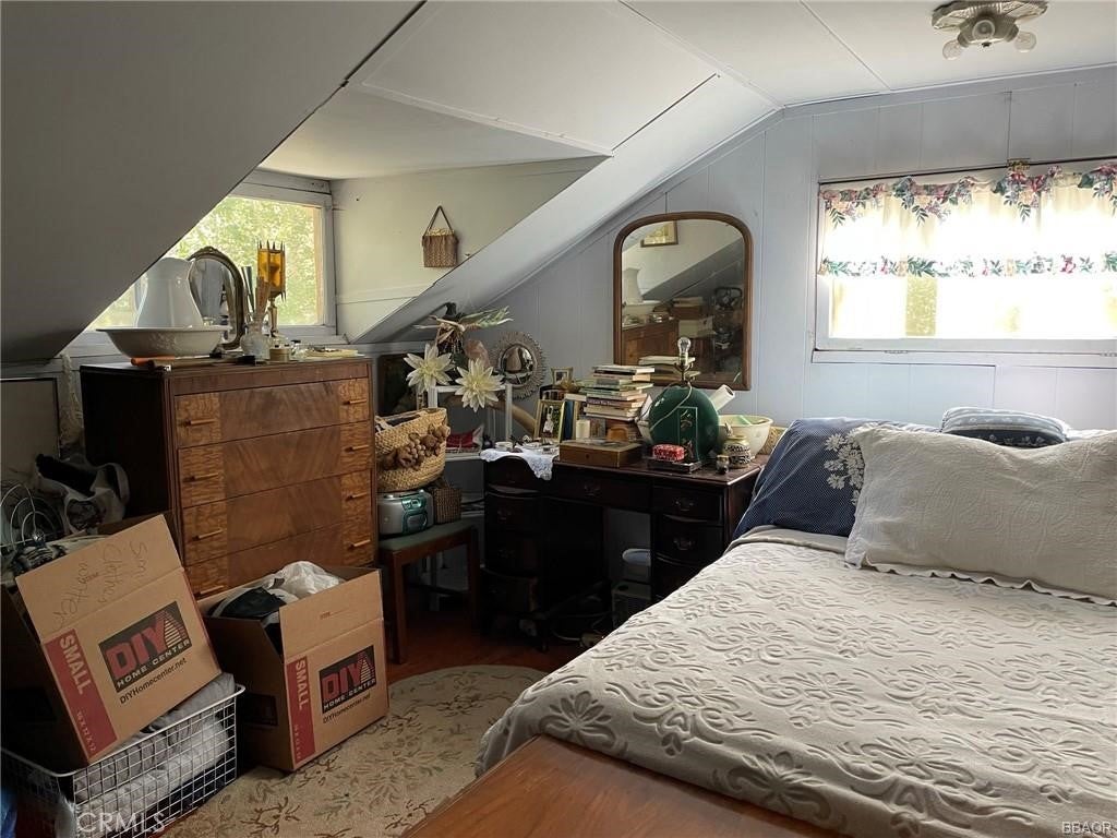 Old Big Bear Charm of yester year just waiting for a new owner to provide some TLC for this great property. Original portion of the cabin, the lower back portion was built around 1918. in the later 60's the living roon, kitchen expansion and bedrooms were added. Kinney Lindley who owned the Moonridge Market built the fireplace. Location is lower Moonridge, it is convenient to shopping, the Moonridge Corridor, the Zoo, Bear Mountain and Snow Summit Ski Areas, the National Forest and the Moonridge Golf Course. Enchantment abounds in design and amenities, wood floors, a native stone fireplace, huge front deck, the kitchen is consistant with the perod of time. Cook your favorite recipes on the antique O'Keefe and Merrit stove with a matching refrigerator. The kitchen also boasts and authentic wood burning stove. and an extra Pantry Sink. Upstairs you find 2 ample sized bedrooms and an artist's studio which can be a third bedroom or sleeping area.
