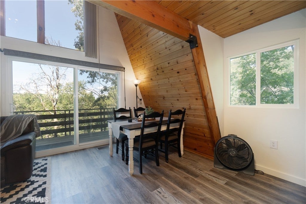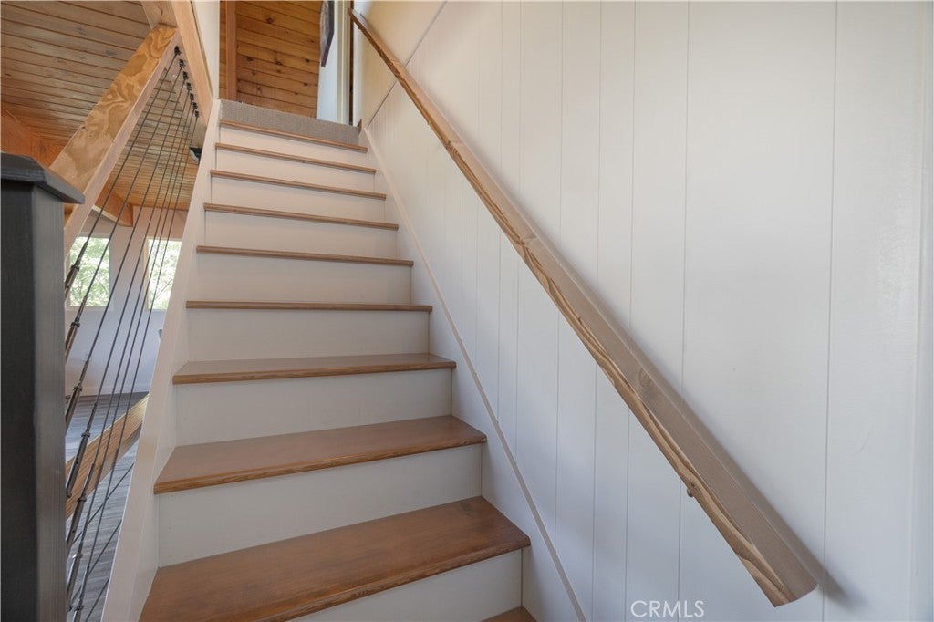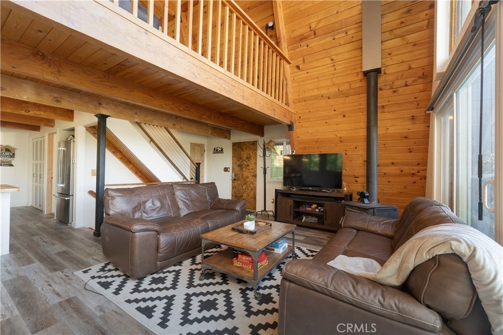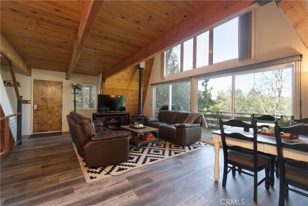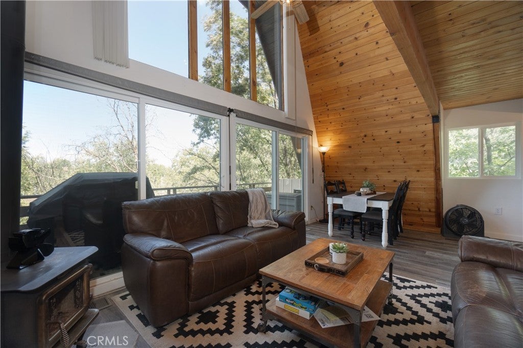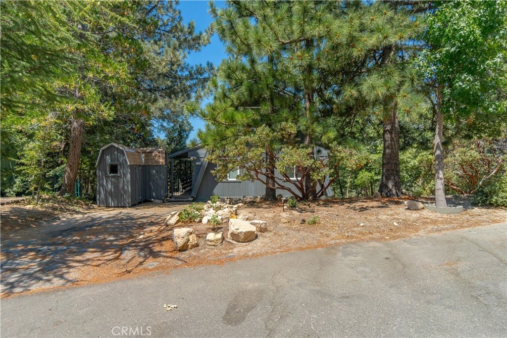 A gem in the Lake Rights Area with plenty of parking nestled in the serene beauty of Lake Arrowhead, this newly updated cabin offers the perfect blend of rustic charm and modern amenities. Enjoy breathtaking views of the skyline and mountains from every room. Recently renovated with new flooring and carpet throughout, updated kitchen with stainless steel appliances, updated modern bathrooms, all new windows and slider doors throughout with central heating and ac. The main floor offers spacious living with an open concept living area with a cozy wood burning stove for fires, perfect for relaxing and entertaining. Main level also offers a bedroom and bathroom. Expansive wrap-around deck on upper for outdoor dining and private lower level to enjoy the natural quiet surroundings. Upstairs loft with a beautiful A Frame view and an additional large bedroom. The downstairs consist of a newly added bedroom with private sliders to the lower deck and an updated bathroom. There is an additional entertainment area downstairs off of the bedroom with sliders that open out to the lower deck for relaxation or entertaining. Laundry Room and walk in storage area on the lower level as well, washer and dryer are included with the home. Ample parking with a circular driveway and a direct walk to the main floor of the home. Just a short 7-minute drive to the lake ideal for water activities and nature walks. THIS PROPERTY HAS LAKE RIGHTS!!! Very Quiet Neighborhood...