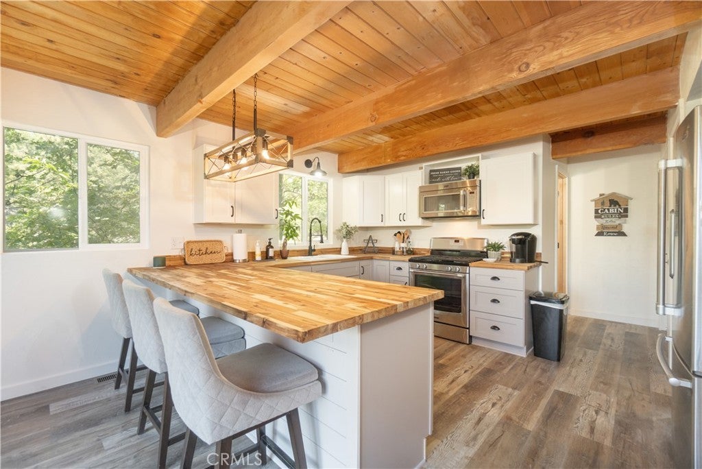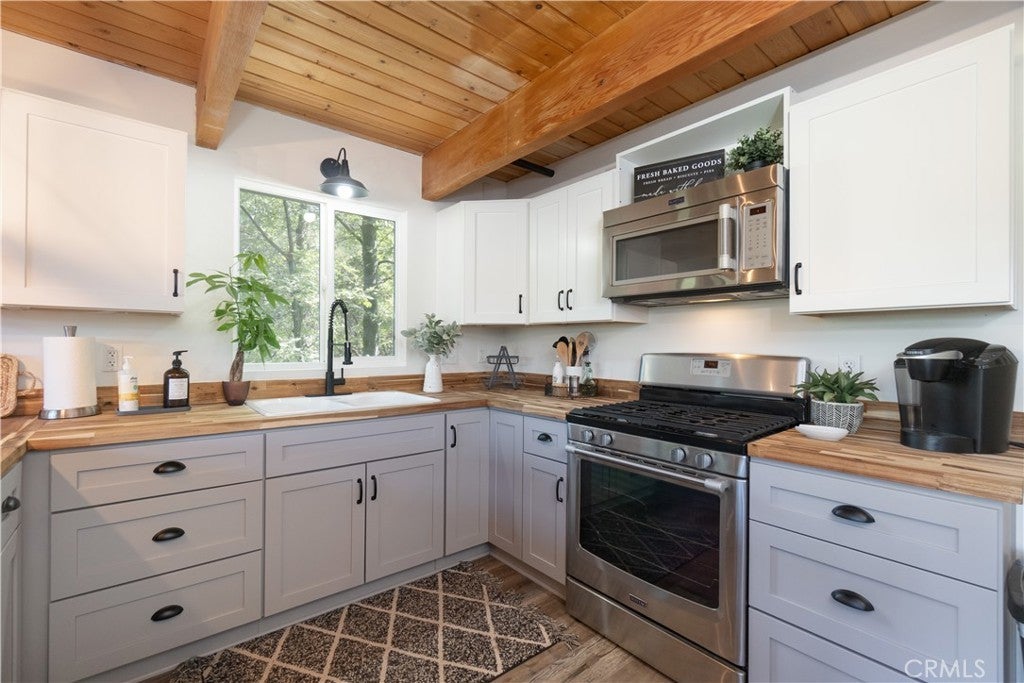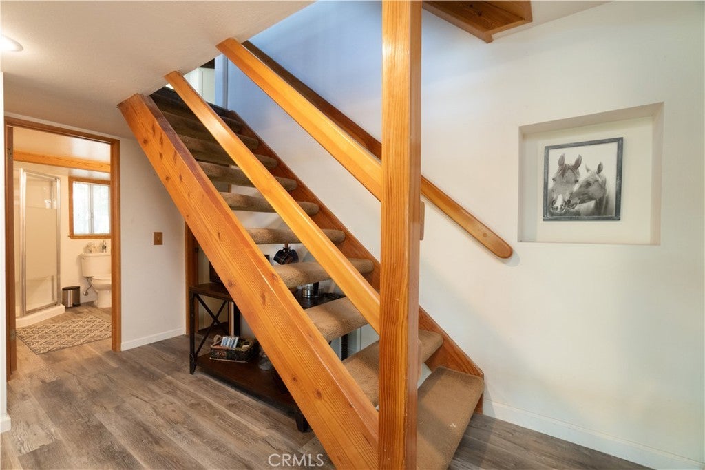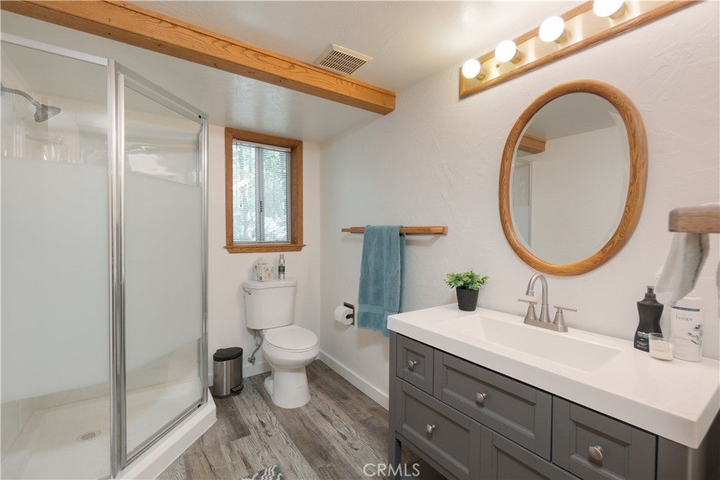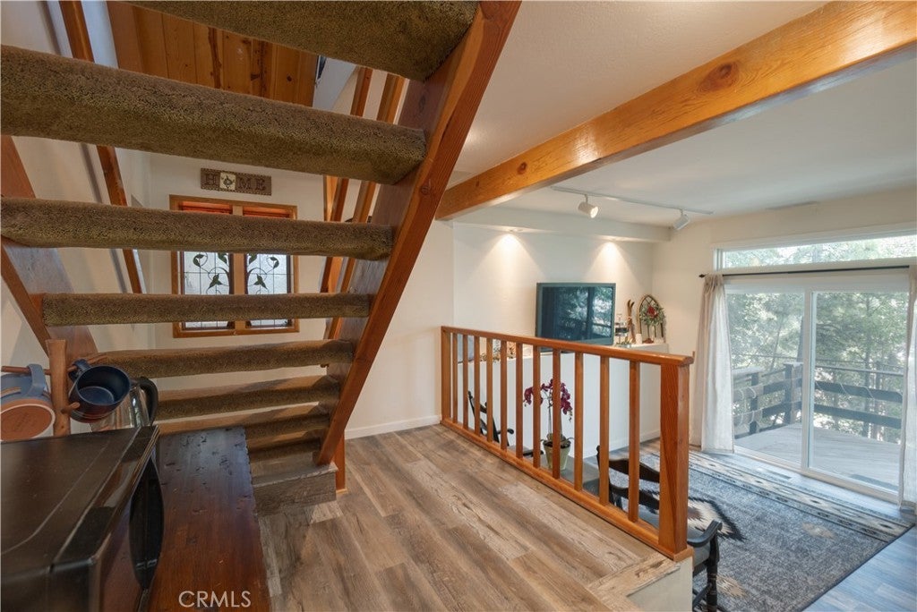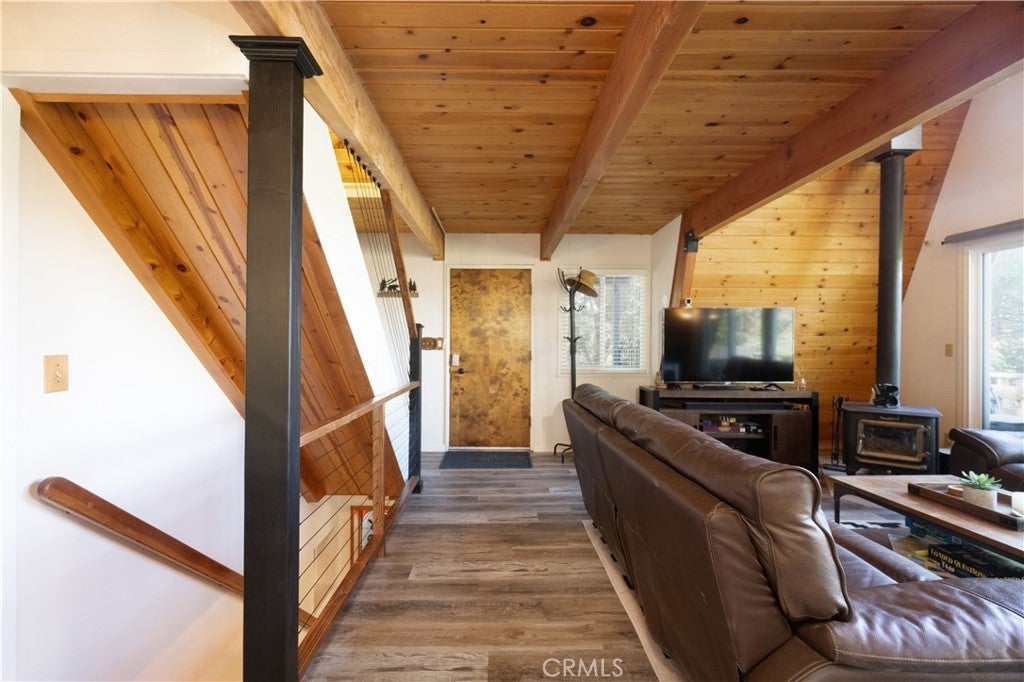 A gem in the Lake Rights Area with plenty of parking nestled in the serene beauty of Lake Arrowhead, this newly updated cabin offers the perfect blend of rustic charm and modern amenities. Enjoy breathtaking views of the skyline and mountains from every room. Recently renovated with new flooring and carpet throughout, updated kitchen with stainless steel appliances, updated modern bathrooms, all new windows and slider doors throughout with central heating and ac. The main floor offers spacious living with an open concept living area with a cozy wood burning stove for fires, perfect for relaxing and entertaining. Main level also offers a bedroom and bathroom. Expansive wrap-around deck on upper for outdoor dining and private lower level to enjoy the natural quiet surroundings. Upstairs loft with a beautiful A Frame view and an additional large bedroom. The downstairs consist of a newly added bedroom with private sliders to the lower deck and an updated bathroom. There is an additional entertainment area downstairs off of the bedroom with sliders that open out to the lower deck for relaxation or entertaining. Laundry Room and walk in storage area on the lower level as well, washer and dryer are included with the home. Ample parking with a circular driveway and a direct walk to the main floor of the home. Just a short 7-minute drive to the lake ideal for water activities and nature walks. THIS PROPERTY HAS LAKE RIGHTS!!! Very Quiet Neighborhood...