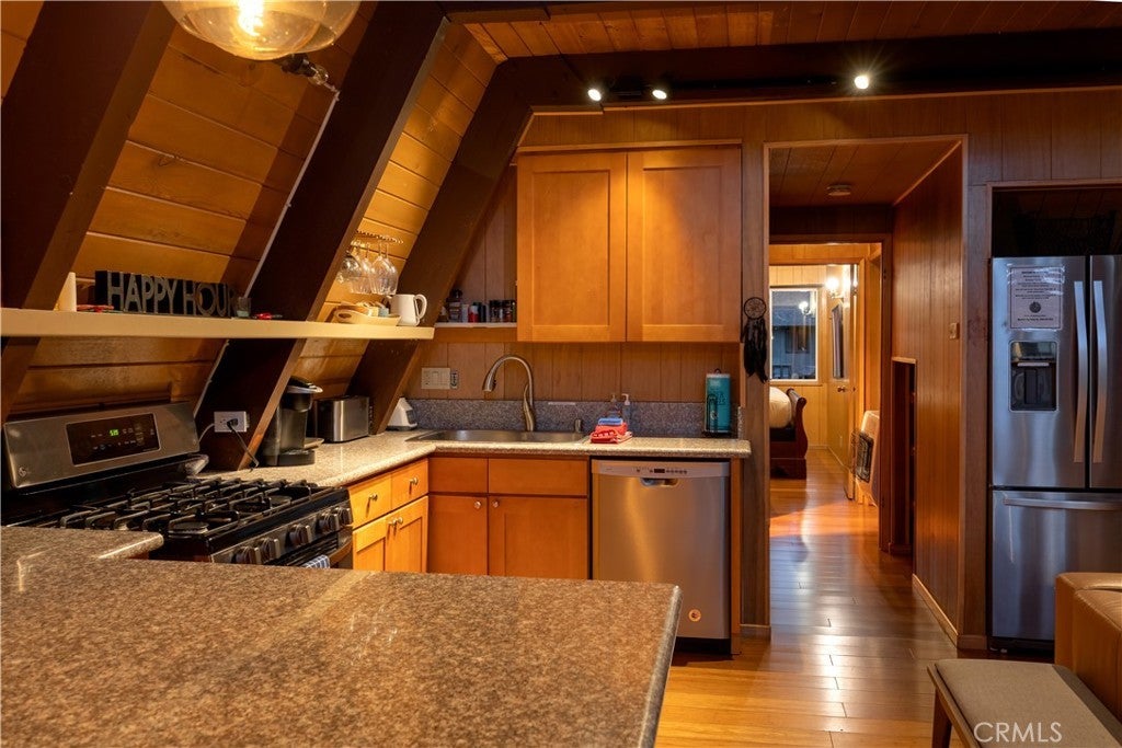 This is a one of a kind. 5-bedroom A-frame mountain cabin in Big Bear Lake! This charming and spacious retreat is nestled is steps away from Snow Summit Ski Resort. With its distinctive A-frame architecture, this cabin exudes a rustic yet modern charm that perfectly complements its natural surroundings. Stepping inside you'll find a warm and inviting living area with vaulted ceilings and expansive windows that allow abundant natural light to fill the space. The 3 story, 2248 sq. ft. cabin provides ample space for family and friends to gather. After a day of skiing or exploring the slopes or hiking trails you can unwind in the spa or outside in oversized backyard area where you can enjoy the fresh mountain air. Relax and sit under the covered seating area enjoying a book. Additionally, the cabin's proximity to the slopes allows for easy access to skiing and snowboarding during the winter and downhill biking in the summer, making it a haven for outdoor enthusiasts.
