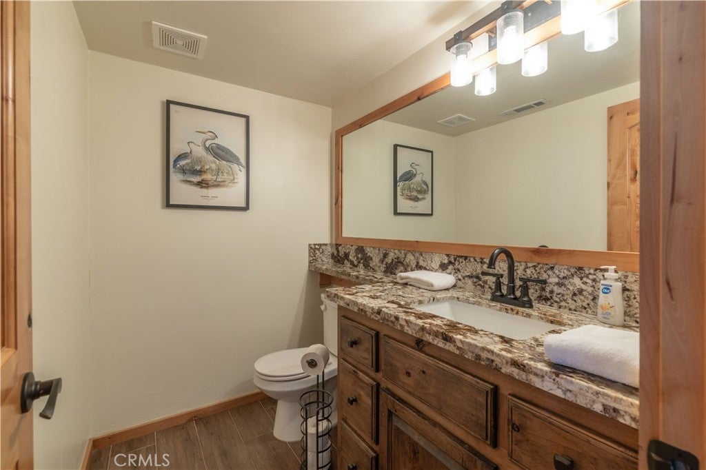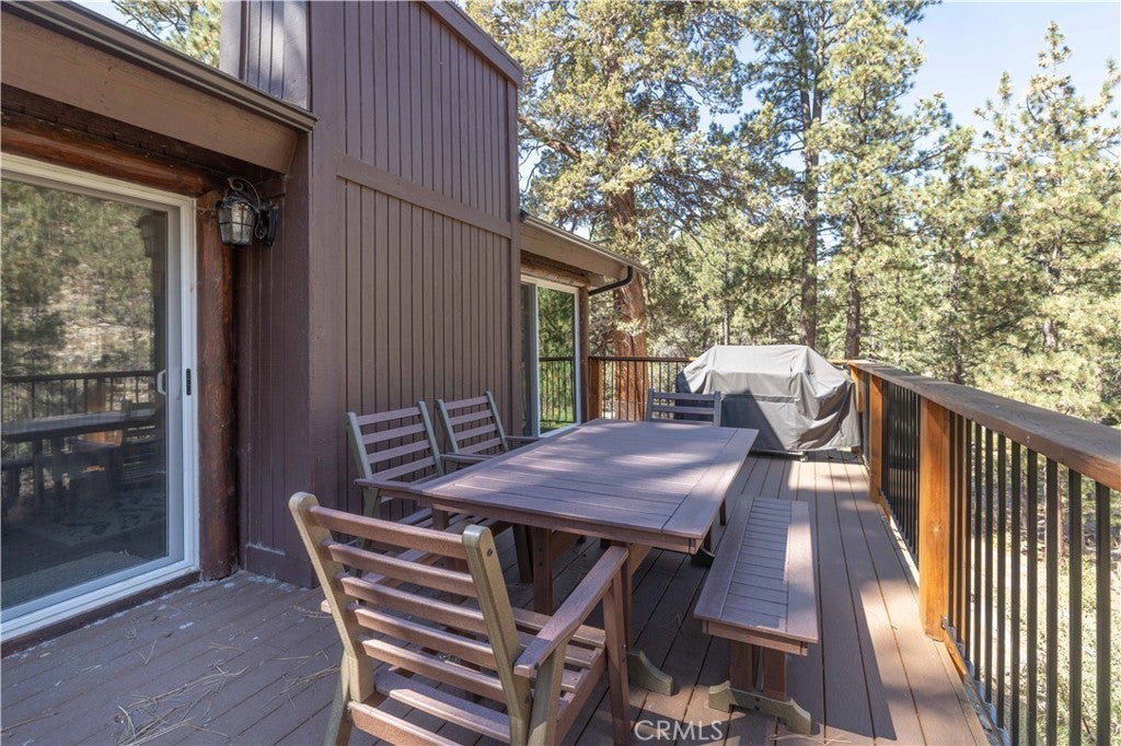 HOME BACKS TO A PERMANENT OPEN SPACE EASEMENT!! TRANQUILITY, PRIVACY & LUXURIOUS LOCATION is probably the best way to describe this home!! Home is located in one of the best neighborhoods in the whole Big Bear Valley- EAGLE MOUNTAIN ESTATES!!! Home features 5 bedrooms ( each bedroom has its own bathroom ) and 8 bathrooms which allows many possibilities for large crowds for their convenience and enjoyment. Tile flooring throughout for more durability and resistance. Log accents throughout make this home look and feel like a true cabin in the woods!! Enjoy your cup of coffee from the deck enjoying the very nice scenery with the utmost peace and quiet. This home is one of a kind, don't wait too long, it won't last!!!!
