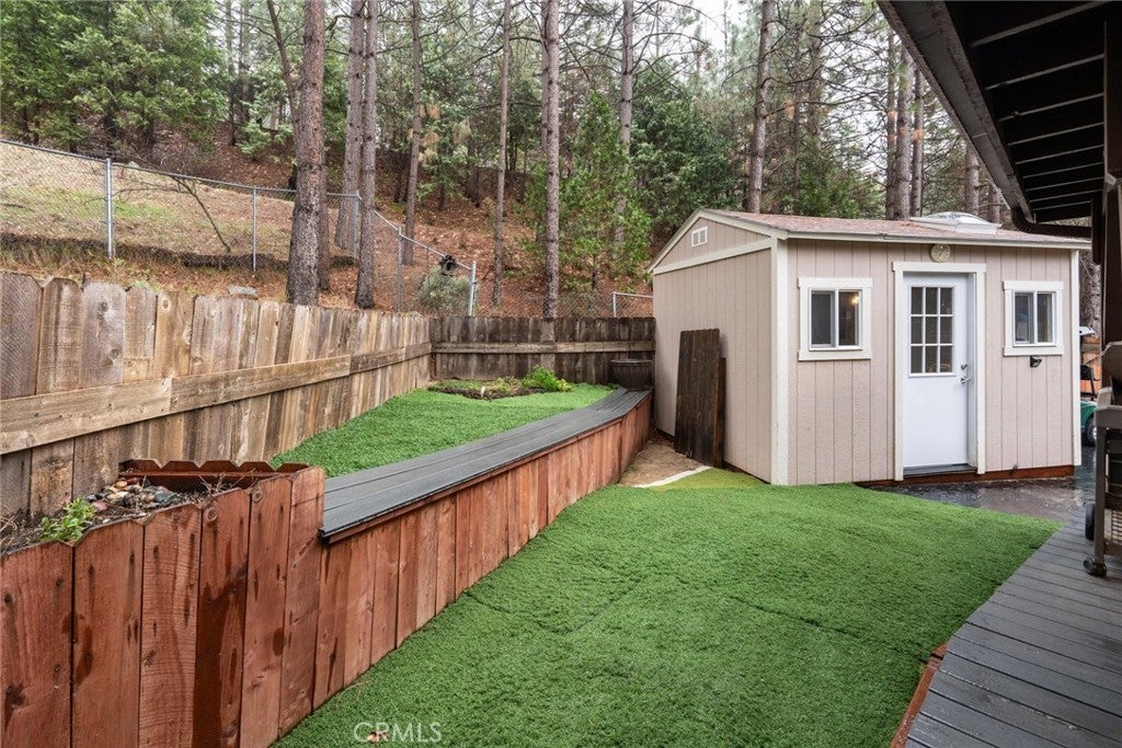 Welcome to Bass Lake living without the cost of Bass Lake Housing! This home is located in the most coveted spot in the Sierra Springs Village 55+ Community. With no neighbors on either side or behind, you have the privacy that everyone wants and a large backyard to enjoy without onlookers. There's an extended driveway and even more room in the back behind the gate. But wait! There's more! Not only does it have a Brand new roof, this fabulous 3 bed, 2bath home has been updated with beautiful wood plank flooring and QUARTZ COUNTERTOPS. Plus, it features a gorgeous beam running the length of the main rooms. The Master is separate from the other two bedrooms and the ensuite boasts a large soaker tub. Enjoy the best of Mountain Living with Bass Lake just minutes away and Yosemite within easy reach! Secure your home before Summer hits.