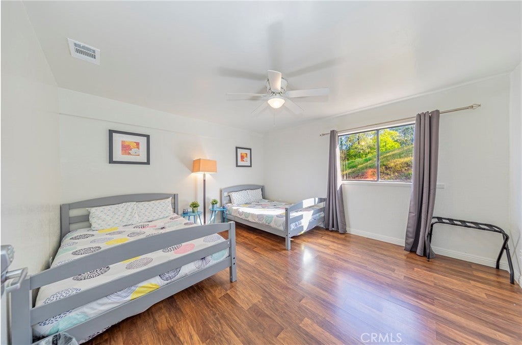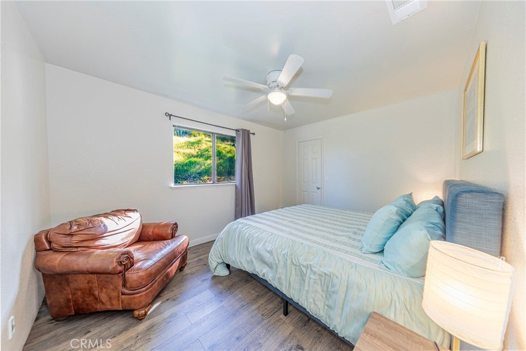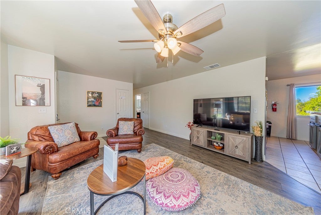 A fully furnished move-in ready, actual 4 bedrooms and 2 bathrooms, single level home nestled on a hill with stunning mountain view! An active income property. Enjoy a tranquil private setting on 2. 48 acres with your favorite people and animals. This home has plenty of natural light, dual pane windows, a 2-year-old heating and cooling system per Sellers and easy-care tile and laminate flooring throughout the home. The kitchen has granite counters, a double sink under a scenic window, plenty of cabinets and counter space which includes a custom peninsula bar with a redwood countertop, which can be positioned in another location. Adjacent to the kitchen is a dining area with a slider door to the open backyard with a concrete patio with comfy chairs and a hot tub. Down the hall there is a hall bathroom with a shower, two good size guest rooms and a primary bedroom with a private primary bathroom. There is bonus living space that is not added into the square footage, offering a large walk-in closet, a small recreational area and an additional bedroom with a walk-in closet! Come see the neighborhood, the central location to neighboring towns, Bass Lake, Yosemite and even Fresno. Come see the outside private land to use. Come enjoy the stunning mountain views, hawks soaring and sunsets.