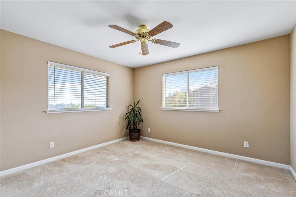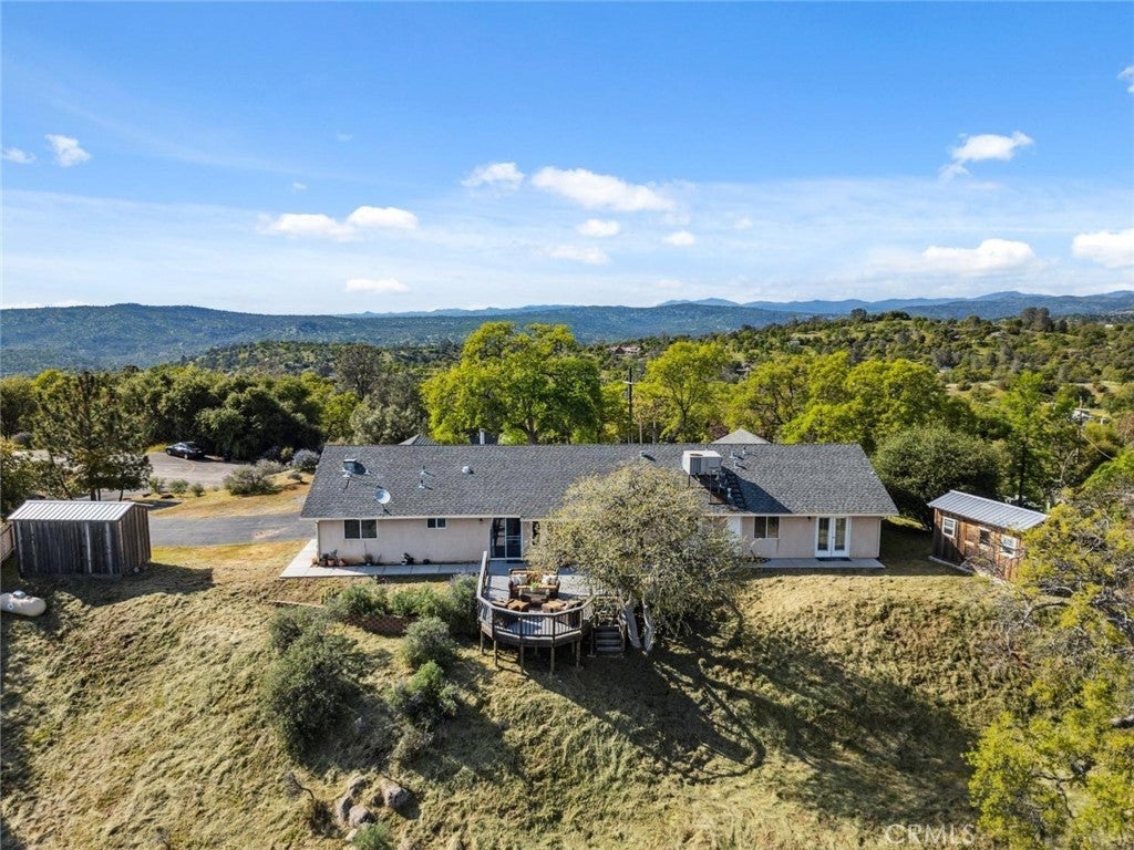 This stunning 4-bed, 3-bath mountain retreat offers panoramic sights of the Sierra Nevada & surrounding hillsides that will stop you in your tracksespecially at sunset. Tucked at the end of a peaceful cul-de-sac, this 2,168 sq. ft. home was designed to capture the essence of mountain living with visits from local wildlife. The spacious, open-concept living area is ideal & the well-designed layout includes a private fourth bedroom & full bathperfect for guests, extended family, or a private home office. The luxurious master suite features a walk-in closet, an oversized soaking tub, separate shower, double sinks, and French doors that open to the serene backyard. Two additional bedrooms share a Jack & Jill bathroom with double sinks & a tub/shower combo, while custom blinds throughout the home offer both privacy and elegance. Step outside to your Trex deck for outdoor dining, BBQs, or quiet mornings surrounded by mature trees and unobstructed views. The property includes two storage sheds, perfect for tools, gear, or extra space to keep things organized. There's even a separate driveway for your RV, boat, or toysand just steps away from your front door in the cul-de-sac, you'll find your own private hiking trail to explore. Located in the highly desirable Yosemite Lakes Park community, this home offers more than just a viewit offers a lifestyle. Enjoy access to hiking trails, a clubhouse, golf course, community pool, tennis courts, an equestrian center & local restaurants!