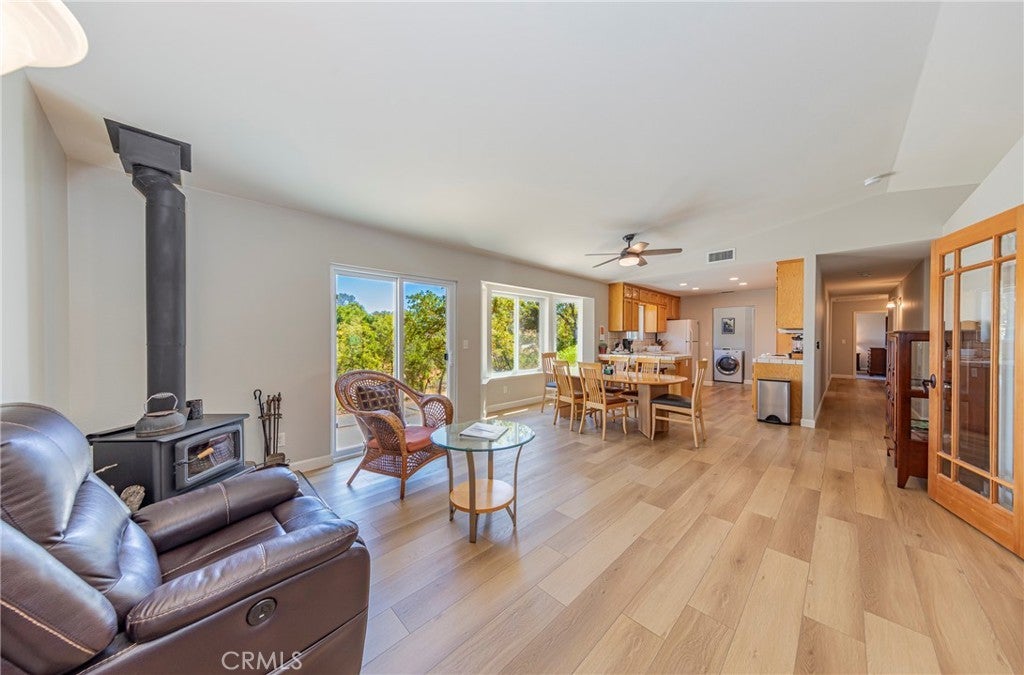 Just 26 miles from the south gate of the breathtaking beauty of Yosemite National Park, this 4-bedroom, 3-bath home offers 2,168 sq ft of comfortable living space on almost 3 acres. The interior is turnkey, exceptionally clean and and move-in ready! The kitchen is fully equipped with appliances and a full set of utensils. Located in a Firewise community, this home offers added peace of mind with proactive wildfire mitigation measures in place. Check with your insurance agent for discounted premium. Enjoy the spacious room of each bedroom along with ample bathrooms. A freestanding wood-burning stove in the family room adds warmth and rustic charm to the main living area. The living room is a bonus that can be left as is or use the blank canvas to create a theatre room, game room or whatever your creative self can imagine! The home's exterior features a durable, fire resistant combination of stucco and concrete plank siding, blending style with low-maintenance living. The landscaped yard is maintained by an efficient drip irrigation system, ensuring low water usage and easy upkeep. And trees galore! Walk amongst your mature oak, pine, manzanita and many more.Whether you're looking for a full-time residence, vacation getaway, or investment opportunity, the spacious layout and versatile acreage offer endless possibilities.