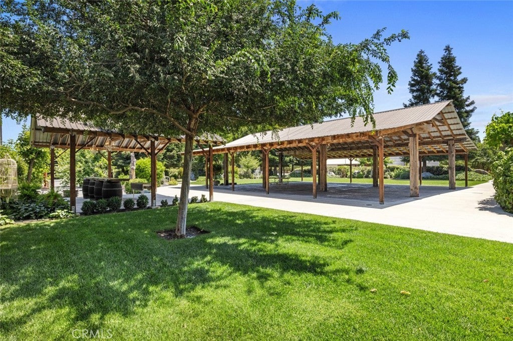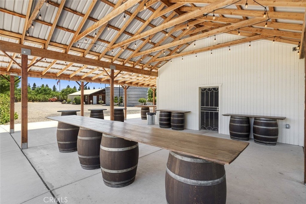 More than just a home, this 9.99-acre estate is a one-of-a-kind sanctuary, lovingly crafted for elegance, utility, and unforgettable moments. Designed with intention, this single-story farmhouse blends modern convenience with timeless charm - featuring vaulted ceilings, restored vintage appliances, wood-look tile and hardwood flooring, custom barn doors, and a spa-worthy primary suite complete with clawfoot tub, walk-in shower, and peaceful views. Step out to your private oasis: a custom fenced pool, lounge area beside a pond and evergreen trees, and an outdoor bathroom/storage built from reclaimed wood. Concrete paths lead to the show-stopping event pavilion - framed by 12x12 rustic beams, draped in string lights and chandeliers, and centered around a stained/stamped concrete slab with built-in fireplace. Ideal for weddings, reunions, and entertaining on any scale. Nearby, enjoy a wine-barrel bridal pavilion, a full-service food/drink building, and a detached bridal suite studio with makeup stations, living space, and private bathroom. Two giant silos have been transformed into beautifully appointed his & hers restrooms. Beyond the pavilion, a manicured ceremony lawn with white pergola, fountains, and a vintage windmill offers the perfect backdrop for life’s biggest moments. With 6.5 acres of peak-producing Independent almonds on OID microdrip irrigation, this working estate is as functional as it is beautiful. Years of design, labor, and love have gone into creating something truly special - and now it’s ready for its next chapter. Welcome Home!!!