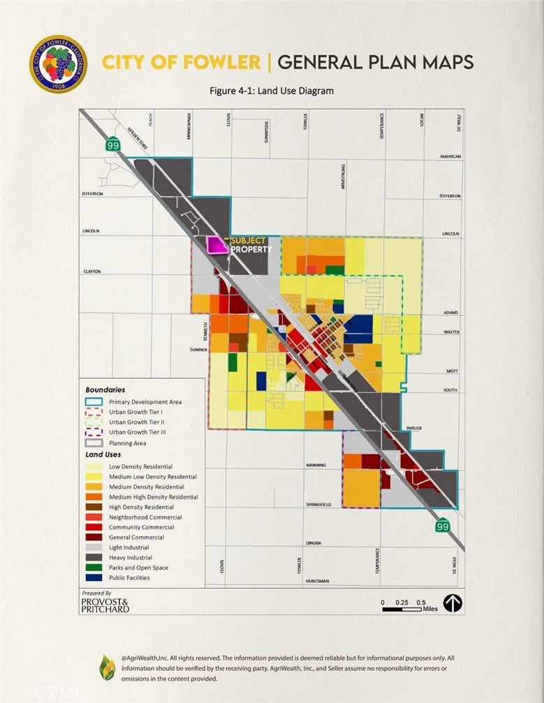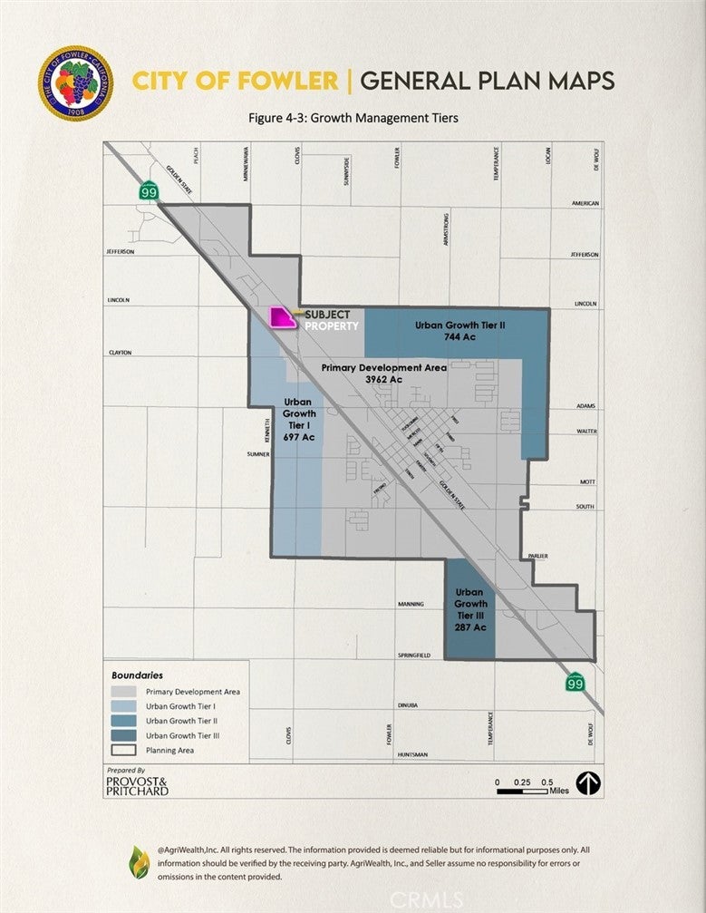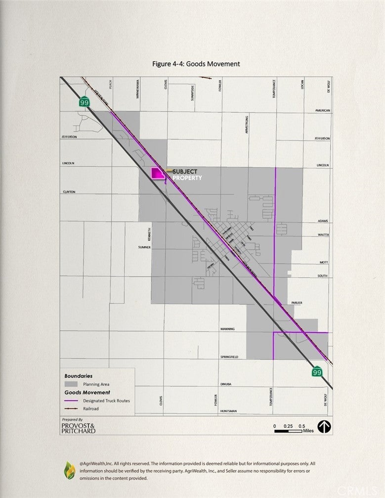 Discover an exceptional opportunity with this expansive 27.76 acre parcel of land, perfectly positioned adjacent to Golden State Boulevard with access to both Clovis Avenue and Hwy 99 north and south ramps. The property is located within a Federal Opportunity Zone. Not encumbered by the Williamson Act, the property allows maximum flexibility for future industrial or commercial uses. This property is strategically positioned within the Fowler sphere of influence, primary development area, and is adjacent to existing development. According the city of Fowler General Plan, the site is designated for heavy industrial use making it ideal for a range of industrial applications. PG& E supplies electricity to the parcel. The SFK sanitation sewer line runs along Golden State Blvd. There is a private water district which services businesses to the north of this parcel. City water line is to the south at Bonita. The property has surface water through Consolidated Irrigation District. There is an agricultural well and electric turbine pump ( not energized) on the property. The standing water level is around 100'. Minimal flood risk, above 500 yr. flood level.