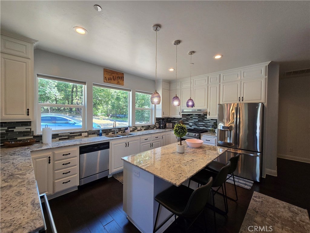 Welcome Home to Modern Mountain Living with STR Potential! Built in 2016 and tucked just steps from Bass Lake’s shoreline, this custom single-story home is one of the newest in the area—offering fresh design, prime location, and short-term rental eligibility in a high-demand market. Set on a corner lot near The Pines Resort and village market, the home features nearly 2,000 sq ft of open concept living with soaring ceilings, wide hallways, and natural light throughout. The kitchen is a true standout—complete with granite counters, a walk-in pantry, and a built-in wine bar with fridge—perfect for hosting or winding down after a day on the lake. The layout includes 3 spacious bedrooms and 2 spa-inspired baths. The primary suite offers a dual-head walk-in shower, soaking tub, and private water closet. Engineered wood floors add warmth and style throughout. Catch the sparkle of the lake from your front deck, then retreat to the back wood deck for sunset dinners, stargazing, and laid-back conversation. With a whole-house generator, tankless water heater, oversized garage, and a convenient boat slip access via nearby Brier Dock—this home is ready for comfort, adventure and income. Whether you're seeking a personal retreat, a high-performing STR, or both—this is where lifestyle and investment meet.