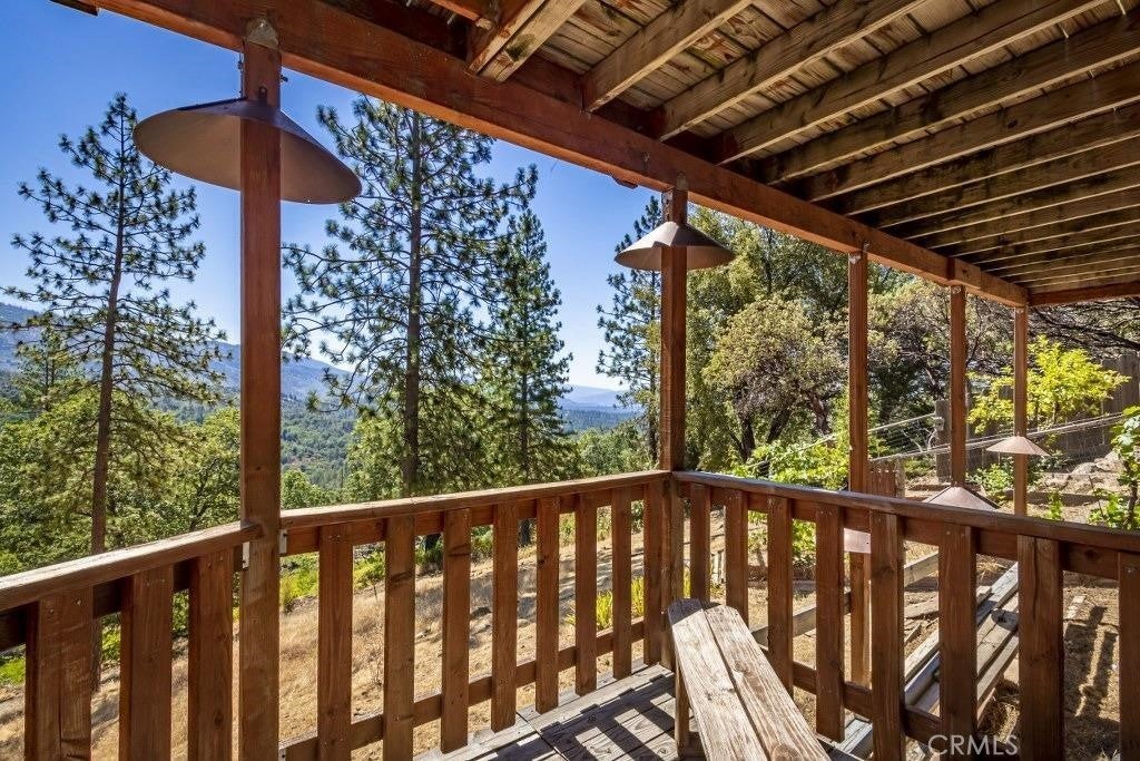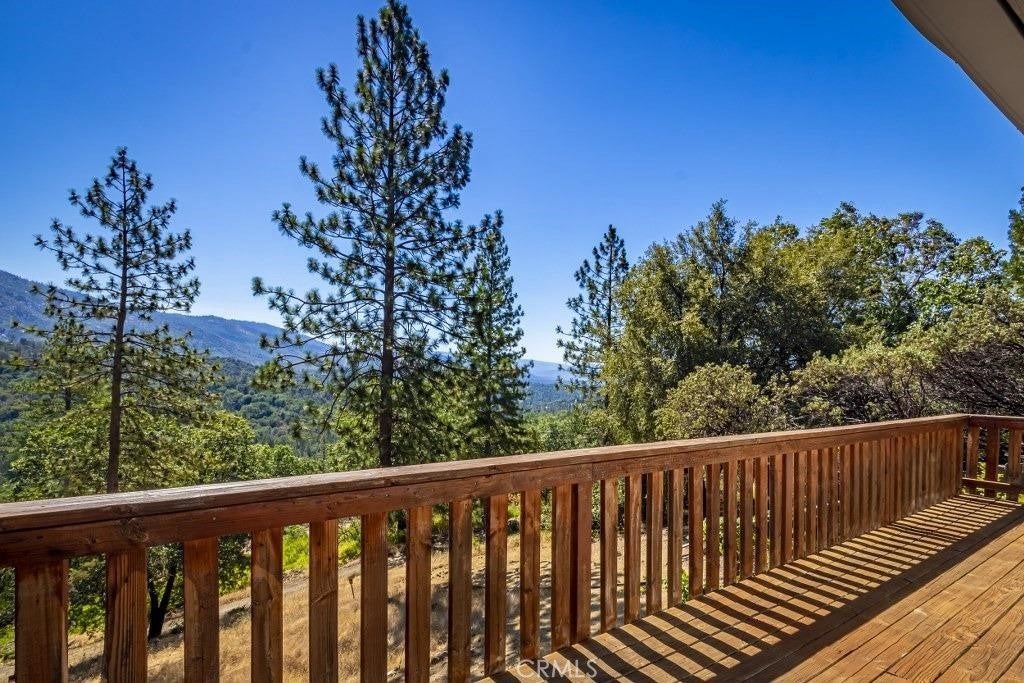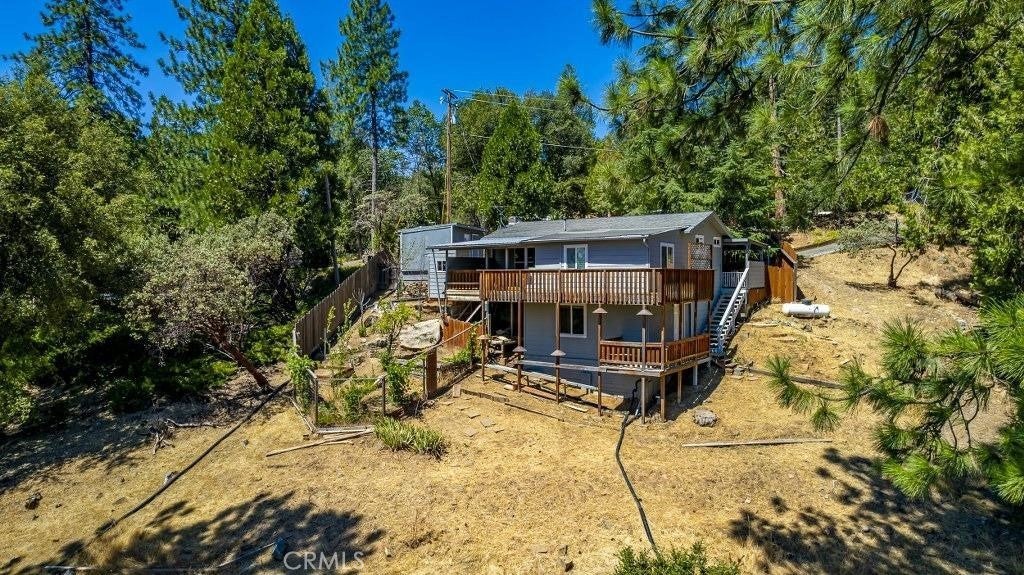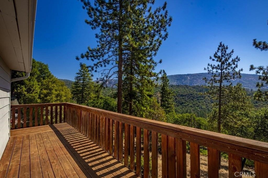 *GASP* Would you look at those views! Incredible unobstructed views of Peckinpah Ridge and Shuteye peak. Conveniently located just minutes to the Bass Lake boat launch, this home has been beautifully remodeled inside and out. Turn-key ready with newer plumbing, electrical, water heater, leach lines and interior remodel completed in 2021. Experience mountain cabin charm with all of the modern amenities one could desire. Enter to find laminate flooring throughout with vaulted open beam ceilings. In the kitchen you'll find updated butcher block counters and newer appliances. Two bedrooms, one upgraded bathroom and plenty of outdoor deck space ensures you have the space for entertaining or relaxing with the family. The uncovered upper and lower covered back decks perfectly frame the breathtaking views while the front covered patio is a great space for summer BBQ's. A stackable washer/dryer are conveniently located on the main level. Two storage sheds are available for storing your lake toys. Some furnishings may be negotiable outside of escrow. Schedule a showing today and start experiencing modern mountain living!