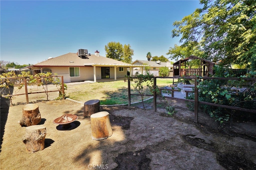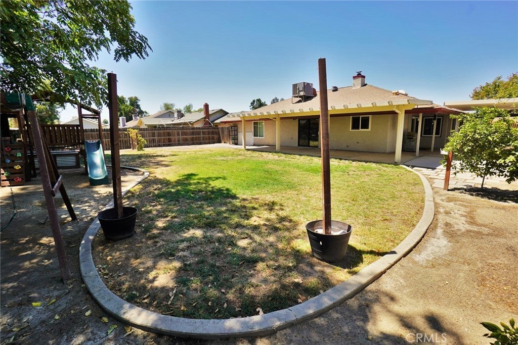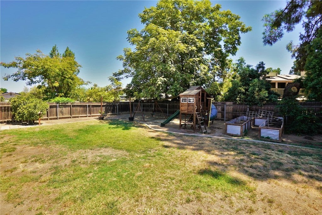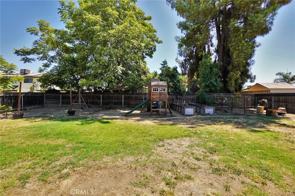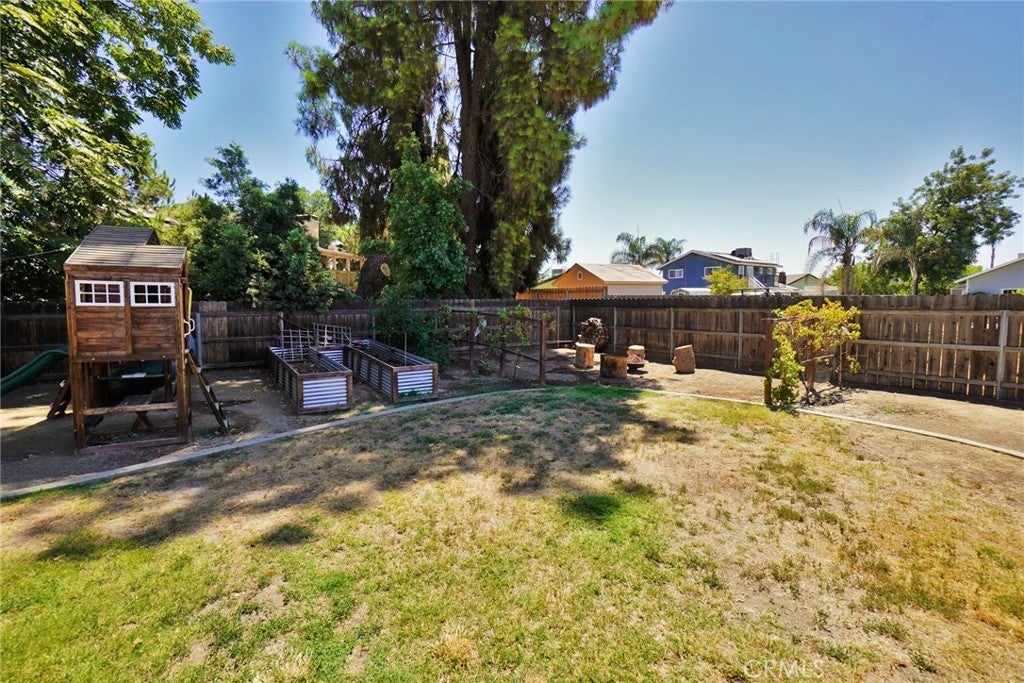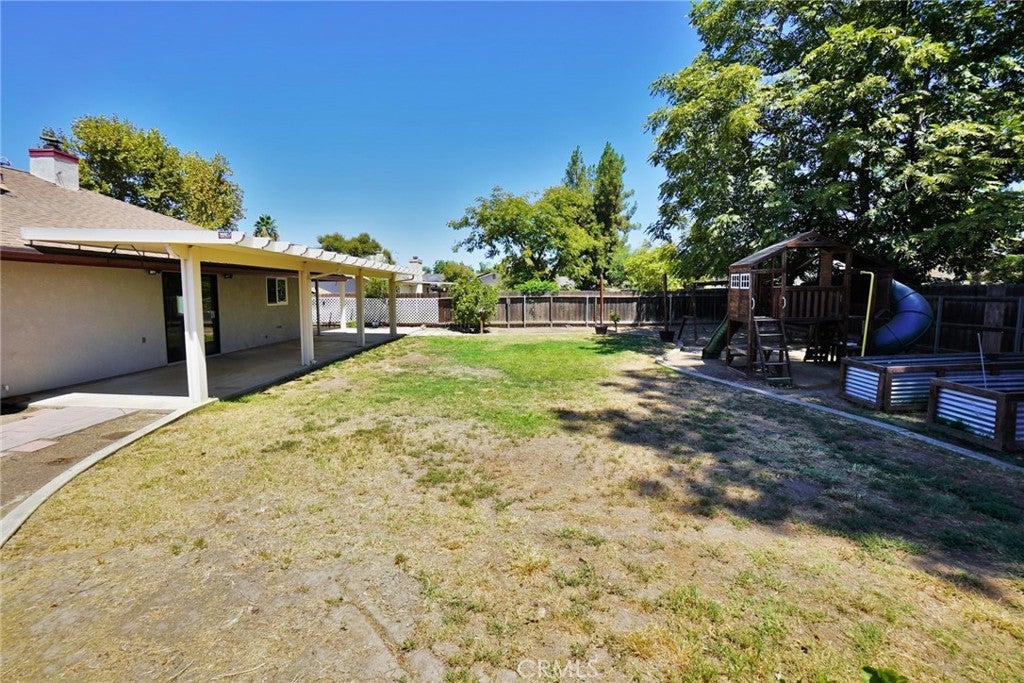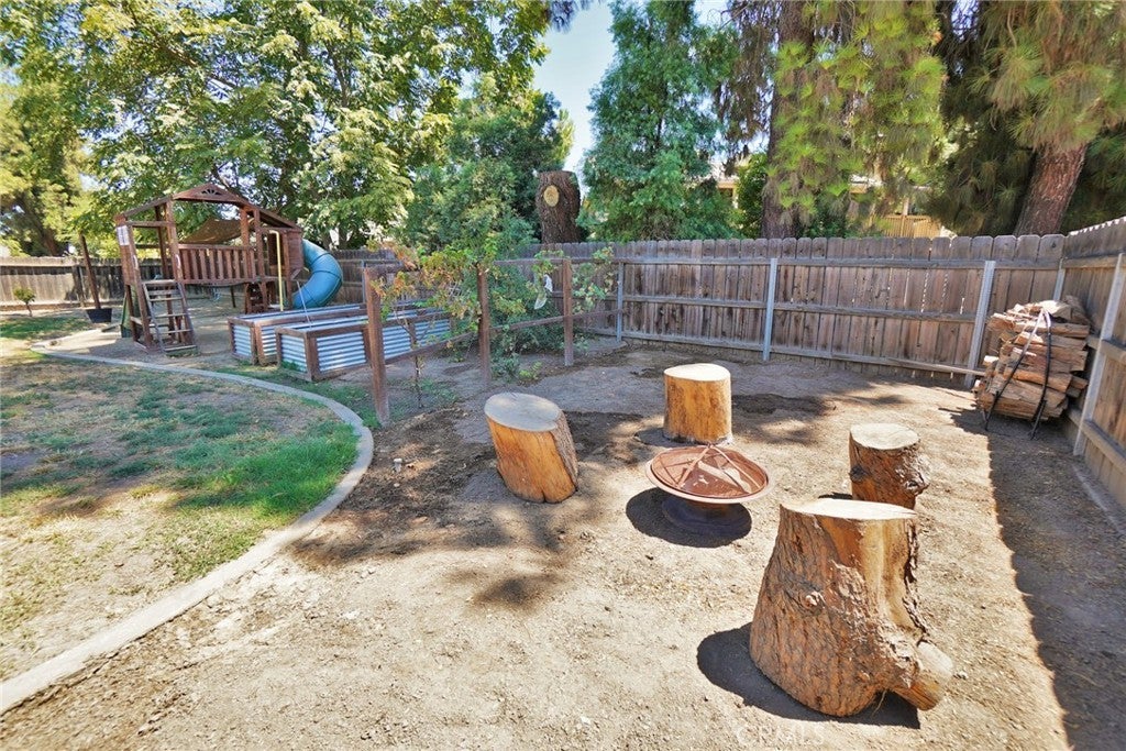 Nestled in a North Hanford neighborhood, on a culdesac this well maintained home with 1,973 s/f of comfortable living space on an impressive 11,180 sq ft lot is ready for a new owner. With 3 bedrooms and 2 bathrooms, this home blends functionality with warm character throughout. Step into the formal living room, complete with built-in features perfect for displaying books, art, or keepsakes. The large kitchen offers plenty of counter space, a breakfast bar, and a cozy nook ideal for morning coffee. Adjacent to the kitchen is a versatile dining/den area, featuring a wood-burning stove set on a classic brick platform—perfect for chilly winter days. Tiled floors flow throughout the home for easy maintenance, with cozy carpet in the bedrooms for added comfort. Outdoors, enjoy a wrap around covered patio with BBQ area, a playset for the kids, raised garden beds for your green thumb, and a handy storage shed—all within your private, oversized backyard. Schedule a tour today!