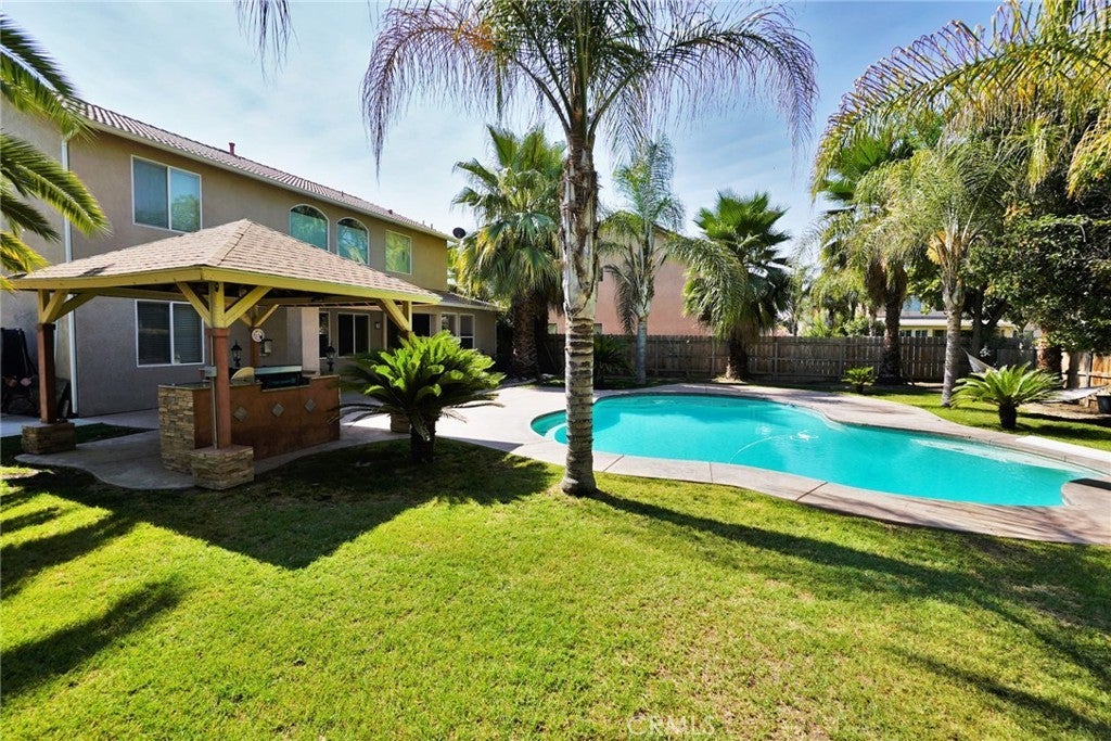Located just steps from the golf course in the desirable Lemoore Country Club Estates, this stunning 2-story home offers 2,694 sq ft of beautifully designed living space with 4 bedrooms, 3 full bathrooms, and an upstairs loft—perfect for a home office, game room, or second living area. The home features a formal living/dining room, a generous kitchen with a breakfast bar, nook, and abundant cabinetry, plus a cozy den with a fireplace. One bedroom and a full bath are conveniently located on the main level. Step outside to your own private oasis with a sparkling swimming pool, built-in BBQ gazebo with granite countertops, sink, and plenty of space for outdoor dining and entertaining. Potential RV parking and a 3-car garage, give you room for all your toys and tools. Near major highways for easy commuting throughout the Central Valley, this home combines location, size, and amenities for a lifestyle of comfort and convenience. Put this home at the top of your list. It won’t last long!