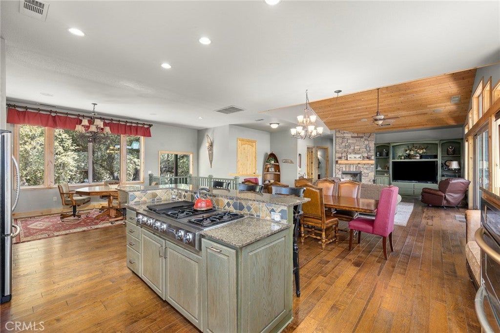 PRICE REDUCED $100,000 on this elegant, custom home in the highly desirable Bass Lake Estates neighborhood. Terrific lake views from nearly every room, & 180 degree views from the wraparound deck. Paved, year round access to the oversized .89 acre parcel, covered in mature oak trees and a lovely rock formation just outside the rear windows. The kitchen features stainless steel appliances including a Jenn-Air stovetop, KitchenAid oven and microwave, and a handy built-in ice maker. The double stainless steel kitchen sink offers panoramic lake views. The spacious living area offers a woodburning fireplace for cooler evenings, knotty pine vaulted ceiling, and sliding glass door access to the outside living space, where you may relax to cooling lake breezes, convenient propane piped BBQ, and propane fire pit. After a day on the lake, each of the 6 bedrooms provides immediate access to either a private bathroom or Jack & Jill bath, each with a step-in shower. The primary suite has a private balcony, dual walk-in closets, step-in shower, and "jetted tub with a lake view". Central heat and dual zoned AC create year round comfort, and the home is conveniently hooked up to Campora propane, the Bass Lake Water Company, and Madera County sewer systems. This truly remarkable home is priced at a much lower price per square foot than other Bass Lake offerings, and is a successful short term rental property. Make this lovely home your own, and by next July 4th you'll be viewing the famous fireworks from your front deck!