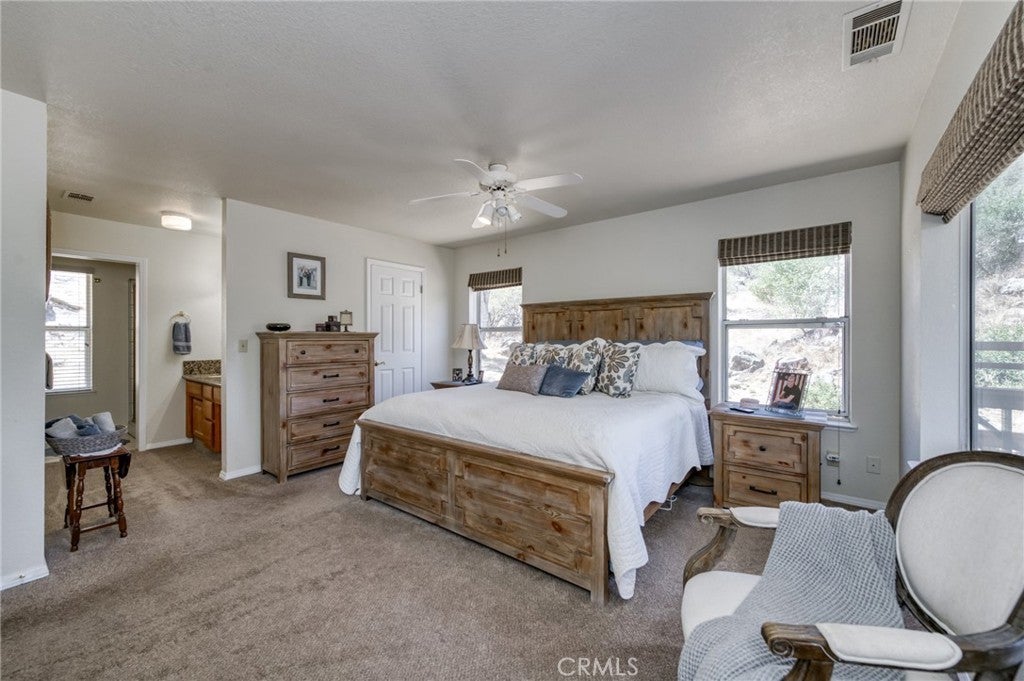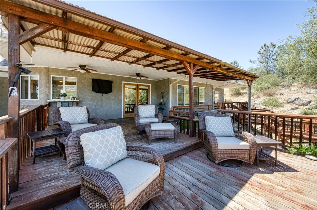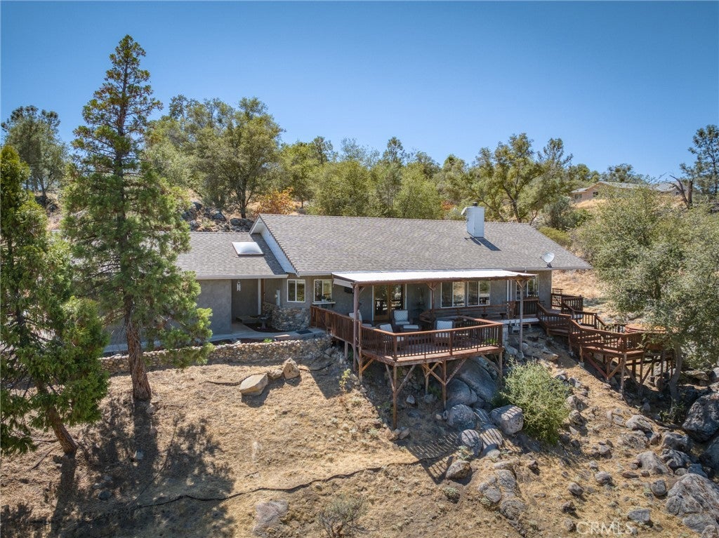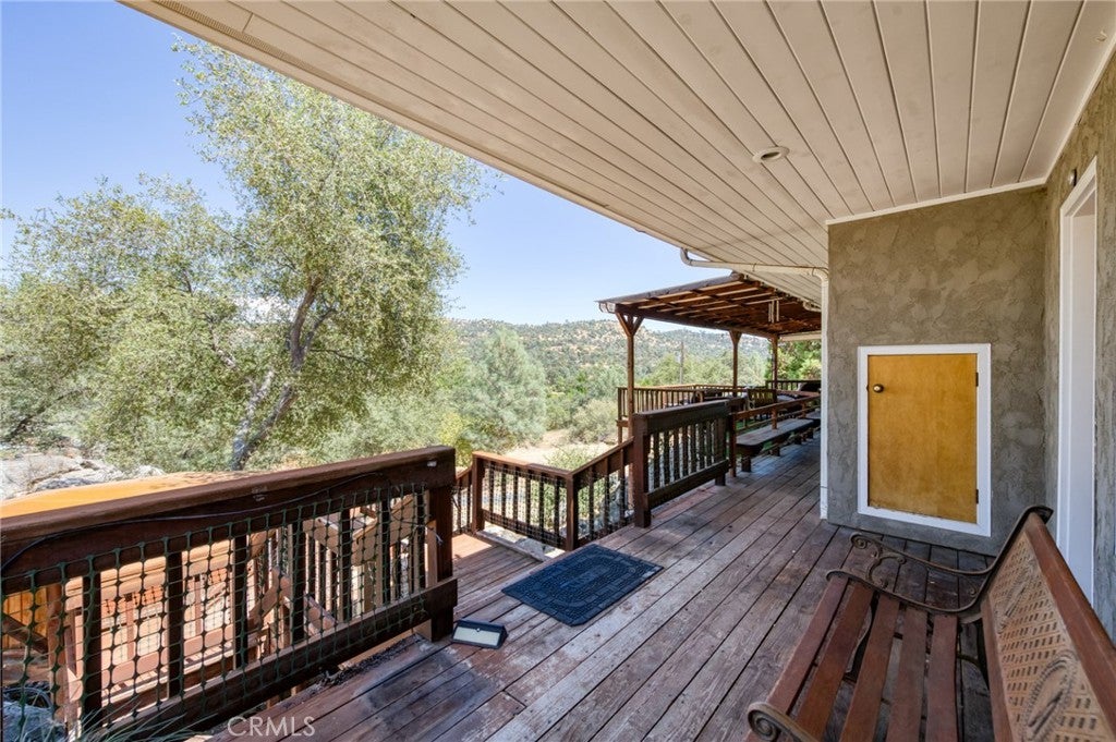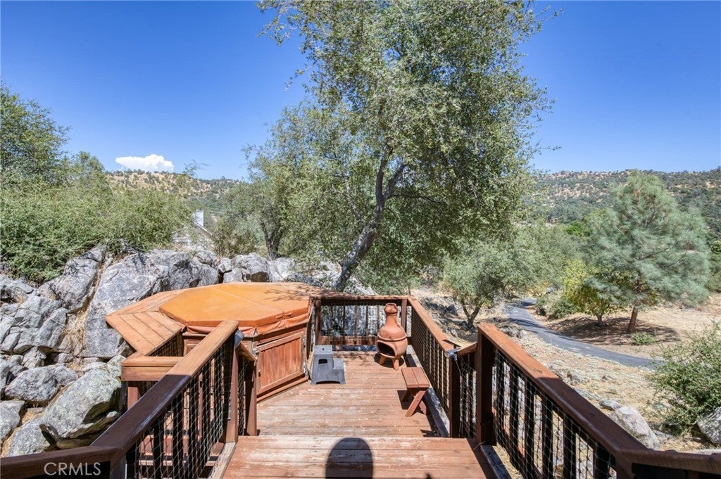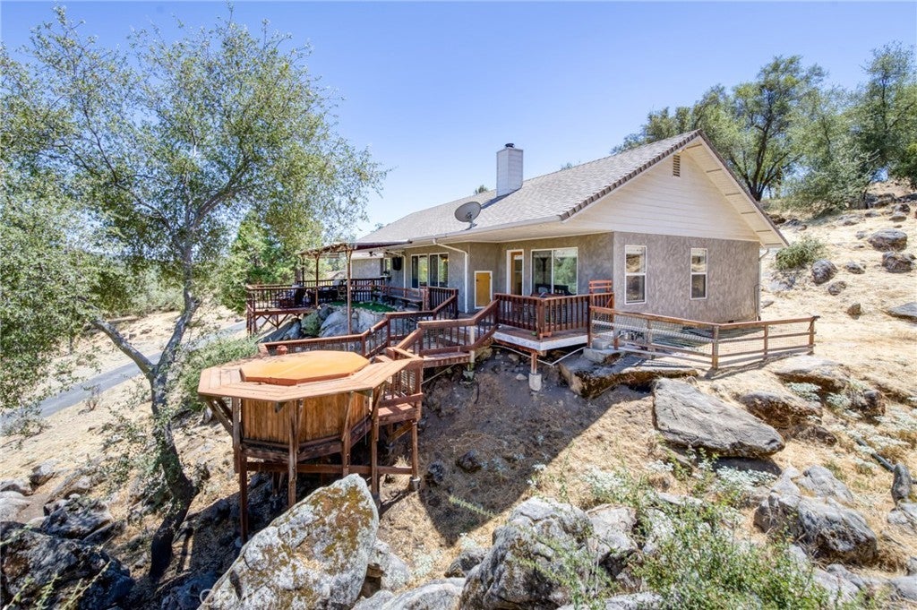 If you've ever dreamed of leaving the noise behind and trading it for big skies, starry nights, and peaceful mornings with panoramic views, this is the place. With views of the golf course in the rolling foothills of Coarsegold, this thoughtfully crafted retreat is everything you didn't know you were missing. From the moment you turn down the drive, you feel it - the stillness, the privacy, the natural beauty that surrounds you. Soaring knotty pine ceilings and picture windows flood the interior with light while framing endless views of the fairway, native trees, and golden hills beyond. Whether you're sipping coffee on the wraparound deck, unwinding in the tucked-away spa, or sharing a bottle of wine beneath the stars, this home is your personal sanctuary. With dual access to the deck and an isolated primary suite, you'll enjoy privacy when you want it, and the perfect flow for entertaining when you don't. The peaceful location is more than scenic. The hillside behind the home shields you from harsh sunlight, creating cooler afternoons and unforgettable sunsets. And when night falls? The sky comes alive with stars and quiet beauty. Plus, living here means access to Yosemite Lakes Park's sought-after amenities - golf, equestrian center, tennis courts, walking trail around the lake, cafe across the street, and more. Every day can feel like a getaway. Whether you're seeking a full-time home or a foothill escape, this is where you go to breathe, to reconnect, and to truly live.