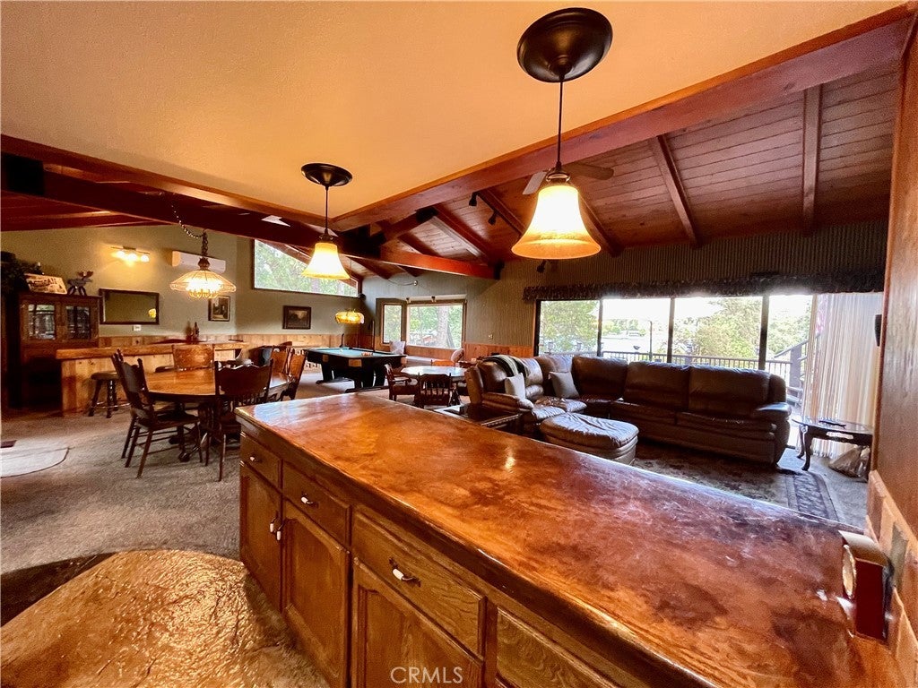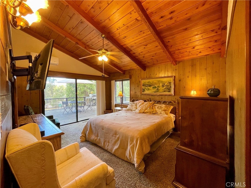 Wonderful Bass Lake Cabin with lake views and boat slip across the street at Acorn Dock! This home is a vacation rental and has real lake-mountain charm! Great room has rock fireplace (gas), wood beam trusses, show board ceilings, wood slab wet bar, pool table area, kitchen area has breakfast bar, huge lake view deck for bbq's & outdoor entertainment! Master bedroom and one of the guest rooms has deck access with lake views! House has well distributed mini-splits for comfort! The garage is super sized with shop area! There is also an easement to the back of the property with room to park the boat! Just down the street from The Pines Village and 30 minutes north to the 41 entrance to Yosemite National Park entrance and 30 minutes south to Chukchansi Gold Resort & Casino. Most furnishings included. Make your appointment to see this one now!