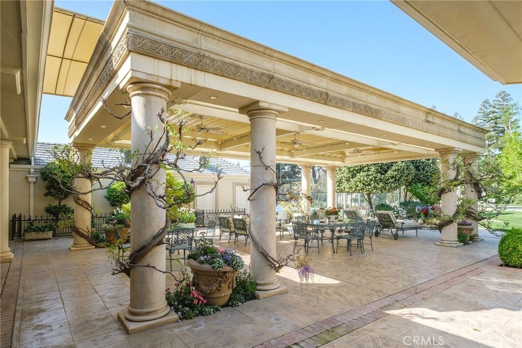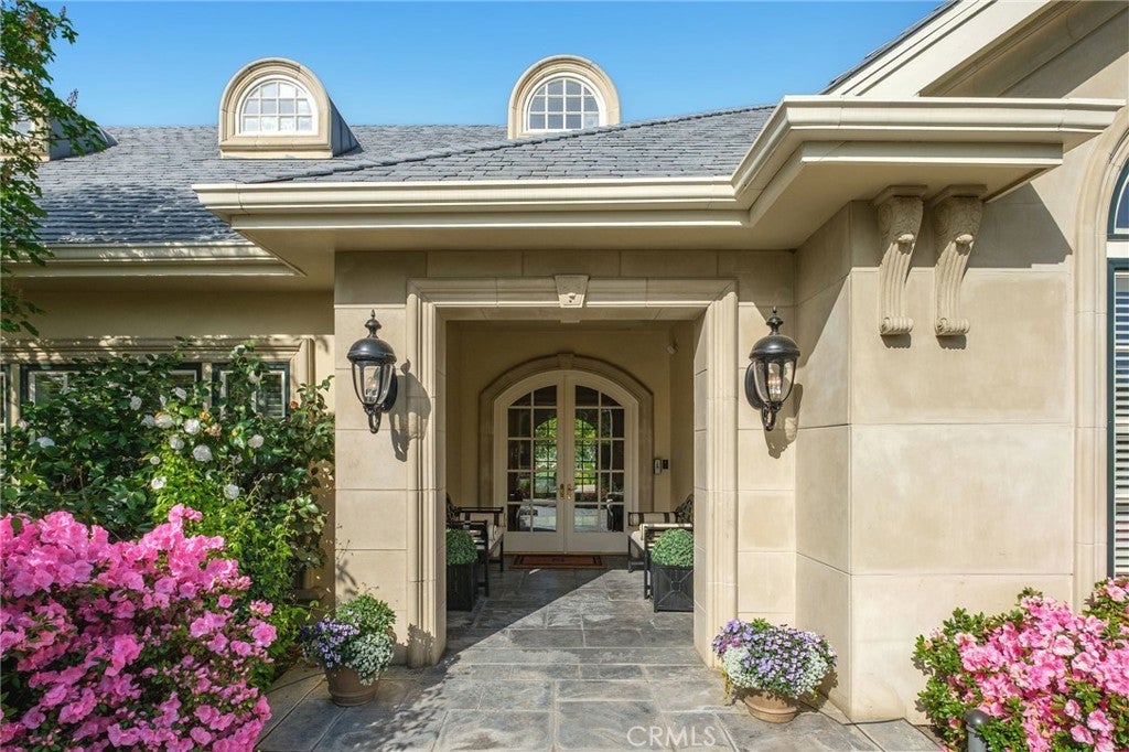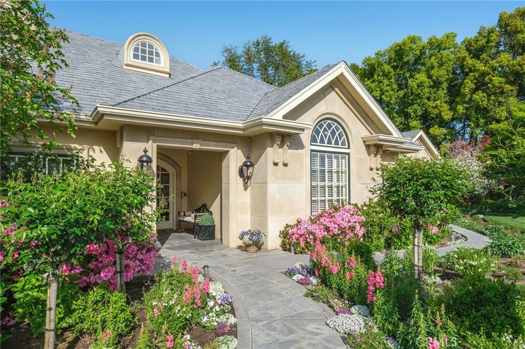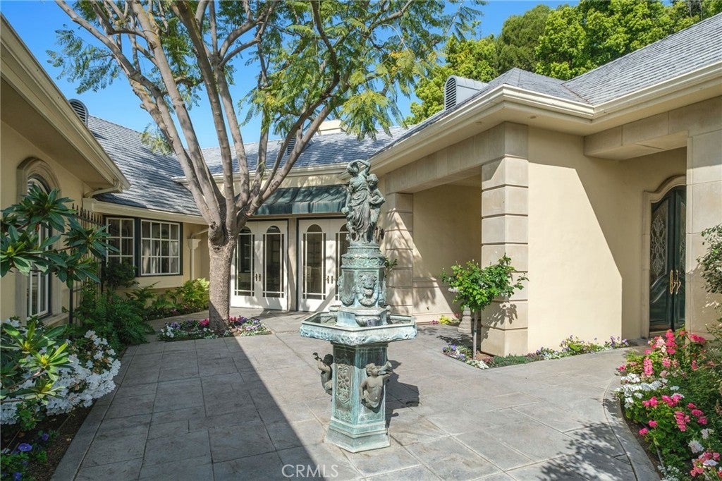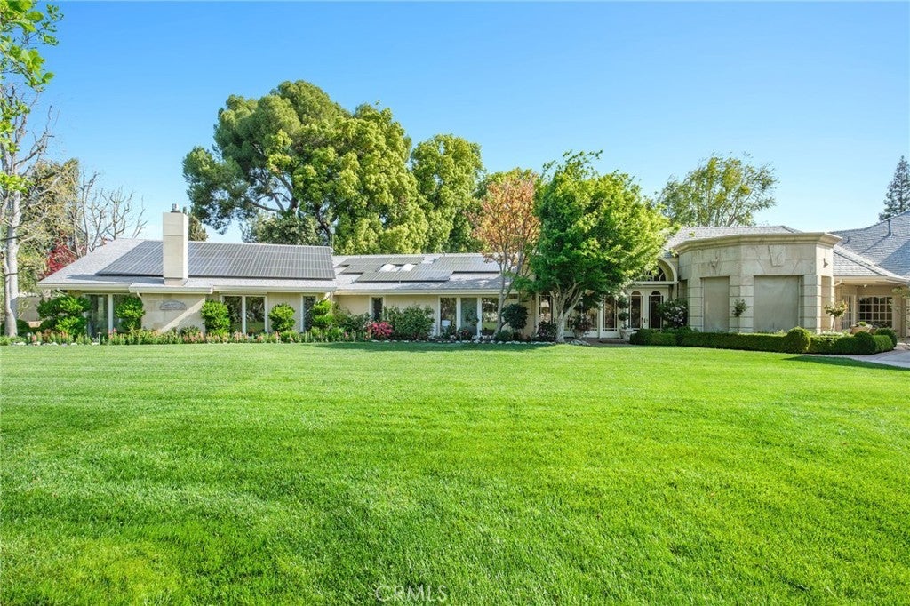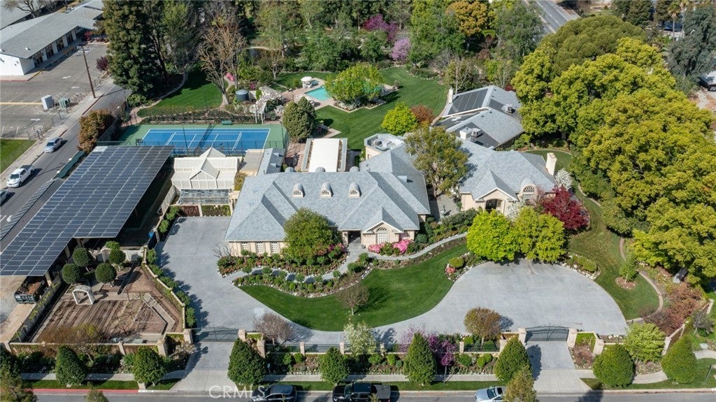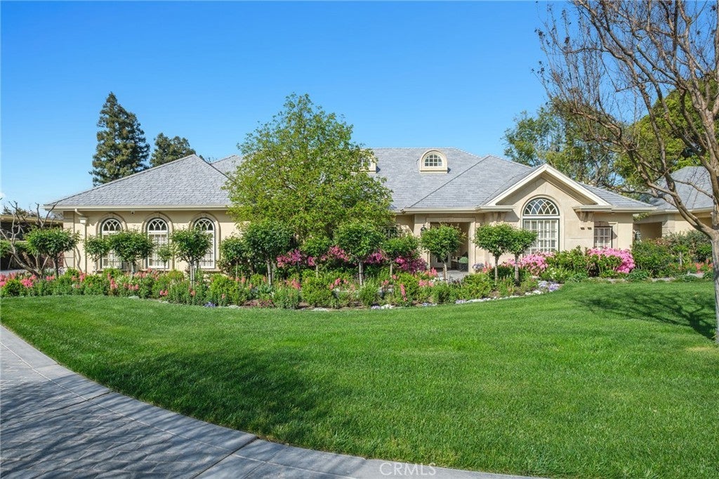 This French Inspired Traditional Home, offering five bedrooms and six and one half bathrooms is situated on a 3 acre parcel in North West Fresno, and is truly a One-of-a-Kind property. It has been transformed over the years to what is today a peaceful and luxurious 9258sf estate, featuring the finest of quality and workmanship. It allows for living and entertaining in an atmosphere surrounded by meticulously maintained lushly landscaped grounds, filled with beautiful roses, various annuals and perennials, mature trees, expansive lawns, koi pond, tennis court, batting cage, greenhouse, vegetable garden, and a sparkling swimming pool. The elegant interior boasts vaulted and coffered ceilings, elegant wood moldings, marble flooring, wood wainscotting, arched wood windows, chandeliers, and too many amenities to mention. The spacious rooms include a grand formal living room, spacious formal dining room, family room, office, a chef's kitchen with center island, informal dining area and walk-in pantry, game room, wet bars, sunroom, and a powder room.The bedroom wing includes an elegant primary suite featuring a fireplace, an abundance of windows, dressing area, and a beautifully appointed en-suite bath. Three additional bedrooms. 2 offer en-suite bathrooms. A den and a hall bath complete this wing. The fifth bedroom with 1/2 bath is isolated and is situated near the game room. Other amenities include a three car garage, slate roof, owned solar and a gardeners maintenance yard.