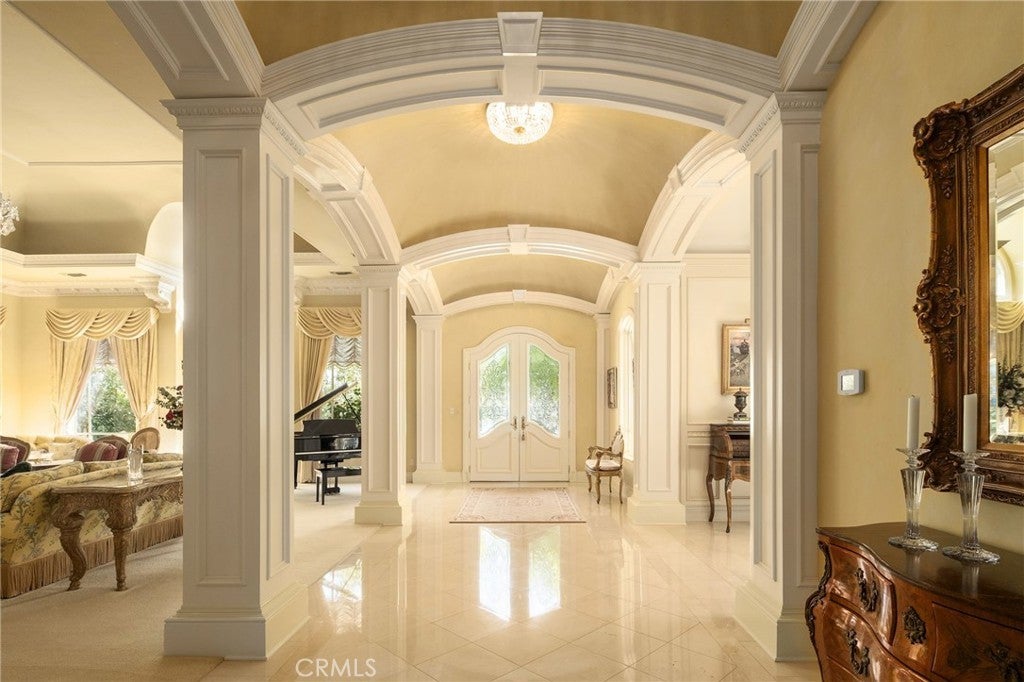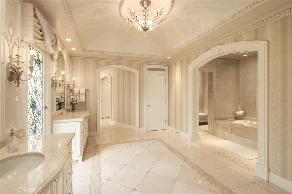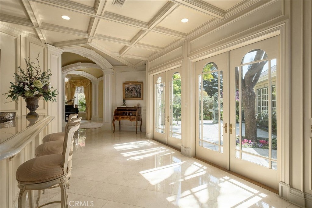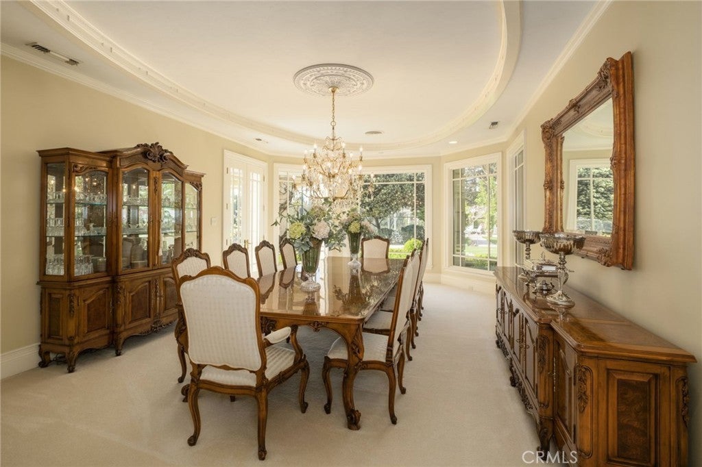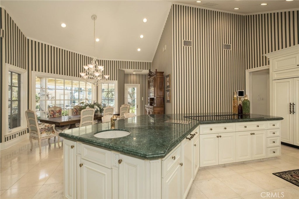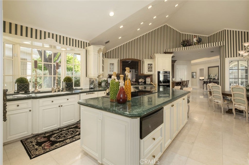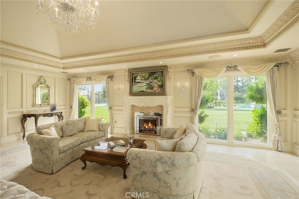 This French Inspired Traditional Home, offering five bedrooms and six and one half bathrooms is situated on a 3 acre parcel in North West Fresno, and is truly a One-of-a-Kind property. It has been transformed over the years to what is today a peaceful and luxurious 9258sf estate, featuring the finest of quality and workmanship. It allows for living and entertaining in an atmosphere surrounded by meticulously maintained lushly landscaped grounds, filled with beautiful roses, various annuals and perennials, mature trees, expansive lawns, koi pond, tennis court, batting cage, greenhouse, vegetable garden, and a sparkling swimming pool. The elegant interior boasts vaulted and coffered ceilings, elegant wood moldings, marble flooring, wood wainscotting, arched wood windows, chandeliers, and too many amenities to mention. The spacious rooms include a grand formal living room, spacious formal dining room, family room, office, a chef's kitchen with center island, informal dining area and walk-in pantry, game room, wet bars, sunroom, and a powder room.The bedroom wing includes an elegant primary suite featuring a fireplace, an abundance of windows, dressing area, and a beautifully appointed en-suite bath. Three additional bedrooms. 2 offer en-suite bathrooms. A den and a hall bath complete this wing. The fifth bedroom with 1/2 bath is isolated and is situated near the game room. Other amenities include a three car garage, slate roof, owned solar and a gardeners maintenance yard.