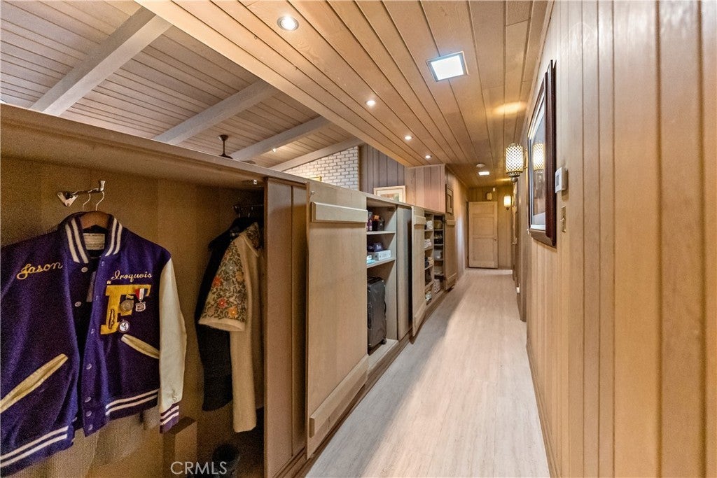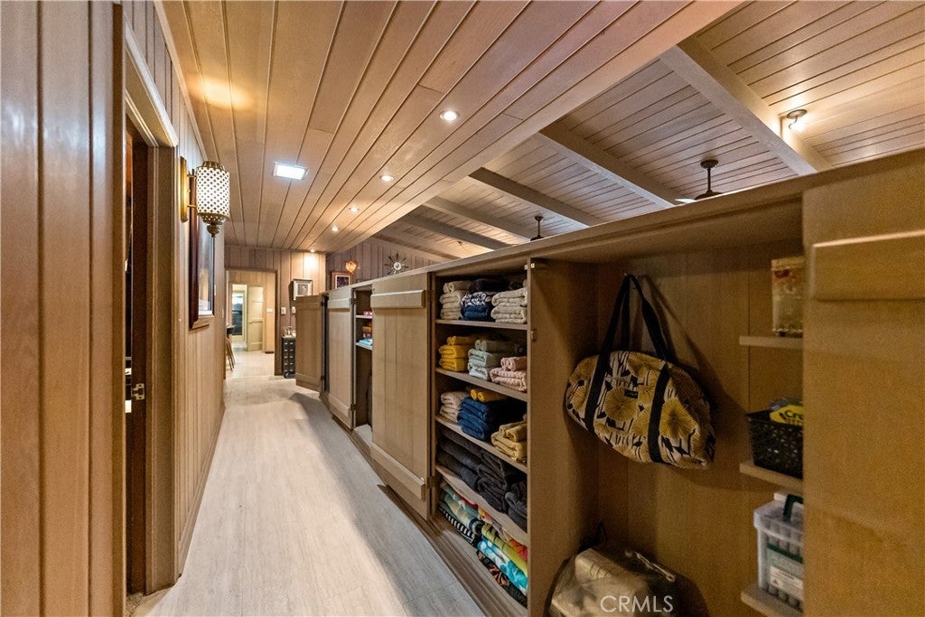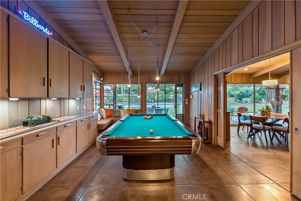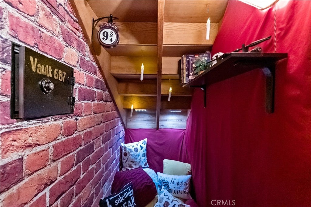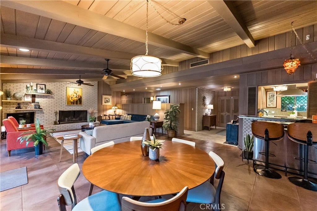 Breakfast Bar, Ceiling Fan(s), Separate/Formal Dining Room, High Ceilings, In-Law Floorplan, Open Floorplan, Recessed Lighting, Storage, Wired for Data, Bar, Beamed Ceilings, Breakfast Area, Brick Walls, Built-in Features, Pantry, Pull Down Attic Stairs, Quartz Counters, Tandem, Track Lighting, Wet Bar, Wood Product Walls