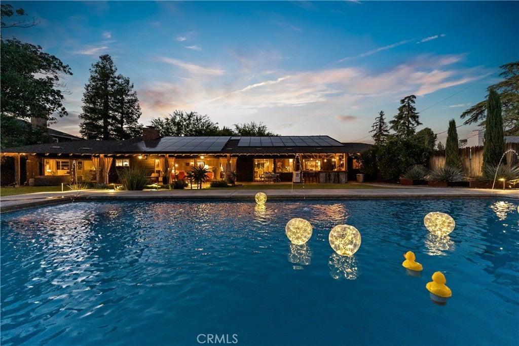 Step into timeless mid-century elegance with this 1954 Taylor Wheeler-designed residence, located in the Fresno High Historic District. Offering 3,155 sq. ft. of living space on an expansive double lot, this 4-bedroom, 4-bath masterpiece perfectly blends architectural distinction with modern comfort. Each bedroom boasts its own en-suite bath, while the rare finished basement provides endless versatility - ideal as a media retreat, playroom, or creative studio. Inside, clear white fir tongue-and-groove millwork showcases the home's craftsmanship, complemented by abundant built-ins and exceptional storage seldom found in homes of this era. A car enthusiast's dream, the tandem 4-car garage boasts three front entries, a rear garage door, breezeway access to the backyard, and two dedicated workshop/storage areas. Outdoors, the entertainer's backyard features a sparkling pool with fountains, lush landscaping, and a built-in barbecue with bar - perfect for gatherings large or small. Sustainability meets savings with 55 solar panels, significantly reducing energy costs.. Beyond energy efficiency, this home offers peace of mind with a recently completed pest clearance. Paired with its generous double parcel, architectural pedigree, and exceptional blend of authenticity and comfort, this residence is a rare opportunity to own a true mid-century gem in one of Fresno's most distinguished neighborhoods.