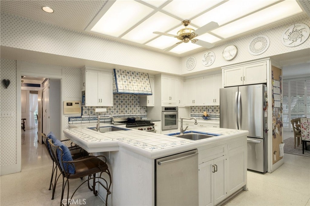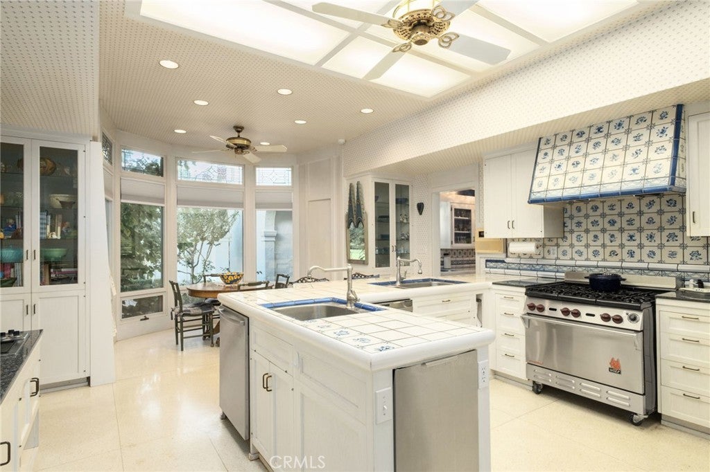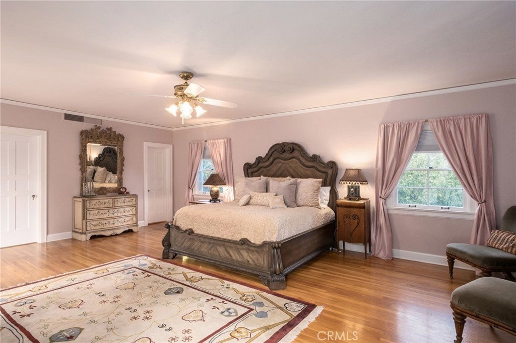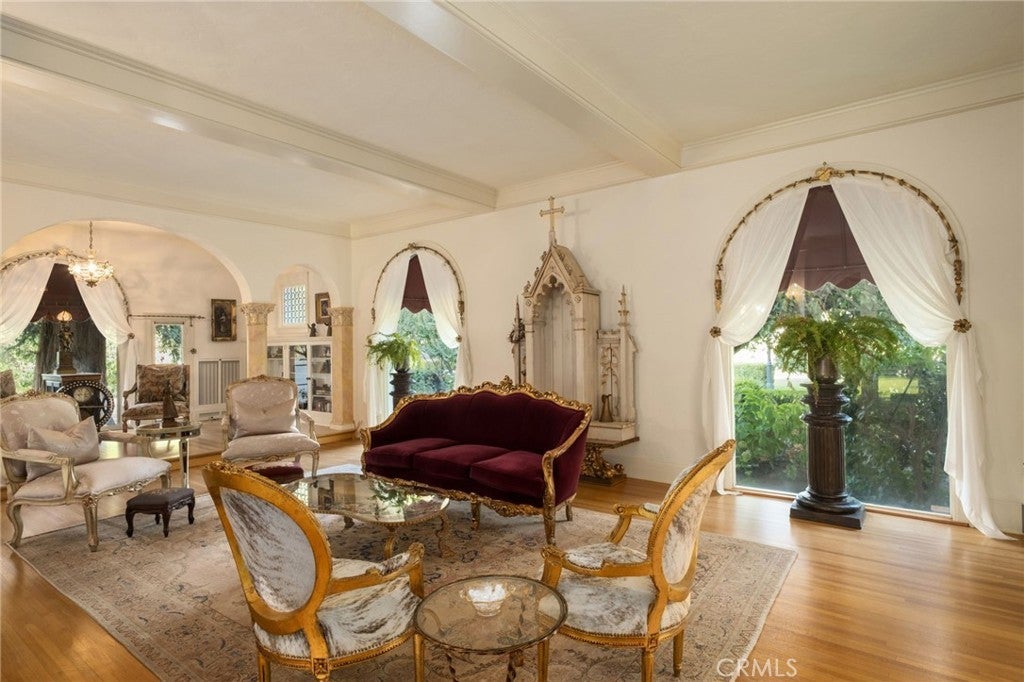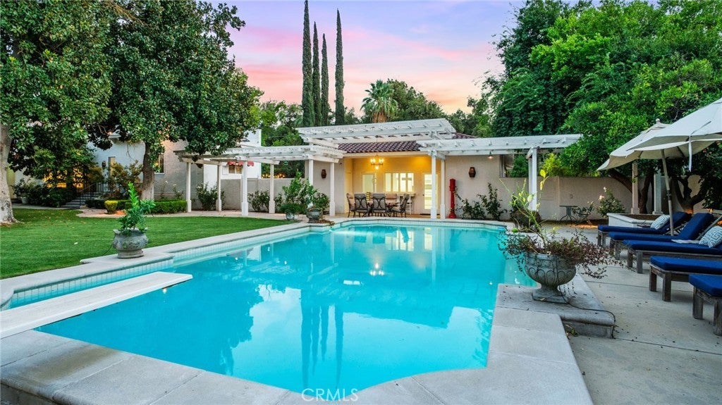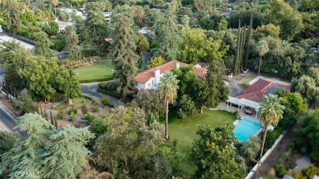 This 1928 Sunset Boulevard Mediterranean Revival residence, situated on a 1.76 acre lot on Christmas Tree Lane in Old Fig Garden, was designed by renowned architect Rafael Lake for the Bernhauer family. As President of the then Fresno Planing Mill Co., Mr. Bernhauer infused his vision and craftsmanship into every detail of this home, which includes Mahogany millwork archways, coffered ceilings and so much more. As you enter thru the Arch Top Mahogany Double Doors, you are greeted by a Grand Foyer and a beautiful curved staircase. To the right is the Spacious Formal Living Room offering a stunning Fireplace, an adjacent elevated sitting space, and to complete this wing of the home, an Isolated Bedroom w/En-Suite Bath. To the left of the Foyer is the grand Formal Dining Room, boasting a Curved Bay Window that floods the room with natural light and can accommodate a large gathering of family and friends. Two Butler Pantries, both with sinks and an abundance of counter space, expand on the spacious Kitchen space for entertaining. A second staircase to the upstairs is situated between the two Butler Pantries, as well as the stairs to the basement which boasts a beautiful Wine Room. The Chef's Kitchen features Exquisite Portuguese Tiles, Wolf Range, Wall Oven, Built-in Refrigerator, Built-in Griddle, Informal Dining Area, and a Pantry. A lovely Studio/Family room is located adjacent to the Kitchen and offers a Fireplace and a wall of Shuttered Windows, which makes it a perfect room for relaxation. The over-sized Laundry Room featuring a Sink, ample Counter Space, Washer/Dryer and a Freezer, plus another Spacious Isolated Bedroom with adjacent Bath complete this section of the home. The Upstairs features the Primary Bedroom with an En-suite Bath, Dressing Area, walk-in Closet and access to a Balcony which views the rear garden. Bedroom # 4 views the front garden, Bedroom #5 features an En-Suite Bath, and Bedroom #6 and #7 which share a Jack-n-Jill Bath complete the Upstairs The Guest House is just steps away from the house and features a Spacious Bedroom, Kitchen with Dining Area, a Shower Bath, plus a storage room, and offers views of the Sparkling Swimming Pool and beautiful Grounds. Other Amenities include a 4+ Car Garage, Tile Roof, on most of the home, Owned Solar, 4 HVAC Units, Potential RV Parking. Completely Fenced Property offering Mature Landscaping. Do not miss the opportunity to make this special property your new home! Call for your private showing.