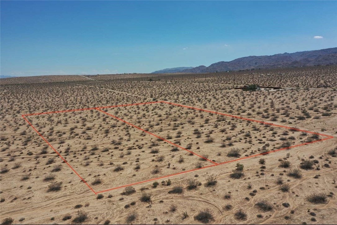 scape to wide-open skies on Pearl Spring Avenue. These TWO 2.5 parcels are together to offer a 5-acre parcel in San Bernardino County. It sits on the quiet northwest edge of Twentynine Palms, with sweeping desert vistas by day and brilliant stargazing at night. Joshua Tree National Park is close by, and downtown Twentynine Palms is a short drive for dining, shopping, and everyday needs. The setting is peaceful and low-density, yet convenient—ideal for a compact cabin, an architect-designed compound, or a distinctive off-grid retreat. It also offers easy access to the Marine Corps Air Ground Combat Center’s main gate. If you’re seeking a blank canvas to create your own desert haven—or a smart land investment—this property checks every box.