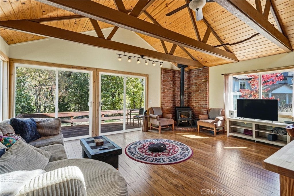 Discover a truly special mountain retreat just minutes from Bass Lake, Yosemite National Park, and an easy commute to Fresno shopping and dining. This serene property offers two beautiful homes plus a dedicated yoga and wellness studio, perfect for those seeking a peaceful lifestyle or an inspiring retreat space. The main home, a custom-built 3,000 sq. ft. residence, features 4 bedrooms and 2 1/2 baths. Thoughtfully designed with artistic flair, it includes an art studio and a music studio, ideal for creativity and self-expression. Enjoy the mountain scenery from multiple decks and covered porches, or gather around the stunning rock fireplace for cozy evenings. The second home is a spacious 1,700 s. ft. 3 bedroom, 2 bath residence, perfect for guests, extended family, or retreat participants. Step outside to a sacred fire circle, a meaningful space for gatherings and fire ceremonies. The property also includes an infrared sauna and a peaceful yoga retreat area, creating an environment of rejuvenation and balance. With solar power to be paid off at close of escrow, this property blends sustainability with comfort and inspiration. A rare opportunity to live, create, and share a lifestyle centered around art, nature and wellness--all in the heart of California's Sierra foothills.