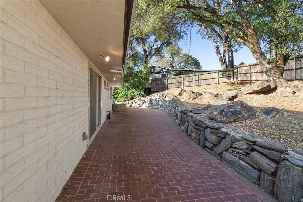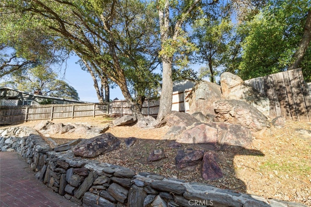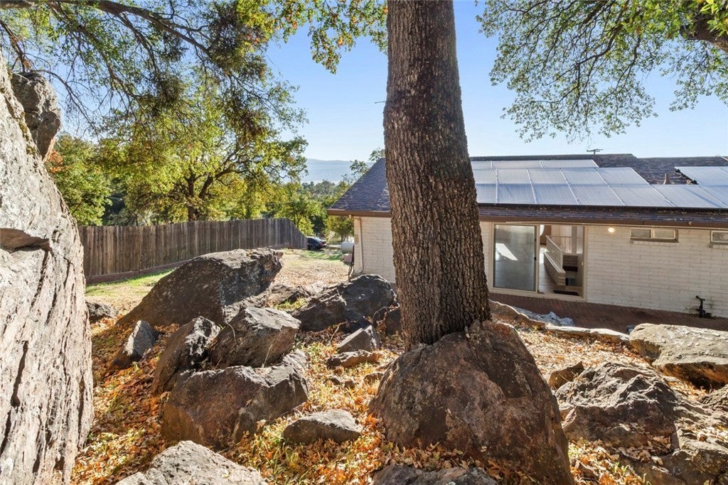 Perched among mature oaks and custom stonework, this beautiful two-story home blends mid-century charm with modern updates and versatile living spaces. This unique home showcases thoughtful craftsmanship and unique architectural details that set it apart from anything else you've seen. Upstairs, you'll find a bright, inviting living space with large picture windows that flood the home with natural light. The open layout connects the living room, dining area, and kitchen seamlessly, creating a perfect environment for gathering and entertaining. The living area features fresh paint, warm flooring, and hillside views, while the kitchen boasts updated counters, freshly refinished cabinetry, and a large window that overlooks the oak-filled backyard. Down the hall, two spacious bedrooms feature generous proportions and beautiful natural light, with peaceful views of the property's natural landscaping. The hallway bathroom has been recently remodeled with a new tub and shower surround, new fixtures, and modern lighting for a clean, bright feel. The primary suite offers ample room, dual windows for light and air, and a freshly remodeled en-suite bathroom complete with a new vanity, new shower surround, and tasteful finishes. Downstairs, a completely separate living area provides incredible versatility. This studio-style space features a huge living area anchored by a custom fireplace, sleek concrete floors, fresh paint with accent wall, and new lighting throughout. The attached kitchenette and full bathroom make it ideal for multi-generational living, a private guest suite, or potential rental income - a perfect opportunity for flexibility and independence. Outside, the backyard is an absolute showpiece - a one-of-a-kind combination of artistry and nature. Handcrafted local stone retaining walls, large brick patios, and massive decorative boulders weave together into a tranquil, low-maintenance landscape under the shade of mature oak trees. It's the kind of outdoor space that feels timeless, peaceful, and truly connected to its surroundings. Additional highlights include a two-car garage, solar energy system for efficiency and savings, and a location in one of the most desirable pockets of the foothills - where privacy, craftsmanship, and character converge. Welcome Home!!!