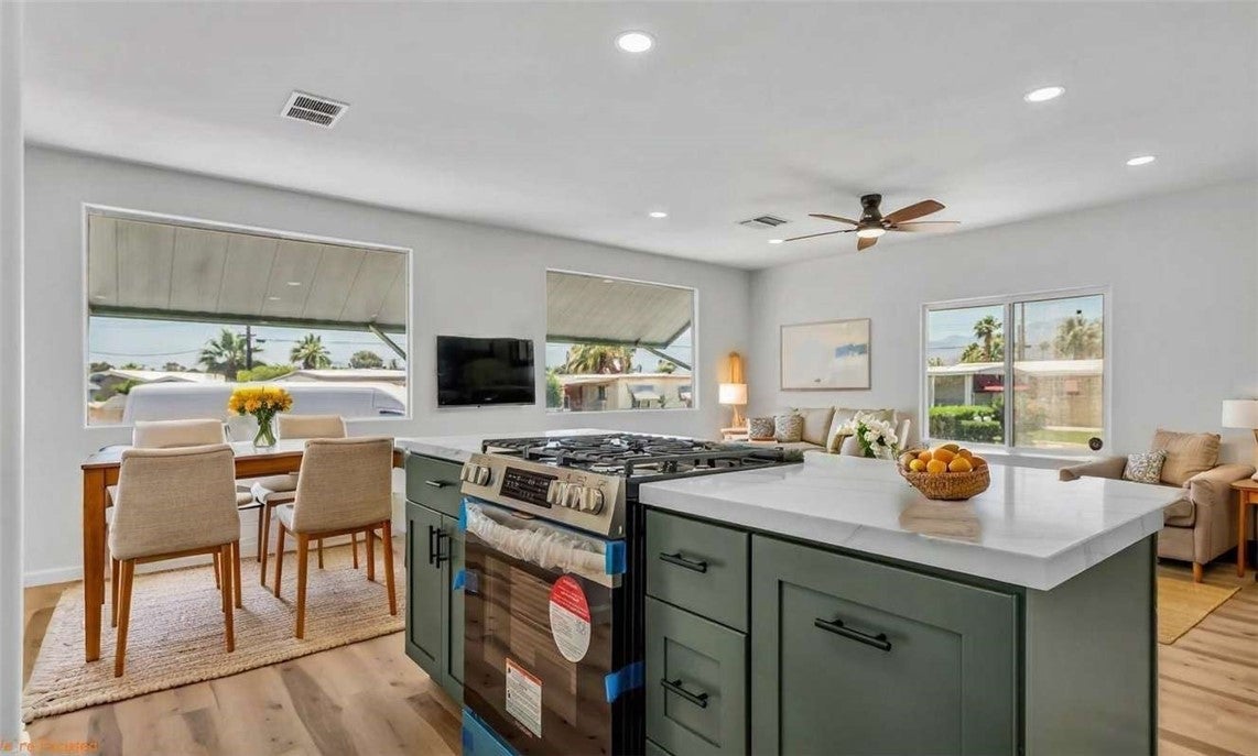 This completely turn-key residence has been thoughtfully updated from top to bottom. Including new subflooring, completely brand new drywalls throughout with insulation for improved energy efficiency and comfort, brand new PEX plumbing, new water heater, new roof treatment and all-new appliances. This stunning, fully remodeled home in Tri Palm Estates offers modern living at its finest, all set against a breathtaking backdrop of mountain views. The interior features contemporary finishes throughout, including brand new stylish quartz countertops, new bathrooms, and brand new luxury flooring, creating a clean, elegant aesthetic, also include double-pane windows. Upon entry, you're welcomed into a bright, open-concept living room and kitchen area filled with natural light. The open kitchen is offering sleek quartz surfaces, a full suite of appliances, and a convenient pantry. The spacious primary bedroom includes a private ensuite bathroom, while a second full bath serves guests comfortably. Additional features a dedicated laundry closet with washer and dryer hookups, and a freshly painted exterior and interior. The backyard is a private retreat with ample space for outdoor seating—perfect for enjoying morning coffee or evening relaxation with views of the nearby mountains. A large, air-conditioned shed provides plenty of extra storage space, adding even more functionality to the property. Located in the highly desirable 55+ community of Tri Palm Estates, this home comes with the added benefit of land ownership—no land lease—and a low HOA of just $215 per month. The community offers an unbeatable lifestyle, including unlimited free golf for two deeded owners on both the 18-hole Executive course and 9-hole Par 3 course. Residents also enjoy access to pools, spas, tennis courts, a clubhouse, and on-site restaurants. Conveniently situated near Costco, Sam’s Club, Home Depot, Walmart, Lowe’s, local theaters, fine dining, and freeway access, this home offers both luxury and convenience. Truly, it is a move-in ready gem in one of the area’s most sought-after active adult communities.