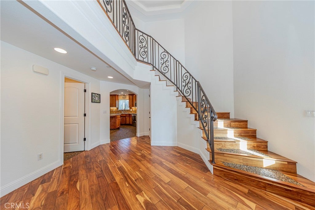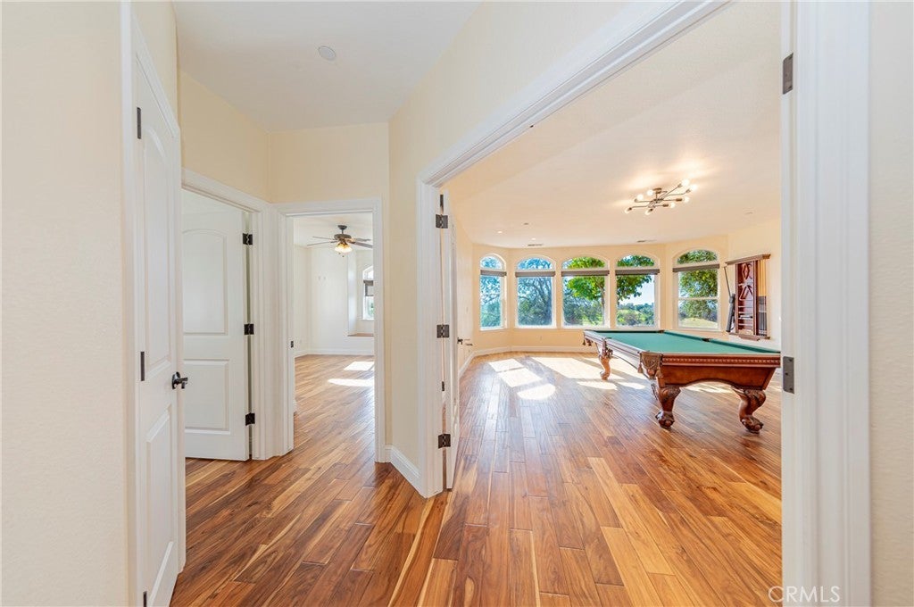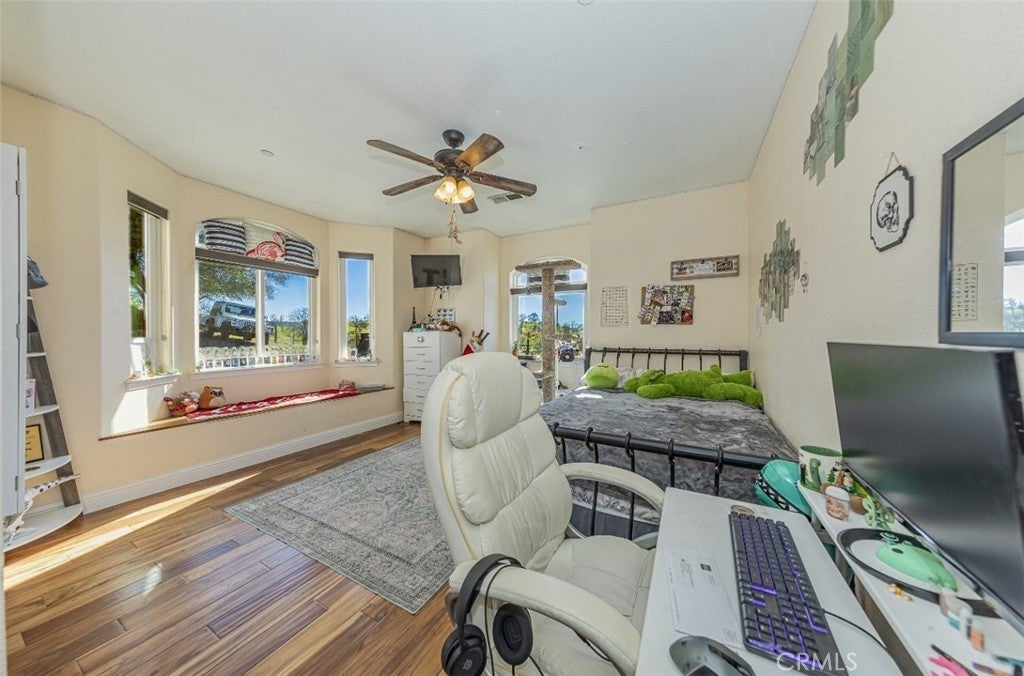 Exquisite Custom Home! A "one of a kind" from top to bottom that is a real showpiece with great thought and care in the design and use of materials throughout. From the gated entry to the grand entry with a circular staircase leading to the primary suite, there is so much to see in this home. Acacia floors throughout with sealed aggregate flooring in the kitchen and baths for easy clean up. A very large gorgeous kitchen with an island for eating or just chatting with friends while you cook those scrumptious meals, makes for a fun time entertaining friends or family. A step-down living room and propane fireplace add an air of comfort with the design, all while having easy access to the formal dining room and kitchen. As you stroll down the hall you will come to the other bedrooms, bathrooms, and the oversized game/family room with plenty of room for a pool table, bar, or dance studio space. Just let your imagination run wild. Be sure to go up to the primary suite and stroll out to the oversized partially covered patio to sit and relax or add a private spa there. The primary bathroom is very spacious and the huge walk-in closet that feels like it just keeps going, will easily accommodate your wardrobe. As you look over this 2.51+/- acre property, you will see the land is all usable, fenced, cross-fenced with chicken coops, storage building, large gazebo on the back side of the home with built-in barbecue and so much more. Tankless water system, built-in wall safe and cameras, not to mention the oversized garage with additional 10x13 workspace that you can set up for hobbies or crafts (three sheds in total).