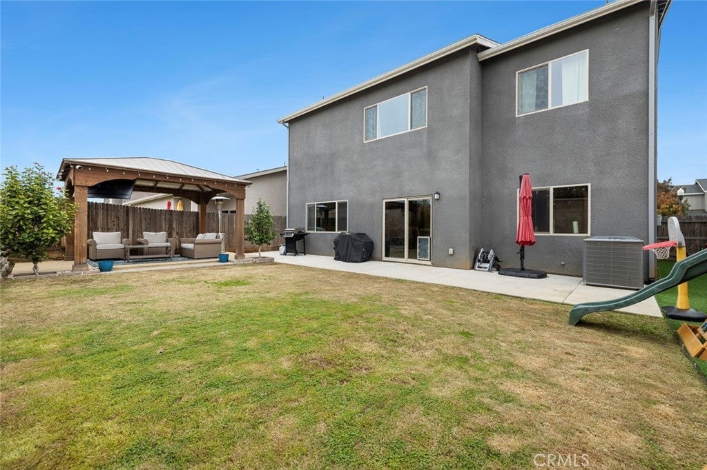 Discover this remarkable 4-bedroom residence plus a versatile flex room that combines modern & stylish comfort with thoughtful design. This spacious home features an additional bonus room downstairs, ideal for a playroom, home office, media retreat, or gaming space offering functionality to meet a variety of needs. The open-concept living area feels bright & welcoming and features a gorgeous custom fireplace and surround, modern shelving, and tons of natural light! A spacious kitchen with pantry storage and newer interior paint throughout enhances the home's fresh, contemporary feel. The convenience of a dedicated powder room on the main level adds to the home's well-planned layout. Enjoy the benefits of owned solar and a tankless water heater, ensuring efficiency and long-term savings. The backyard is a standout, complete with a deck and pergola for relaxing, a large grass area, and a dedicated play zone! The garage offers even more versatility with an extra bonus space that's great for a small home gym, workshop, or additional storage. Situated less than a mile from Reyburn Intermediate and Clovis East High School, and just moments from an all new shopping center offering many dining, shopping, coffee, and self-care options, this home delivers it ALL in one great package! Come experience this extraordinary property- Book your showing today!