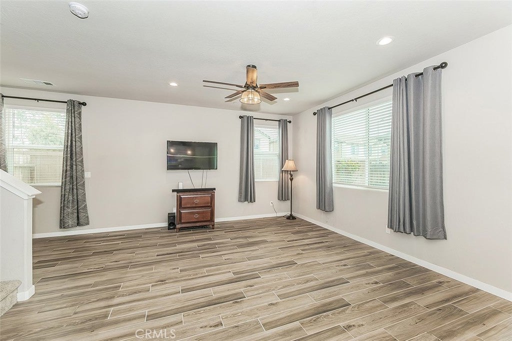 This very desirable Wathen Castano home with 3 bedrooms and 2.5 bathrooms and Owned Solar (12 panels and no TrueUp) is in move-in ready condition. This outstanding, very functional floor plan has an open feeling with lovely decorative touches throughout starting with the tiled woodlike flooring. The great room with high ceilings is adjacent to the spacious kitchen with an oversize center island for loads of seating and entertaining. A designer package was chosen for the well coordinated color choices including decorative backsplash, stainless steel appliances, pantry, can lighting and easy access to the rear yard and garage. There is a convenient half bath downstairs and carpeted stairs to the upstairs with a very spacious primary bedroom and bathroom. In addition there are two bedrooms with another hall bathroom for everyone's comfort and relaxation. The laundry room is also nearby. This home has lots of storage, and all the space is used very well. The easy care rear landscaping has been tastefully completed and ready for you to enjoy with the extra concrete and its own firepit. This quiet neighborhood is within walking distance to a community park and walking paths nearby to explore. Being 2 miles west of 99 gives you easy freeway access and conveniently located to the Water Park and shopping.