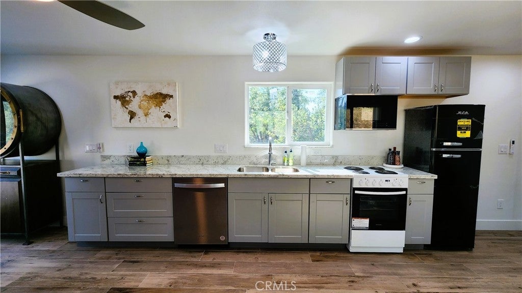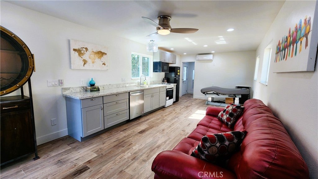 2 homes and a detached suite. This quiet 2.08+/- acre multi family property has 2 manufactured homes, both on permanent foundations and each with their own address, entrance, septic systems and power. Both homes were built in 2017 and have 2 x 6 walls, 40 pound snow load, fire sprinklers, and central air and heat. The main house is 840 ft, 3 bedrooms, 2 baths with granite counters in the kitchen, new stainless dishwasher, range, and over the range microwave. The interior has recently been painted and both bathrooms have been renovated. 10 feet away is a bonus 400+ ft remodeled suite with a full bathroom and kitchen. Wood Plank tiles throughout, granite/marble in the kitchen and bathroom, mini split, W/D hook ups and a Rinnai tankless water heater. The ADU is a 742 ft 2 bedroom, 1 bathroom. The interior has been freshly painted and the bathroom has been renovated. There is a 5,000 gallon water tank and RV parking and hook ups. The 2 houses are close enough to walk to, but separate enough to not feel intrusive. This property is 4 miles to Bass Lake and is perfect for generational living or for someone looking to live in one house and rent out the 2nd home.