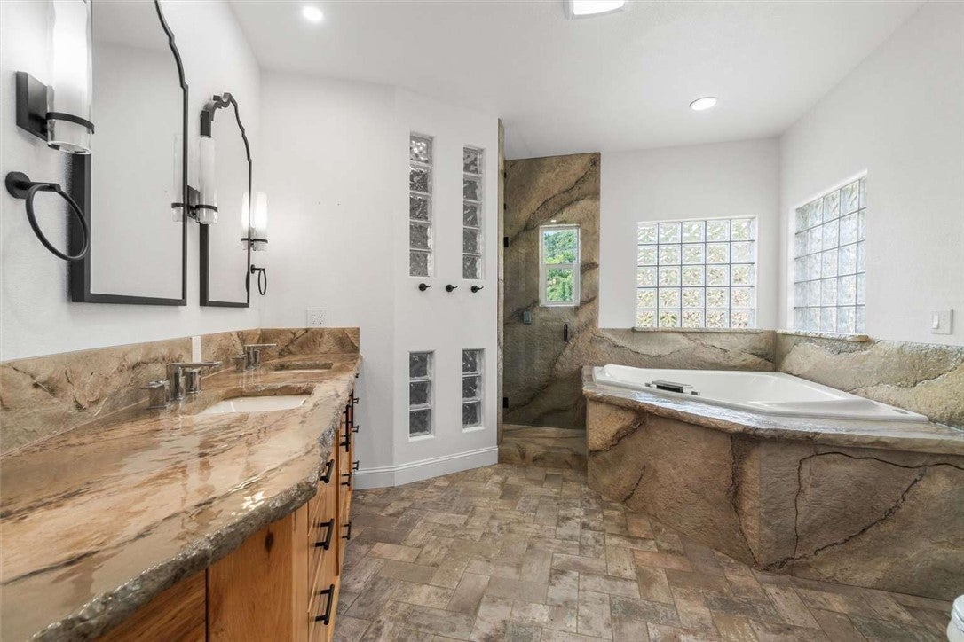 Spectacular, panoramic views of Mt. Lassen await, from the 1036 sq. ft. wrap around deck, walls of windows, and room-length sliding doors. The inground PebbleTec pool features a waterfall amid parklike landscaping. Kitchen includes walk-in pantry, double built-in ovens, and prep sink. Private master floor its own covered deck, dual walk-in closets, steam shower, and jacuzzi tub. Includes a detached workshop with EV charging station and owned 25,500 kwh solar array.