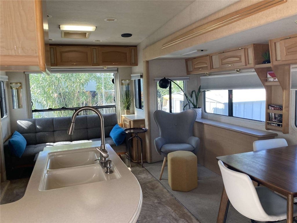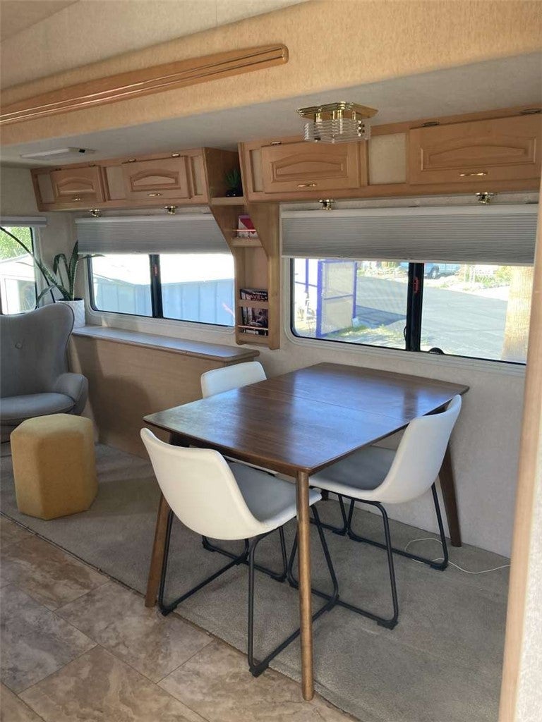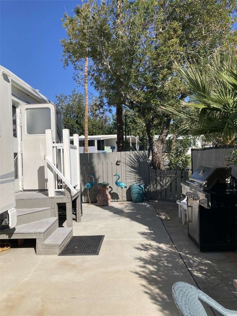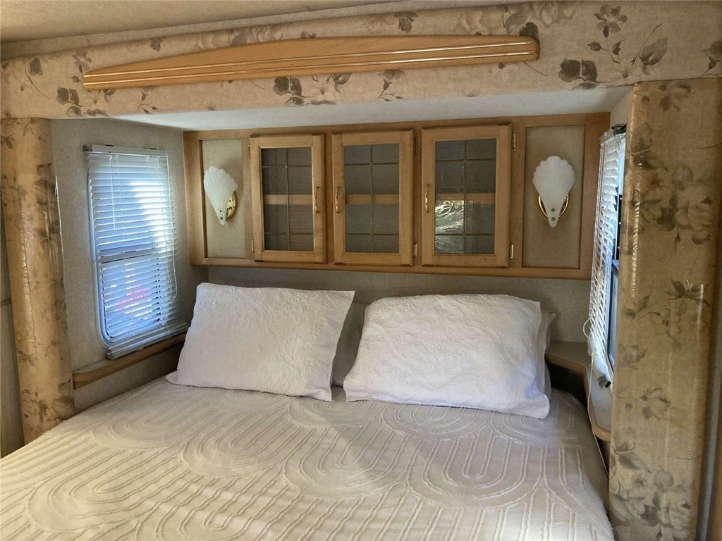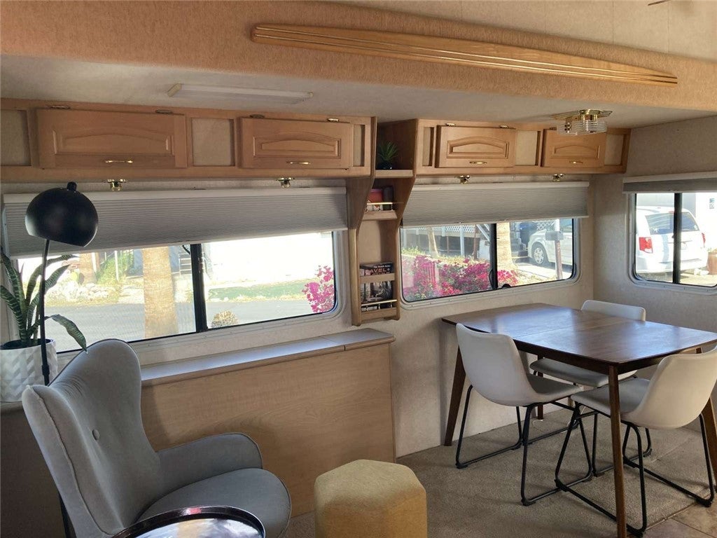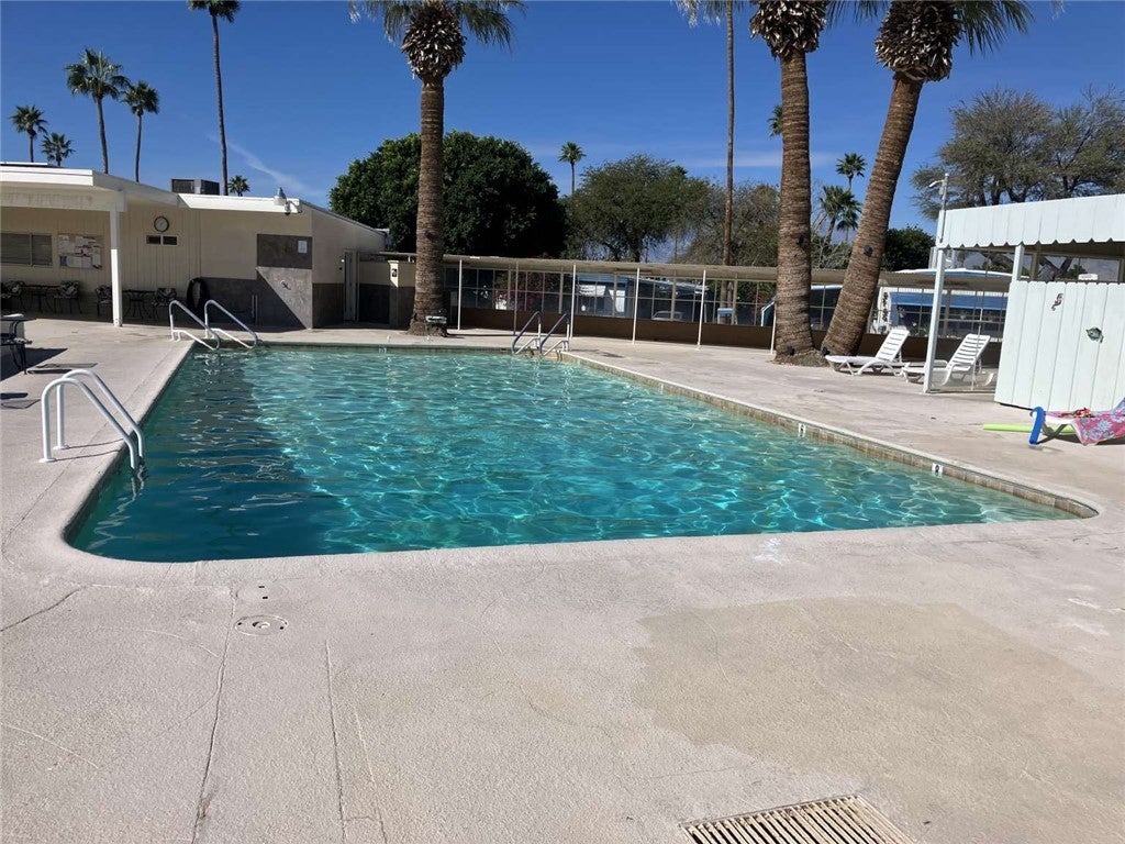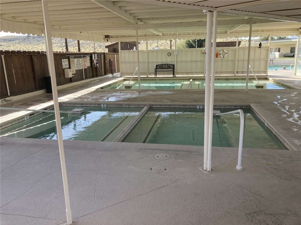 Lovely vacation home opportunity in a 55+ Desert Hot Springs park. Turnkey property includes furniture, kitchen supplies, and linens. Enjoy the beautiful year round weather from the private patio area surrounded by mature desert landscaping which includes drip irrigation. Your desert retreat is a 2003 thirty-three foot 5th wheel in good condition. The roof has recently been snow coated. An 8x10 metal storage shed is included in the space. The property is leased for $541 a month (one of the lowest lease amounts in the area). Water, garbage, and yard waste removal is included. Park is gated, in a very quiet area with places to walk and bike just outside the gate. Park amenities include a heated mineral swimming pool and spas, clubhouse, and dog park. Potential owners must be approved by park management.