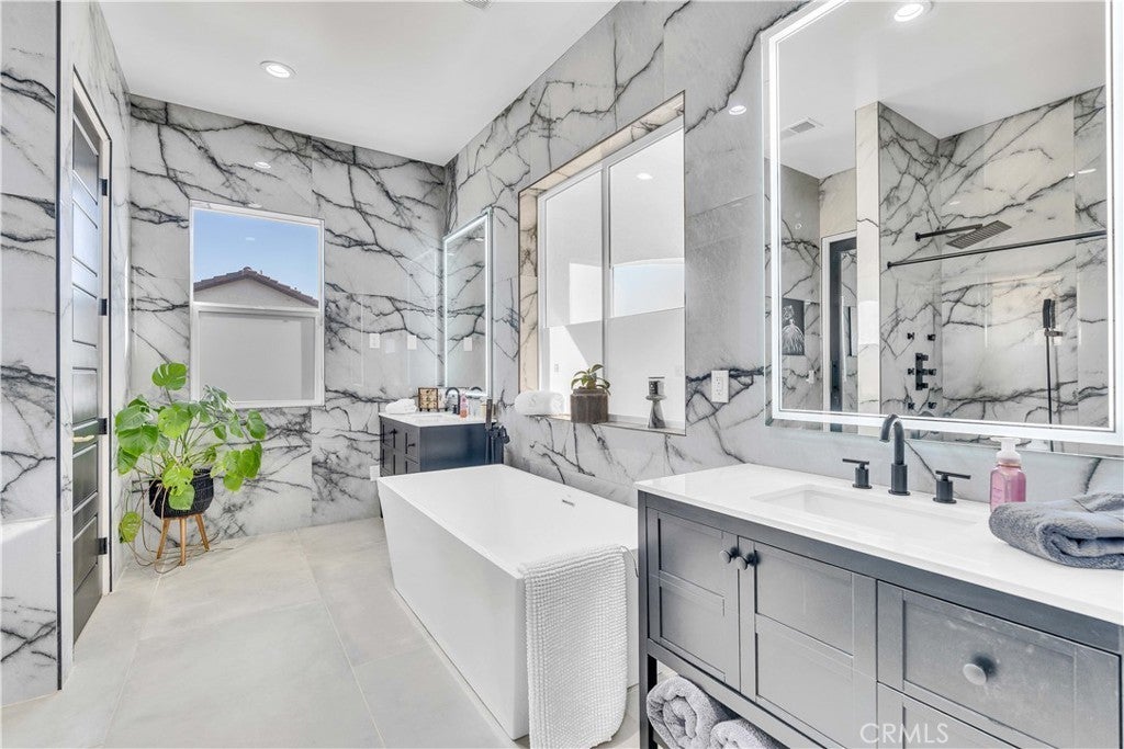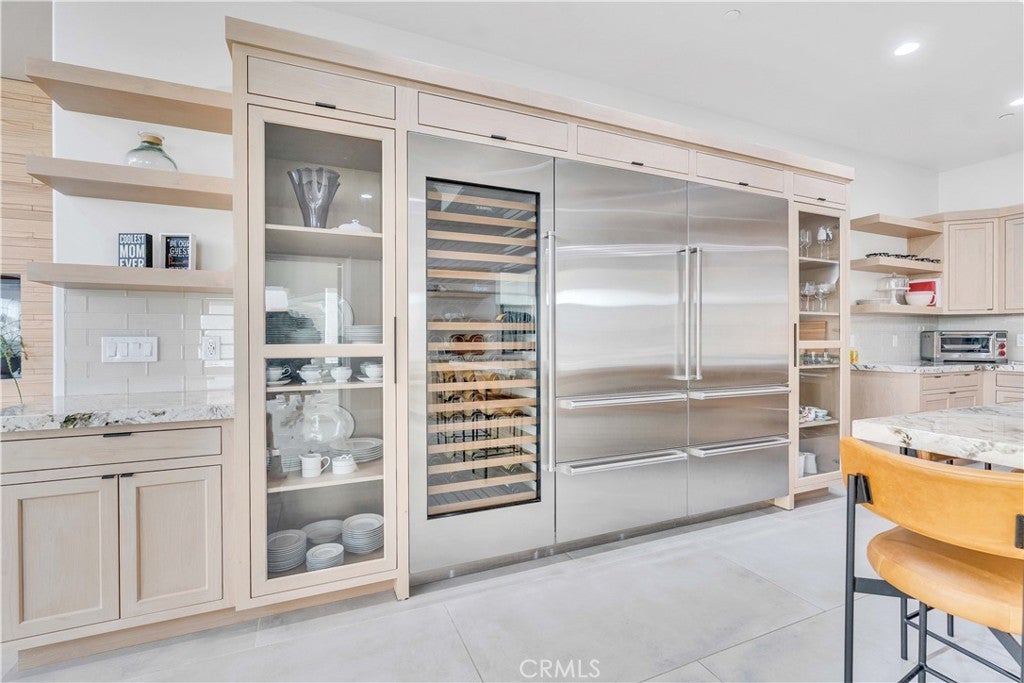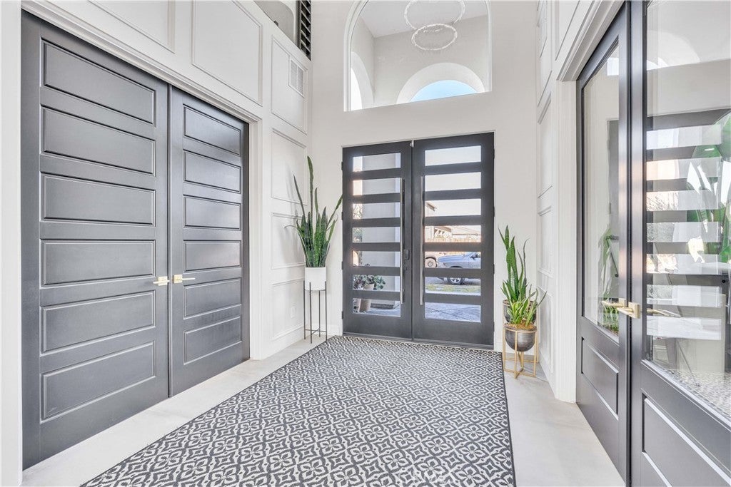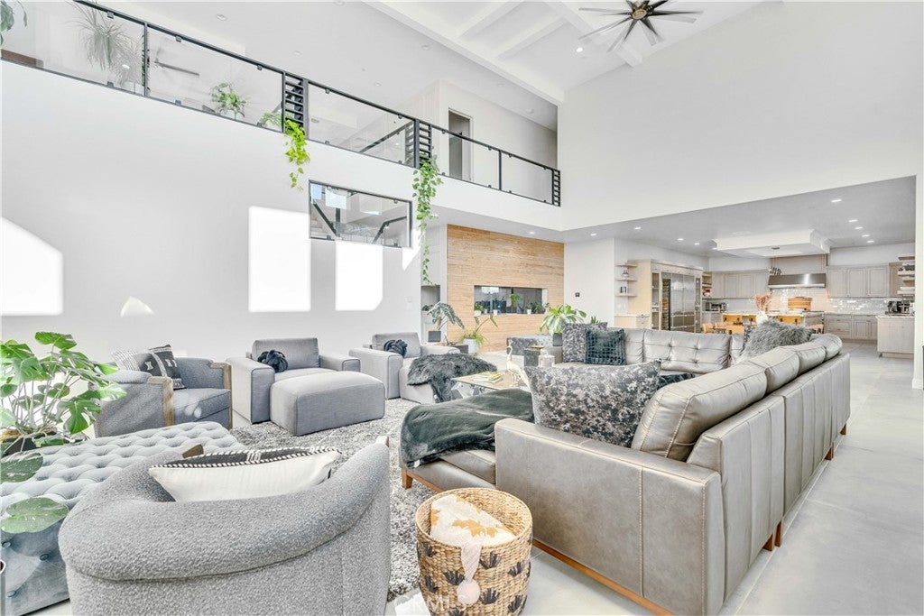 A truly one-of-a-kind turnkey home, fully custom estate in a prestigious gated community. This 4,600 sq ft modern residence blends architectural sophistication with intentional design, featuring soaring vaulted ceilings and natural quartzite finishes throughout. The home offers 4 bedrooms, 4.5 baths, and a dedicated office, crafted with precision for elevated living. The chef's kitchen is outfitted with brand-new Wolf and Sub-Zero appliances, including a wine refrigerator, ideal for entertaining. Multi-zoned HVAC ensures year-round comfort, while a full exterior monitoring system with 22 cameras, dedicated routers, and a private server provides exceptional security. Designed for both relaxation and statement, the home includes a sunroom, a covered balcony off the primary suite, and two Romeo & Juliet balconies. Outdoors, mature imported olive treesover 80 years oldcreate a timeless setting. Additional highlights include a striking 1,000-gallon aquarium feature and a 1,200 sq ft garage with generous storage.