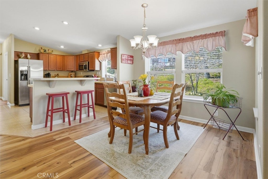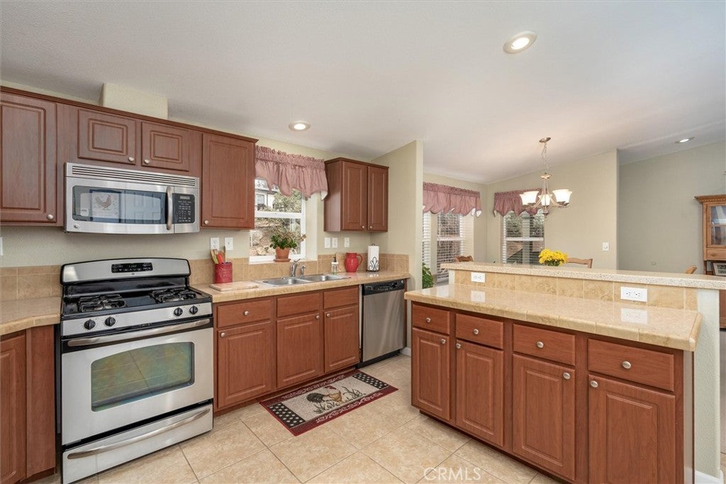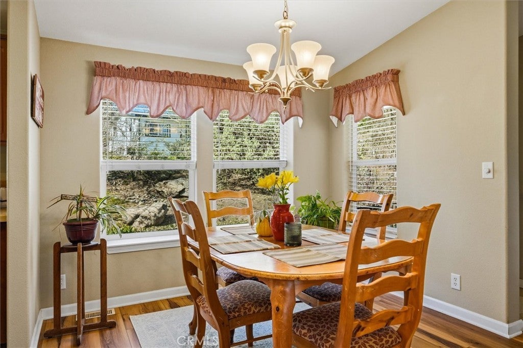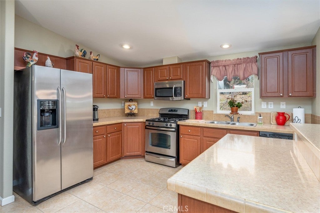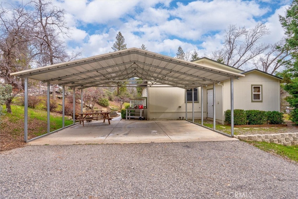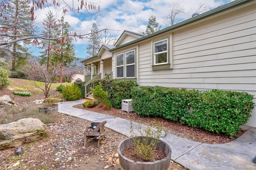 Welcome to the lifestyle you've been waiting for! Situated on a premium corner lot inside the highly desirable GROVE's 55+ Manufactured Home Community, this beautifully maintained 3-bedroom, 2-bath home delivers the perfect blend of comfort, functionality, and serene mountain living. From the moment you step inside, you're greeted with an abundance of natural light pouring through picturesque windows, showcasing peaceful views and creating a warm, inviting atmosphere. The spacious living room features custom built-ins and a cozy fireplaceperfect for relaxing or entertaining. The open-concept kitchen is designed to impress, offering stainless steel appliances, quality cabinetry, ample counter space, and a convenient breakfast bar that seamlessly connects to the main living areasideal for hosting family and friends. Your private primary suite is thoughtfully positioned on the opposite side of the home for added privacy and features stunning views, a large ensuite with an oversized tiled shower, dual vanities, generous storage, and a walk-in closet. Throughout the home, you'll find vaulted ceilings, durable laminate and tile flooring in the main living spaces, and comfortable carpeting in the bedrooms. The laundry room is fully equipped with a washer, gas dryer, built-in sink, and extra storage space. Step outside and experience true tranquility. Enjoy your morning coffee or evening unwind on the covered porch and patio, surrounded by mature landscaping and beautiful mountain views. Sitting just above the 3,000-foot elevation mark, you'll appreciate those cooler summer evenings that make this location so special. Additional highlights include an oversized carport with room for two vehicles plus extra parking, a storage shed, and screen-covered rain gutters. The washer, dryer, and refrigerator are included, and select furnishings may be available outside of escrow. Conveniently located just minutes from shopping and dining in Oakhurst, and a short drive to Bass Lake and Yosemite National Park, this home offers not just a place to livebut a lifestyle to love. Opportunities like this don't come around often. Schedule your private showing today and experience it for yourself.