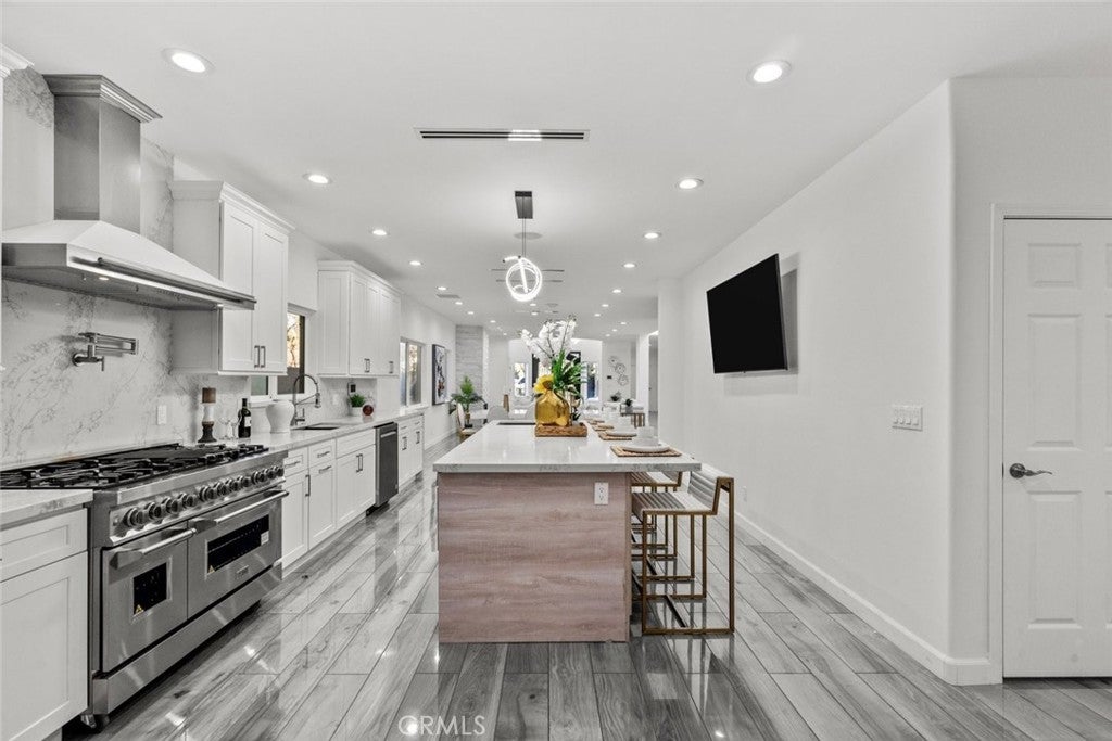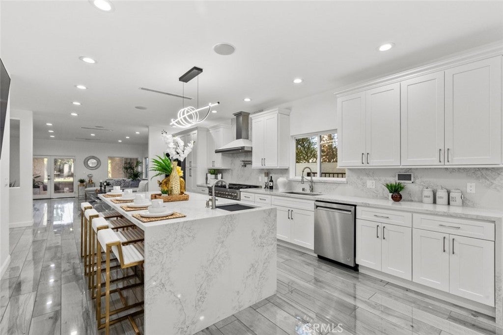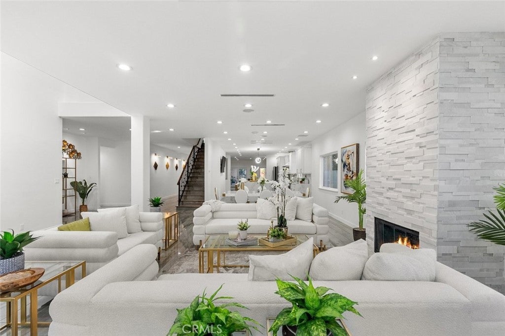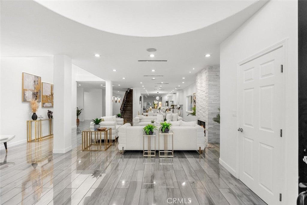 Experience modern luxury in this newly remodeled and absolutely stunning home in the heart of South Tarzana. This property redefines elegance with its thoughtful design, high-end finishes, and exceptional attention to detail, making it an extraordinary residence for anyone seeking both style and comfort. As you enter through the grand double doors, you’re greeted by a bright and inviting ambiance with abundant recessed and natural lighting illuminating every corner. The spacious layout boasts six beautifully designed bedrooms, including two primary bedrooms—one located upstairs and the other conveniently situated on the main level. Each bedroom is complemented by its own bathroom, offering ultimate convenience and privacy, with a total of seven luxurious bathrooms throughout the home. The home features brand-new laminate flooring and state-of-the-art appliances, perfectly complementing the modern aesthetic. The living spaces are designed to impress, with a cozy fireplace in the living room and another in one of the bedrooms, adding warmth and charm. The open-concept design flows seamlessly, offering a versatile bonus room that can be transformed into an office, gym, or additional living area to suit your needs. A dedicated laundry room adds convenience, making daily tasks effortless. The outdoor space is nothing short of breathtaking. The expansive backyard is your personal oasis, featuring a sparkling pool, a built-in BBQ area, and a spacious patio perfect for entertaining or simply enjoying the serene environment. The lush landscaping and gated surroundings provide privacy and a sense of tranquility, while the layout is ideal for gatherings of any size. This home’s prime Tarzana location offers a unique blend of urban convenience and suburban charm, nestled in a peaceful, upscale neighborhood yet close to shopping, dining, and entertainment. Every detail of this home has been thoughtfully curated to create a harmonious balance of beauty and practicality. If you’re searching for a newly remodeled masterpiece that radiates luxury and comfort, this gorgeous home is ready to welcome you.