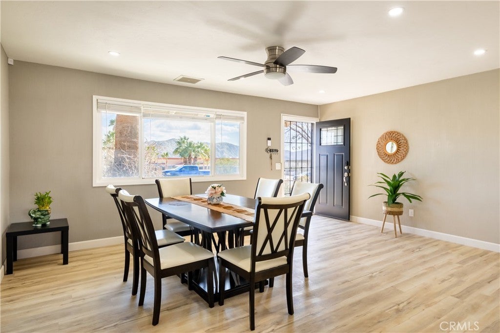 Property is back on the market after prior buyer failed to perform. Seller is motivated and ready to proceed with a qualified buyer. Welcome to your dream oasis in the desert! This stunning, fully furnished desert pool house, updated in 2022, offers the perfect blend of modern luxury and serene tranquility. Featuring 3 bedrooms and 2 bathrooms, this home is ideal for those seeking comfort and style. Step inside to discover an open floor plan with contemporary finishes, sleek furniture, and high-end appliances. The living area flows seamlessly into the gourmet kitchen, complete with granite countertops and modern appliances. Each bedroom is a sanctuary of relaxation, boasting plush bedding and ample storage. Outside, the private pool area beckons with its sparkling water, perfect for cooling off on hot desert days. The beautifully landscaped backyard is an entertainer's paradise, featuring a spacious patio, BBQ area, and cozy fire pit for evening gatherings under the stars. This property features a leased solar system with a monthly payment of $176, which the buyer must assume. Please note that the hot tub in the backyard is excluded from the sale. With its prime location and modern amenities, this property also holds excellent potential as an Airbnb rental, providing a lucrative opportunity for savvy investors. Don't miss the chance to own this modern desert retreat. Schedule your viewing today and make this exquisite pool house your new home!