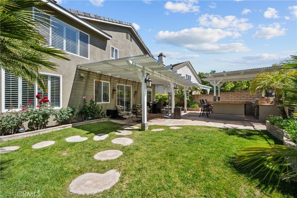 Why buy a house that needs a toolbox, a hardhat, and a prayer when you can move right into this turnkey beauty? While other listings on the street may tempt you with “potential,” this one tempts you with reality — upgraded, comfortable, and ready today. This spacious two-story home offers 4 bedrooms, 2.5 bathrooms, and 2,350 square feet of thoughtfully designed living space. Step inside and you’re greeted by soaring vaulted ceilings, plenty of natural light, and a cozy fireplace. The open floor plan flows easily into the family room and a modern kitchen with granite countertops, quality appliances, and a stylish island that makes both meal prep and midnight snacks effortless. Upgrades include travertine flooring downstairs, engineered wood upstairs, and updated bathrooms with modern tile finishes. Out back, you’ll find a private yard designed for fun, complete with a built-in BBQ and space to relax or entertain without peeking into the neighbor’s kitchen window. The leased solar system, just $159 per month, powers the home and can even support up to two EVs. Bonus perks include a full-size laundry room, a three-car garage, and driveway parking for three more vehicles. Residents enjoy resort-style pools, parks, and tennis courts, all with a low HOA and no Mello Roos. Plus, you’re close to top-rated schools, shopping, and dining. This isn’t a “project” or a “diamond in the rough.” This is the house where you unpack, plug in your EV, fire up the BBQ, and laugh knowing you skipped the fixer-upper drama.