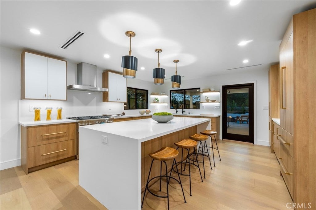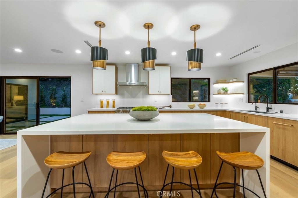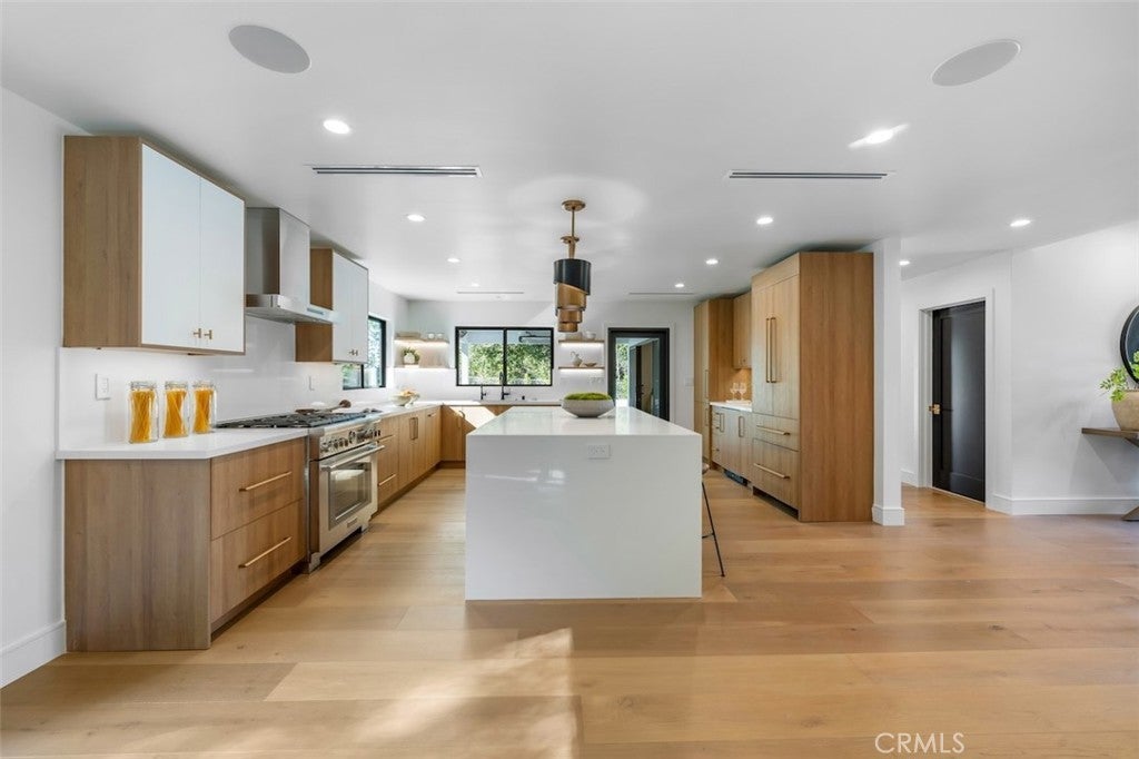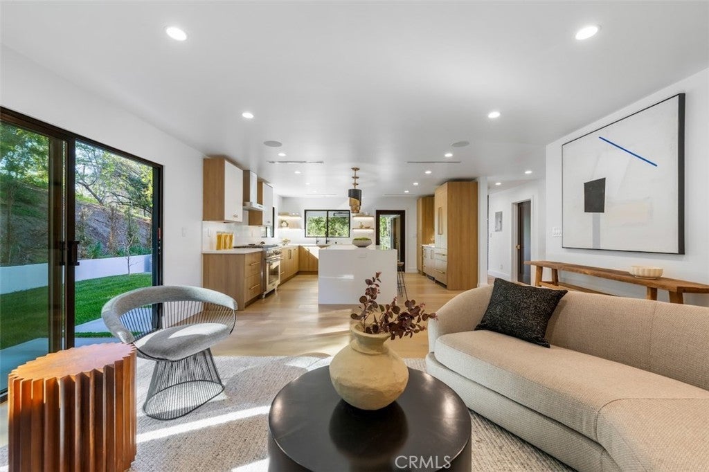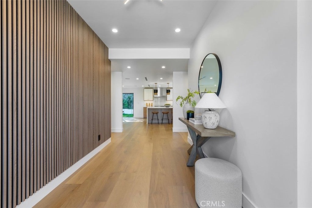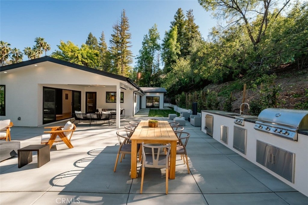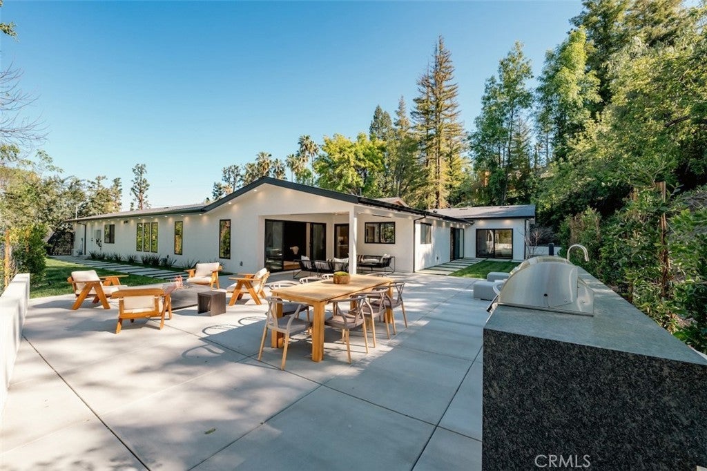 Welcome to Donna. A Thoughtfully Reimagined Hillside Retreat. Perched at the end of a peaceful cul-de-sac just one mile south of Ventura Boulevard, this stunning single-story home sits on an expansive 15,888 SqFt lot in one of Tarzana’s most sought-after hillside pockets. Zoned RA-1 and originally built in 1956, the residence has been completely rebuilt and reimagined with over $1M in custom renovations- offering the perfect blend of timeless character and modern luxury. With undeniable curb appeal and elegant design, the home welcomes you through a bold custom steel entry door into a dramatic foyer with soaring ceilings and rich hardwood floors. The gourmet kitchen is the heart of the home, featuring Thermador appliances, custom cabinetry, and an oversized waterfall island- designed to balance style and function seamlessly. Ideal for both entertaining and everyday living, the open-concept layout flows effortlessly from the formal dining area to the spacious living and family rooms, all flooded with natural light and designed for connection and comfort. The primary suite is a true sanctuary, with vaulted ceilings, calming tones, a spa-inspired bath with a freestanding tub, and a generous walk-in closet. Additional bedrooms offer comfort and flexibility for families, while a private ensuite on the opposite end of the home is perfect for guests, a home office, or multi-generational living. Step outside to your private backyard oasis- complete with a heated covered patio, cozy fire pit, and plenty of space for both quiet mornings and vibrant gatherings under the stars. Located within the highly rated Wilbur Charter for Enriched Academics and just minutes from the shops and dining of Ventura Blvd, this home offers the best of both worlds: peaceful hillside living with easy access to city life. A rare, move-in ready opportunity for those who value craftsmanship, comfort, and timeless design. Come experience the magic of Donna!