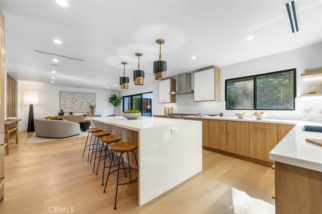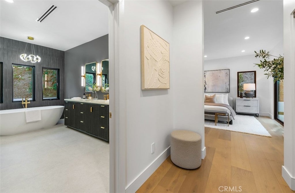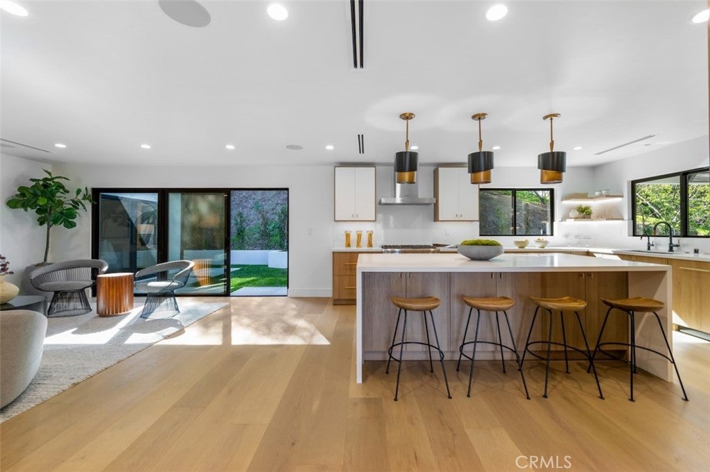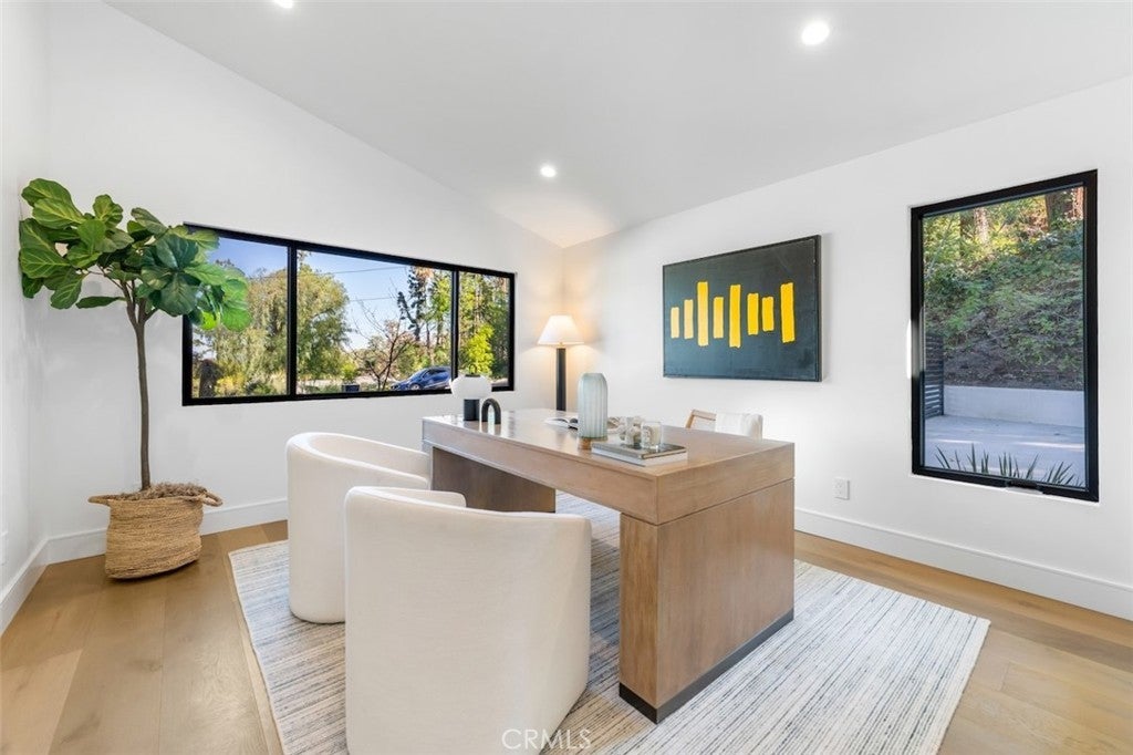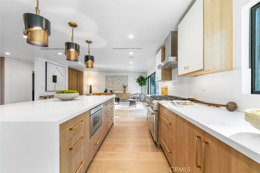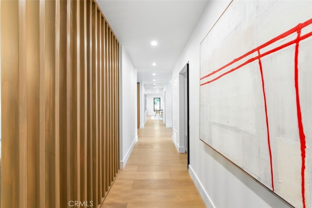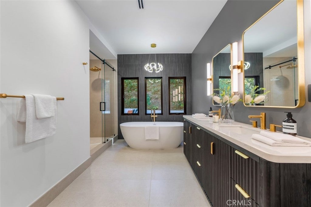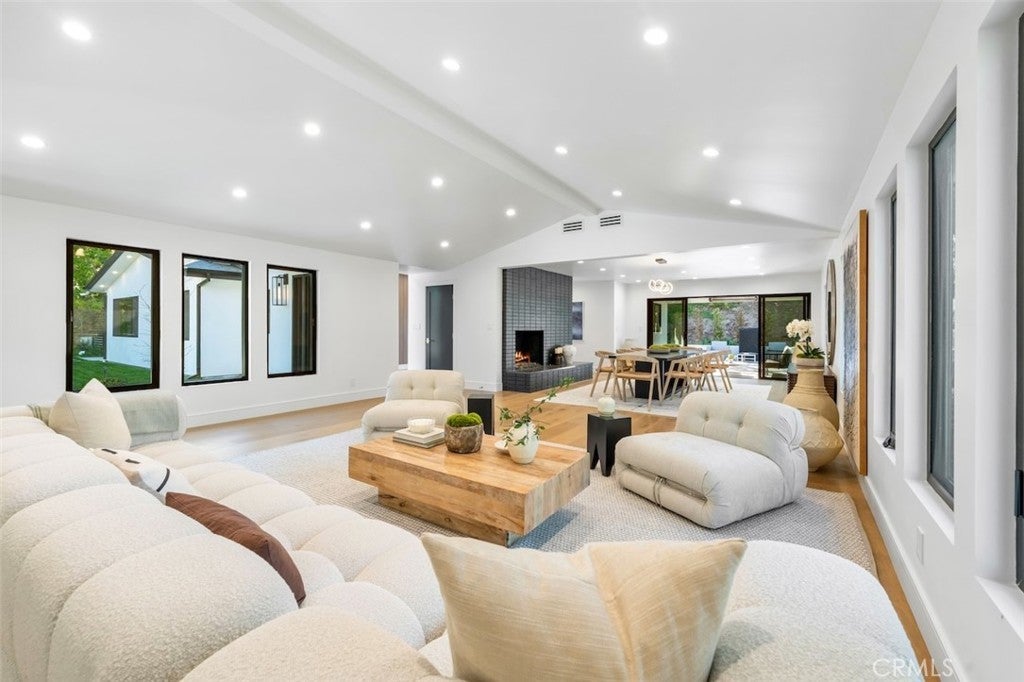 Welcome to Donna. A Thoughtfully Reimagined Hillside Retreat. Perched at the end of a peaceful cul-de-sac just one mile south of Ventura Boulevard, this stunning single-story home sits on an expansive 15,888 SqFt lot in one of Tarzana’s most sought-after hillside pockets. Zoned RA-1 and originally built in 1956, the residence has been completely rebuilt and reimagined with over $1M in custom renovations- offering the perfect blend of timeless character and modern luxury. With undeniable curb appeal and elegant design, the home welcomes you through a bold custom steel entry door into a dramatic foyer with soaring ceilings and rich hardwood floors. The gourmet kitchen is the heart of the home, featuring Thermador appliances, custom cabinetry, and an oversized waterfall island- designed to balance style and function seamlessly. Ideal for both entertaining and everyday living, the open-concept layout flows effortlessly from the formal dining area to the spacious living and family rooms, all flooded with natural light and designed for connection and comfort. The primary suite is a true sanctuary, with vaulted ceilings, calming tones, a spa-inspired bath with a freestanding tub, and a generous walk-in closet. Additional bedrooms offer comfort and flexibility for families, while a private ensuite on the opposite end of the home is perfect for guests, a home office, or multi-generational living. Step outside to your private backyard oasis- complete with a heated covered patio, cozy fire pit, and plenty of space for both quiet mornings and vibrant gatherings under the stars. Located within the highly rated Wilbur Charter for Enriched Academics and just minutes from the shops and dining of Ventura Blvd, this home offers the best of both worlds: peaceful hillside living with easy access to city life. A rare, move-in ready opportunity for those who value craftsmanship, comfort, and timeless design. Come experience the magic of Donna!